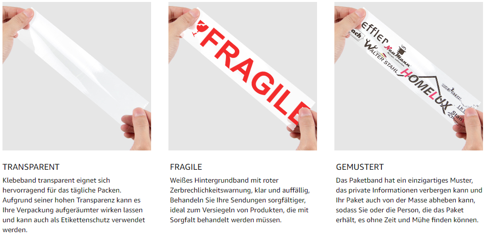 Fragile parcel tape has a high adhesive strength and a high tear resistance, even with heavier objects, this packing tape roll has proven its superior stability and helps to keep valuables safe.