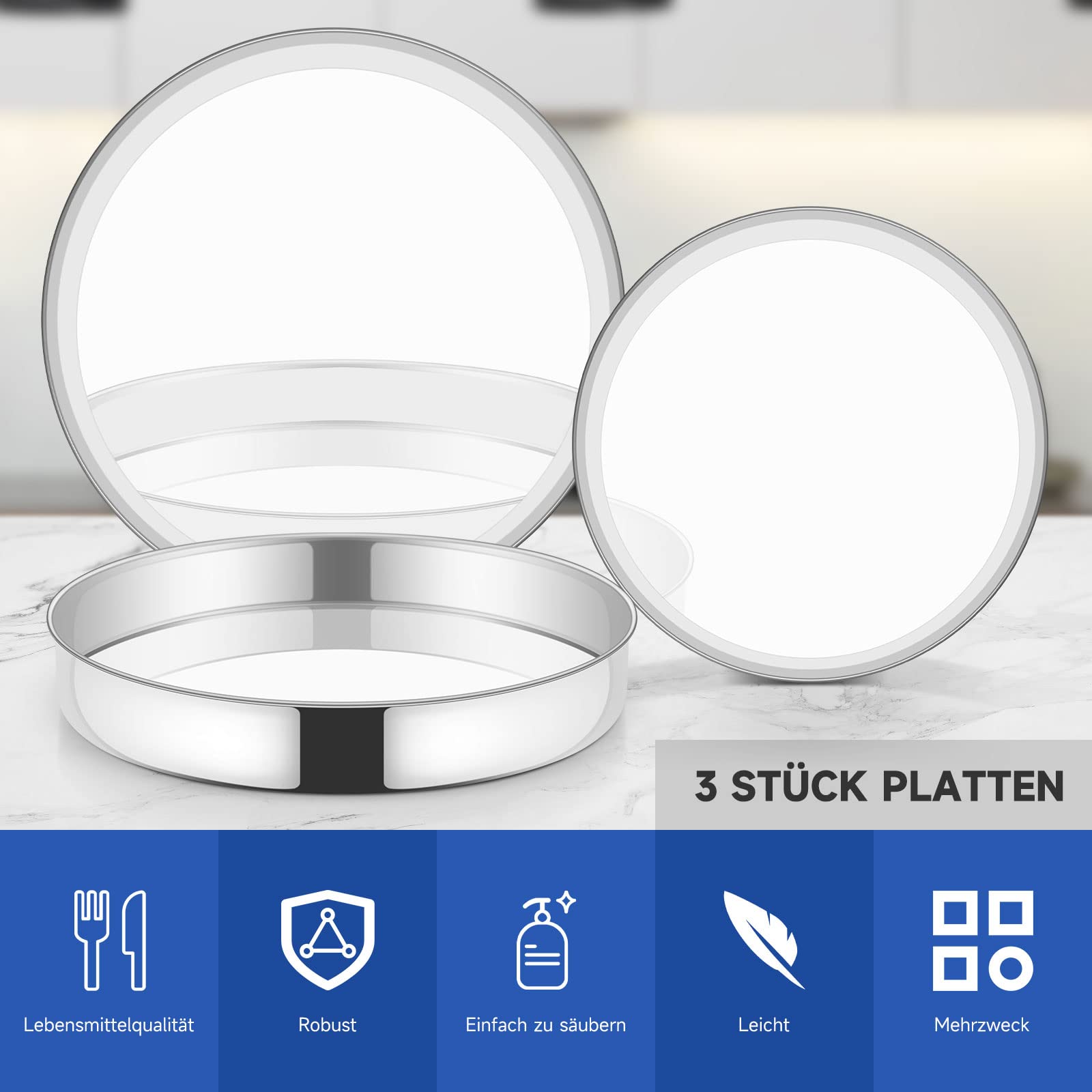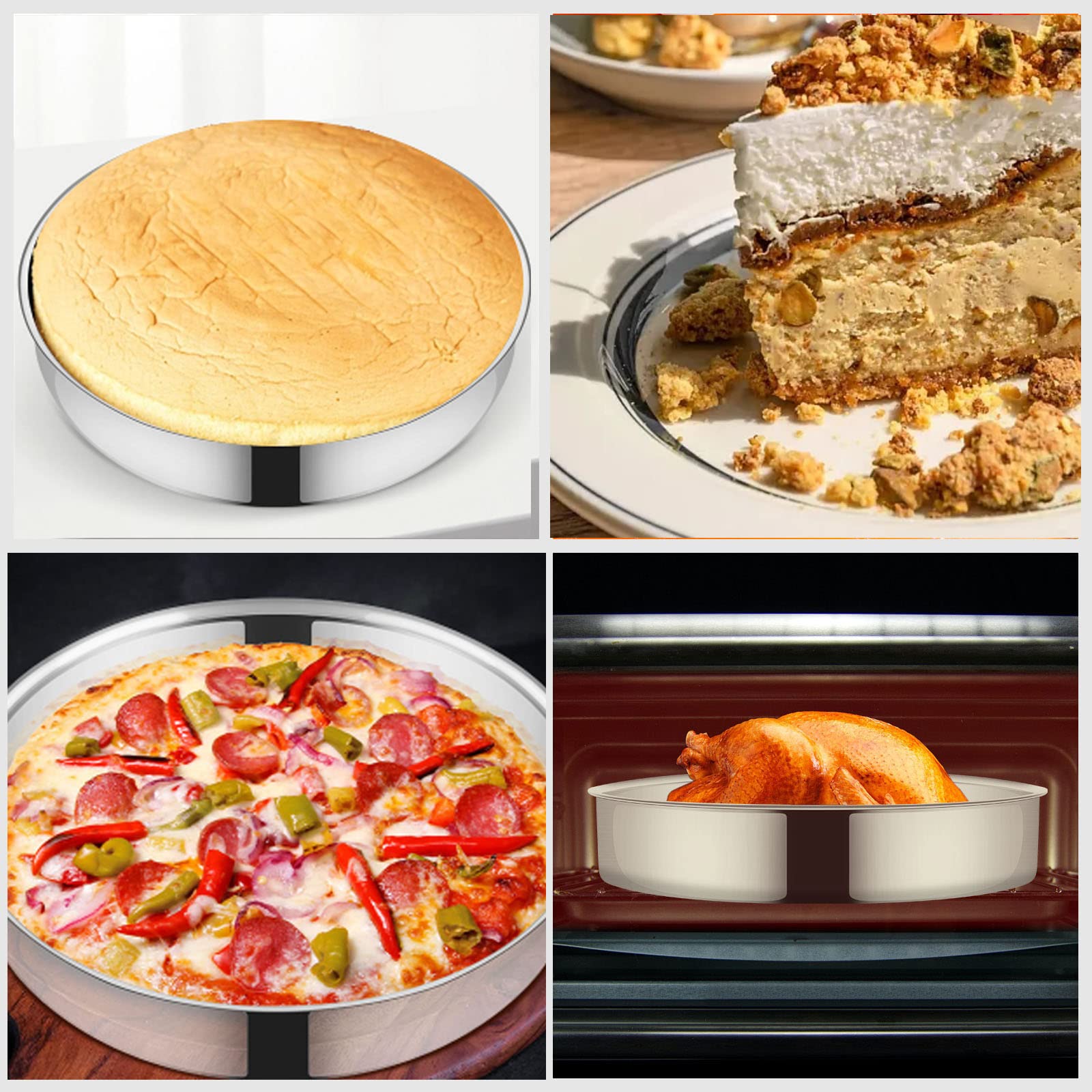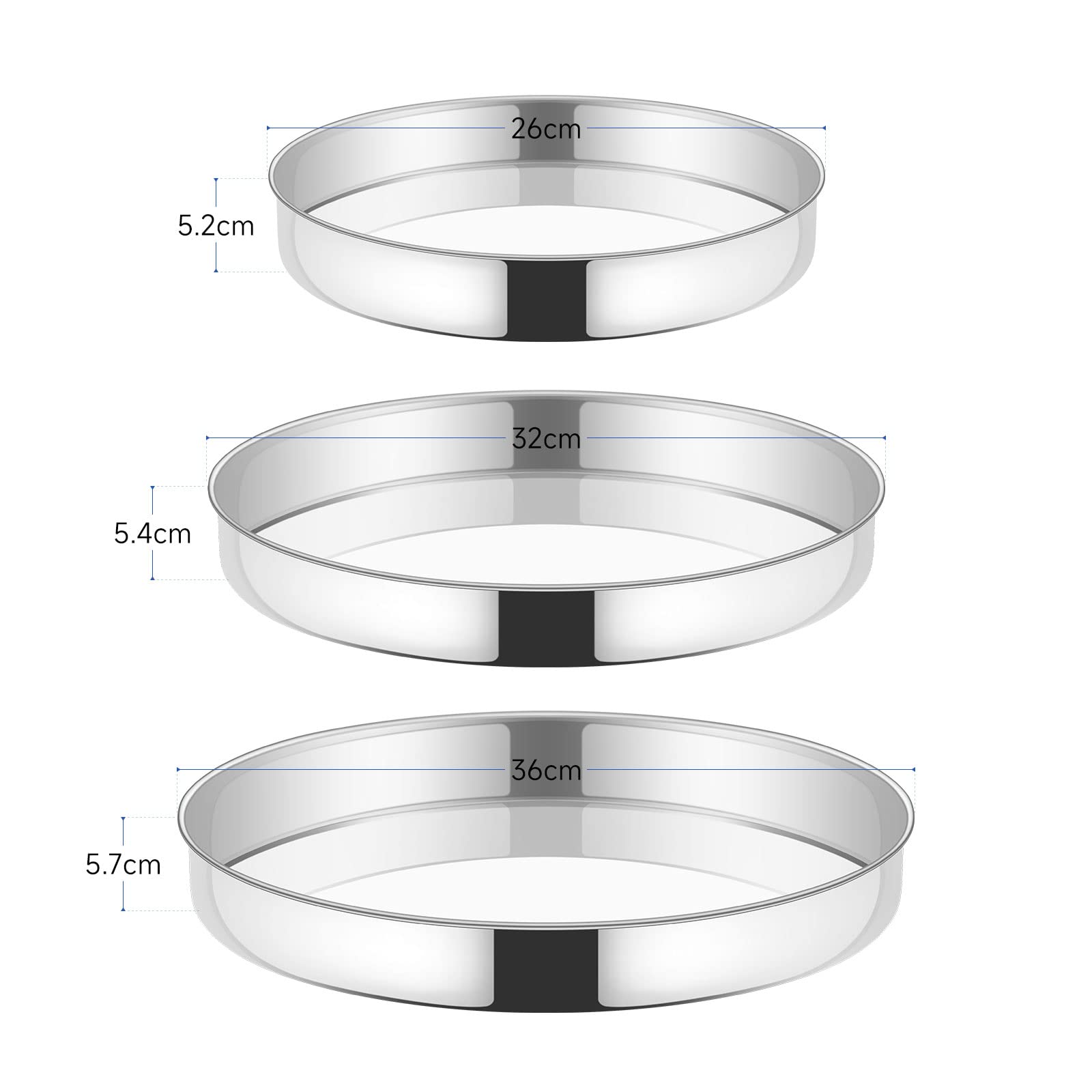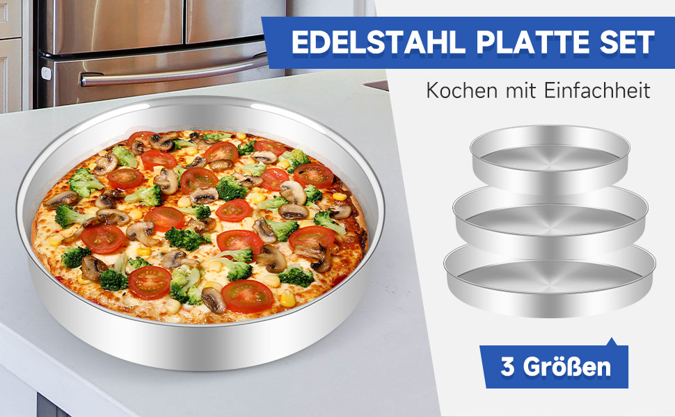 Φ26 cm/Φ32 cm/Φ36 cm; the 3-piece set in different sizes is perfect for preparing different types of cakes, pizza, grill, corn bread etc. for baking/roasting/serving; get baking moulds in 3 sizes at once to meet your daily cooking needs.