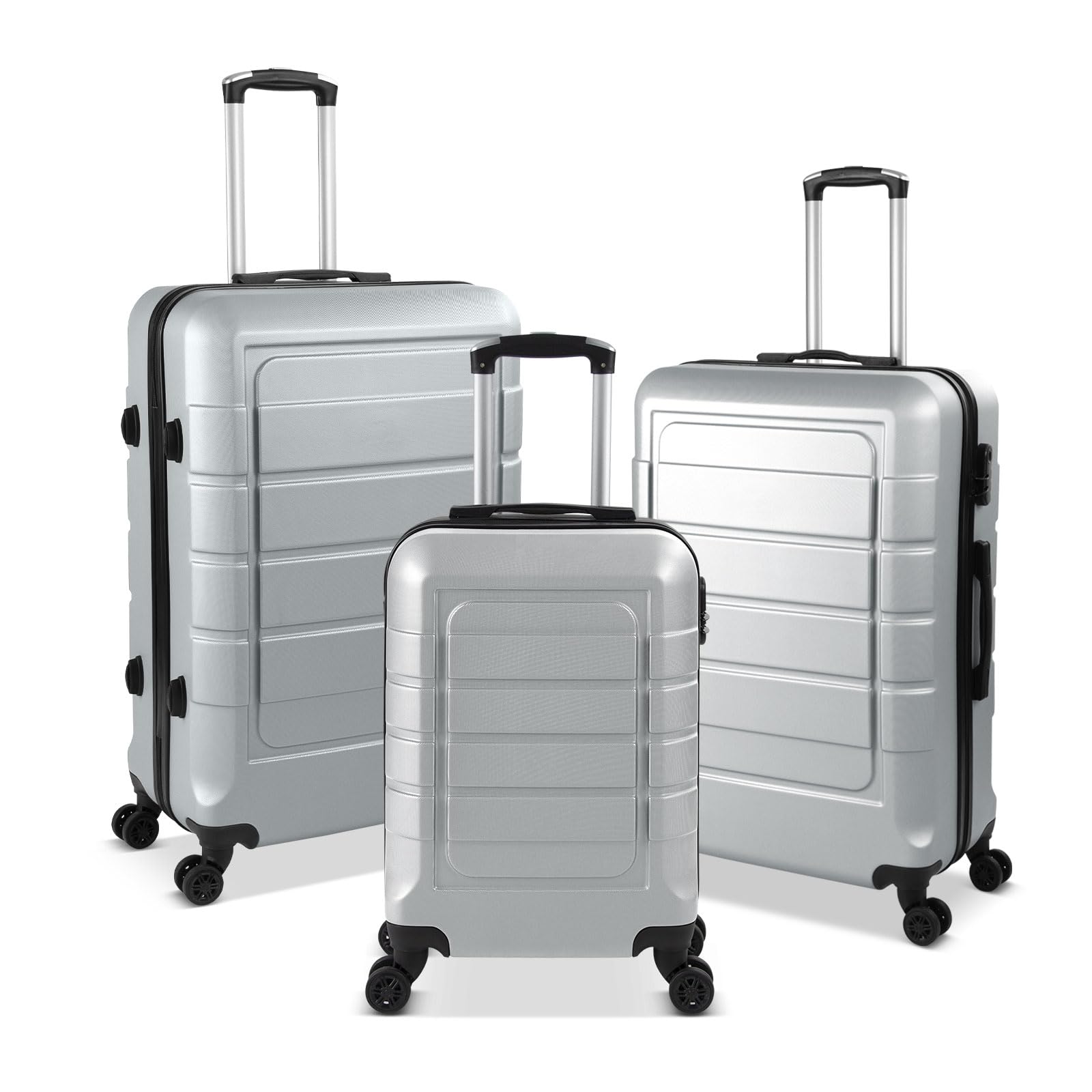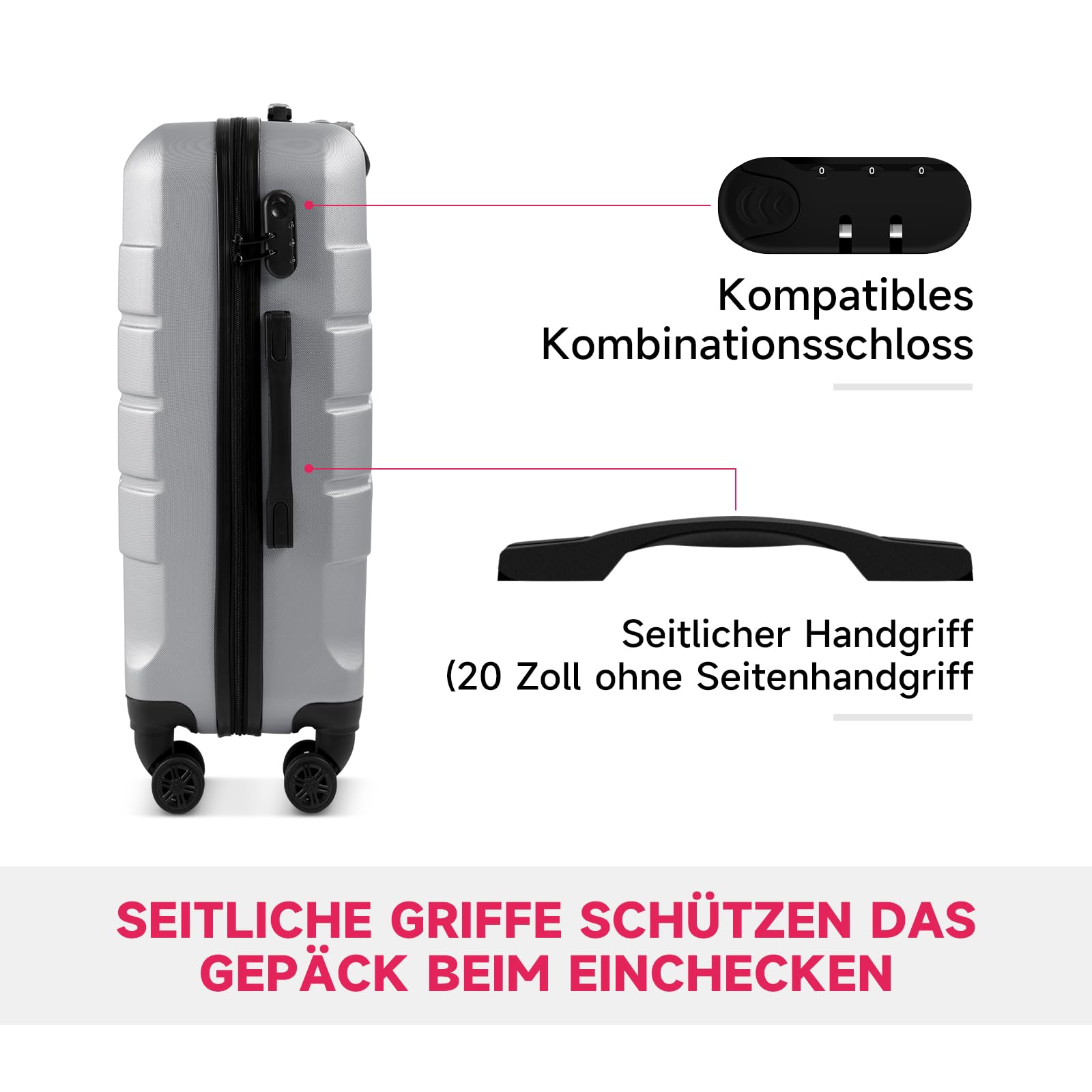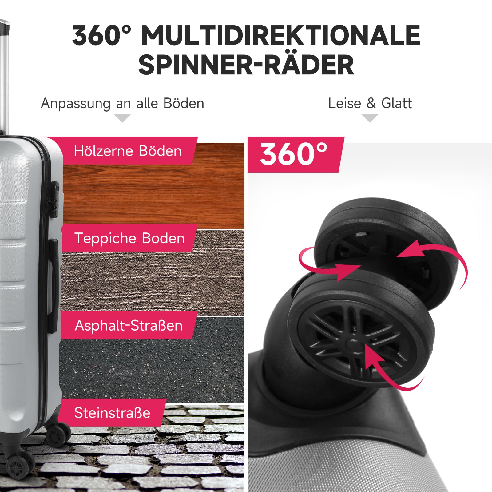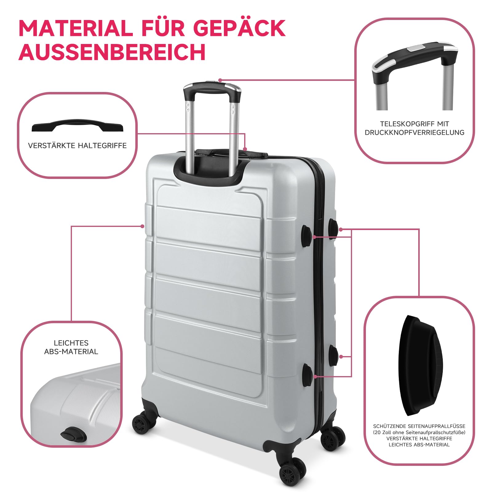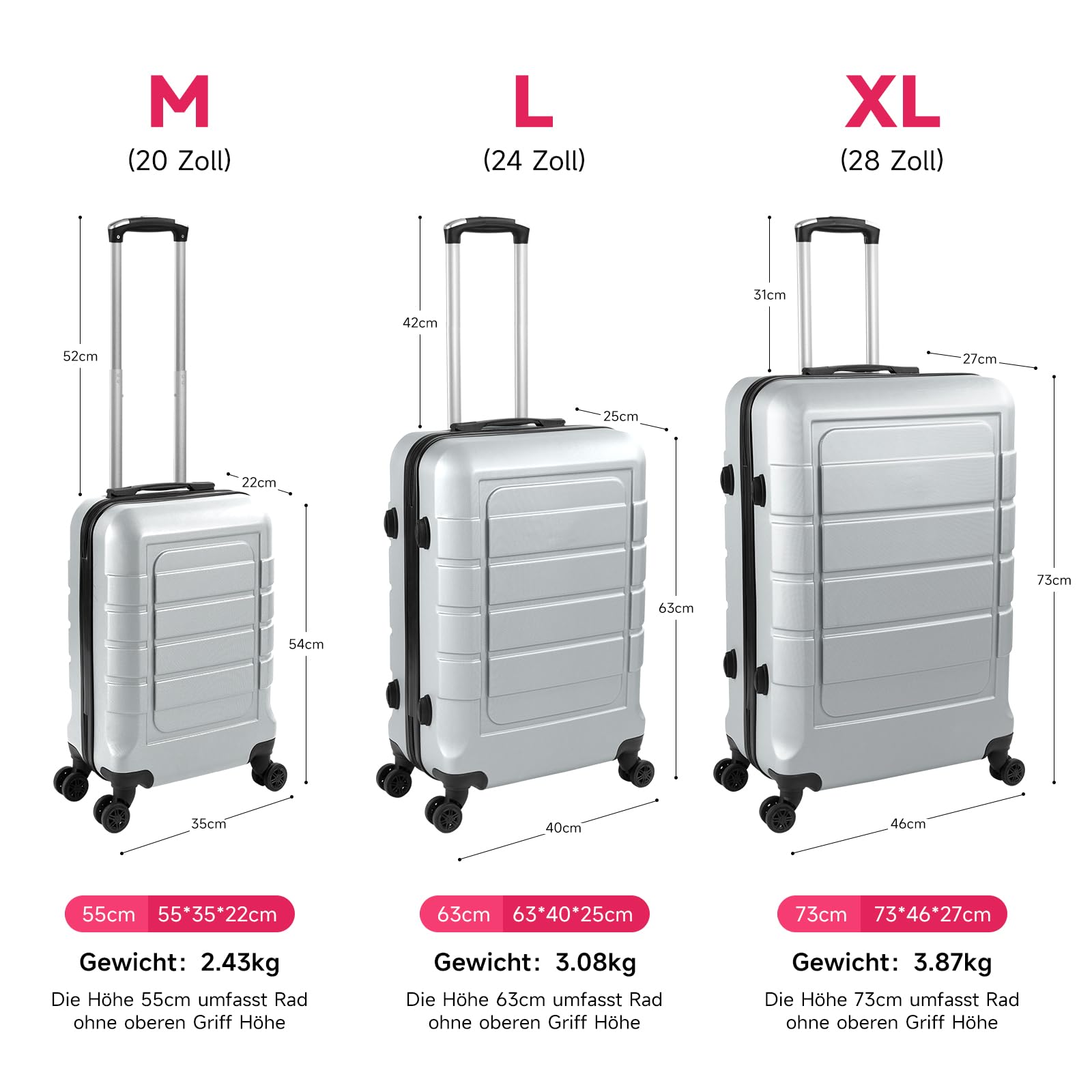 Each set contains three lightweight hard cases in sizes M, L and XL. The suitcases in this set are stackable and take up little space when not in use. which are made of durable ABS material to ensure a long service life and resistance to scratches.