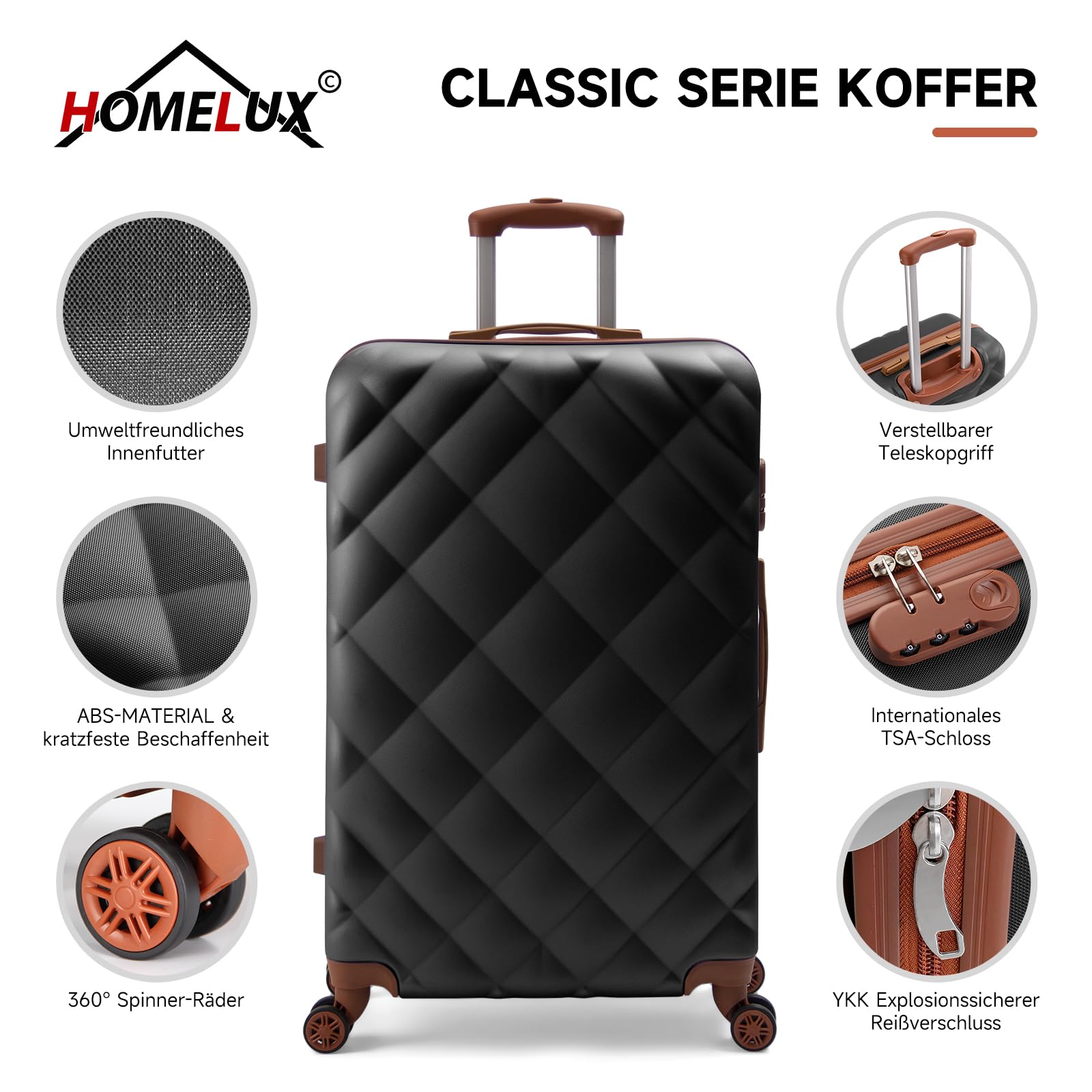the HOMELUX hard shell case is made of hard ABS material, is strong, lightweight and scratch-resistant. Durable and lightweight travel suitcase luggage with high quality - best for business travellers, back to school, for travelling by plane/train/boat.