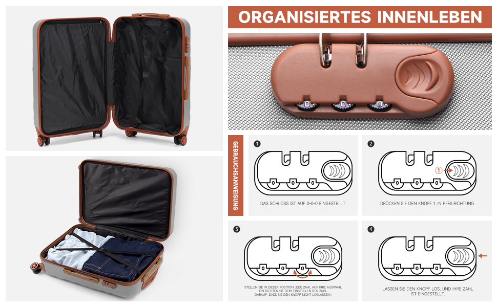 The multi-directional spinner wheels distribute the weight of your trolley suitcase evenly and ensure easy glide through high traffic airports or train stations. Fixed 3-dial combination lock for maximum security.