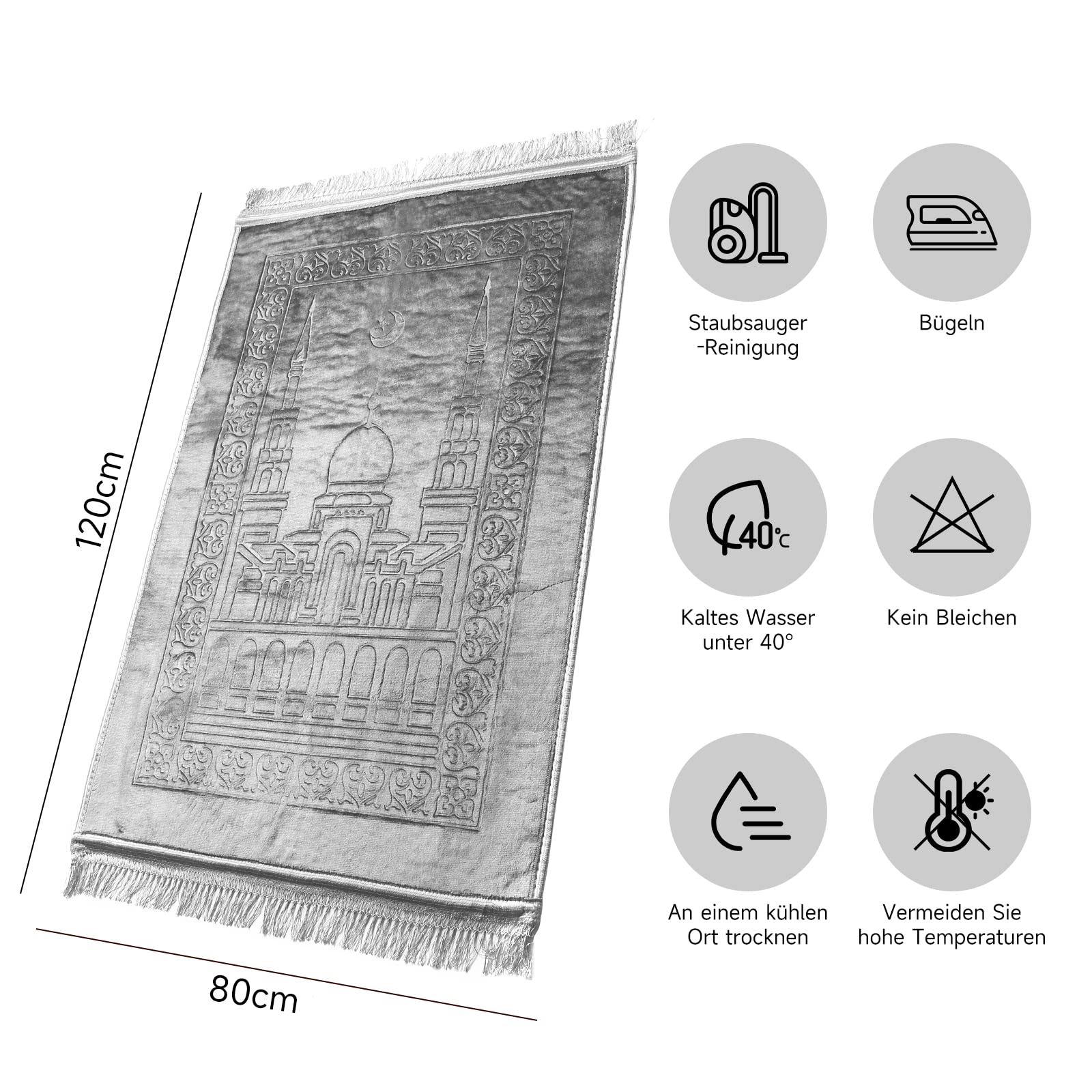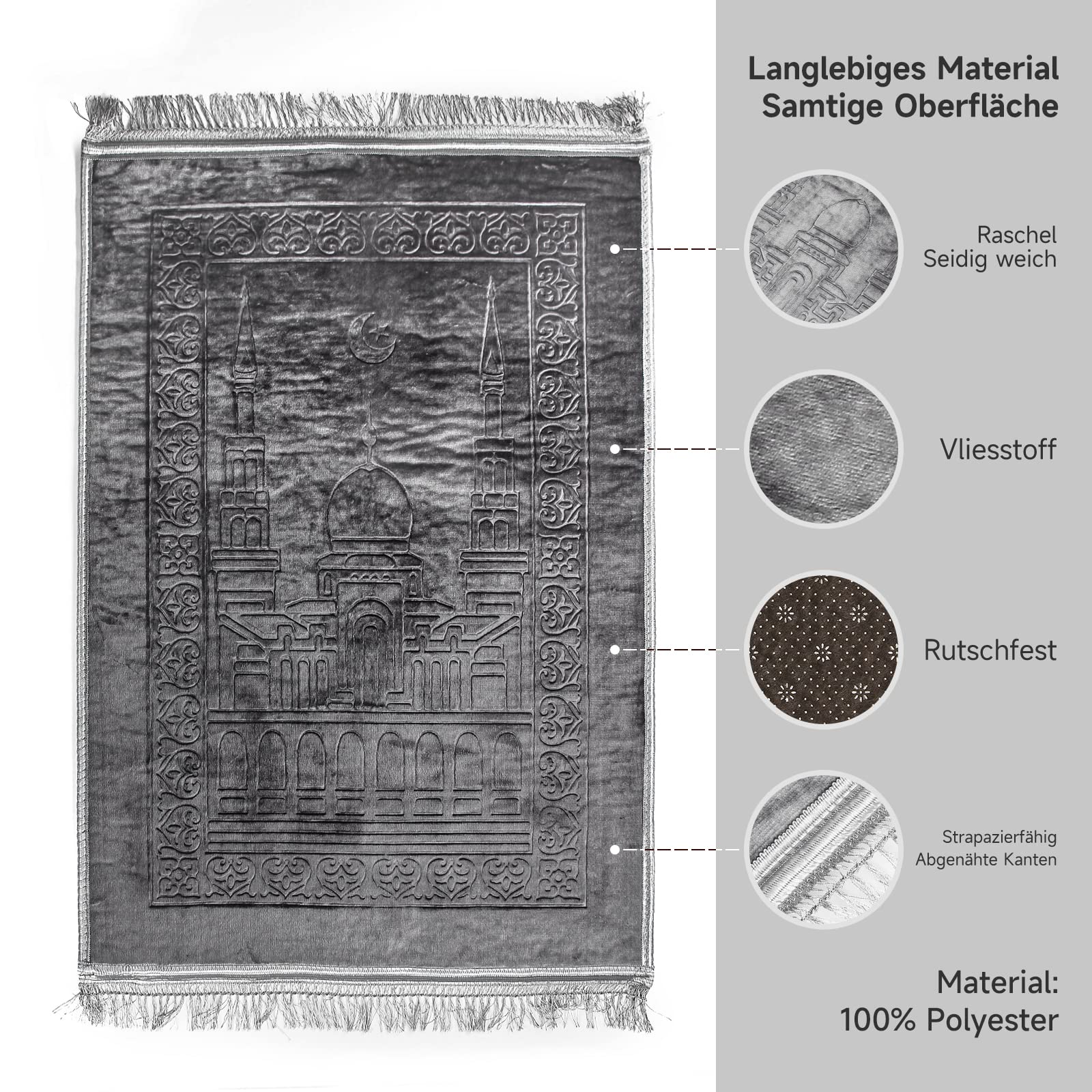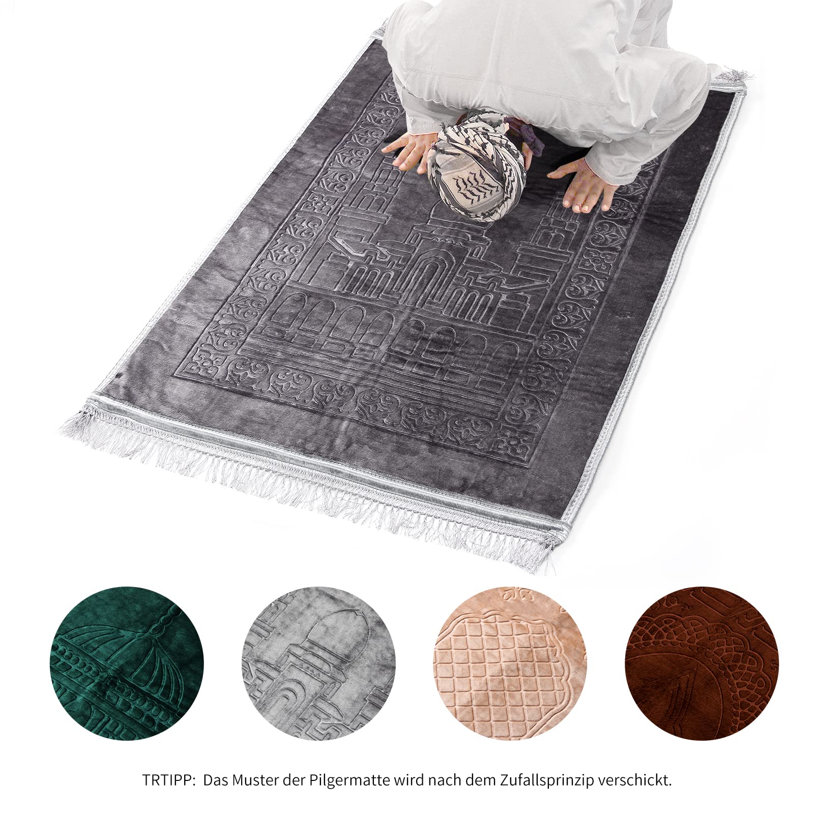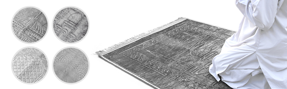 Our prayer mat is designed with a 3D tufted plain pattern and is available in four colours. Please note that the pattern is not selectable. We provide you with random patterns, and each prayer rug will surprise you.