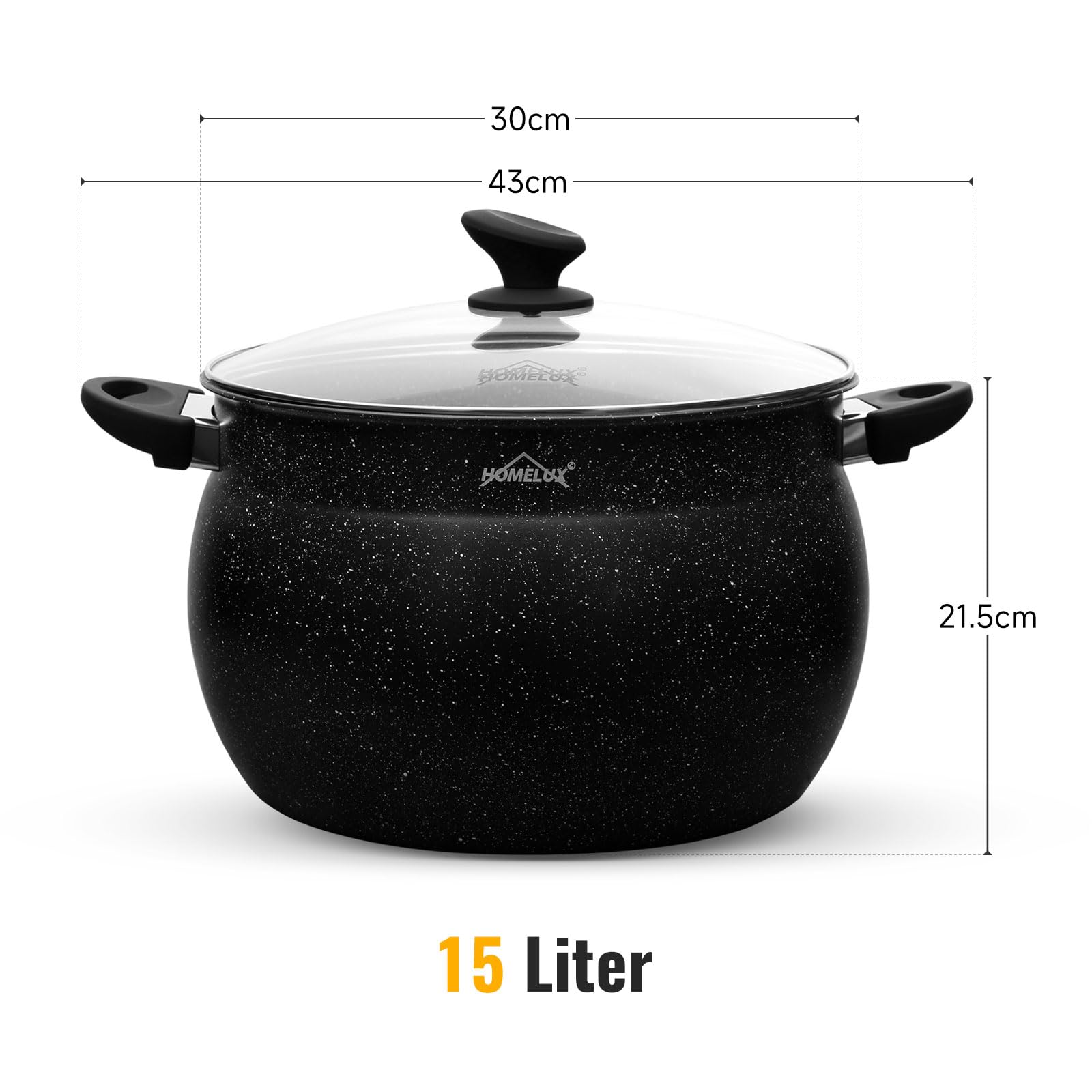 Homelux 30 cm Saucepan Induction Cooking Pot with Glass Lid, Non-Stick Coating, 15 L Aluminium Soup Pots for All Types of Cookers (H-C30)