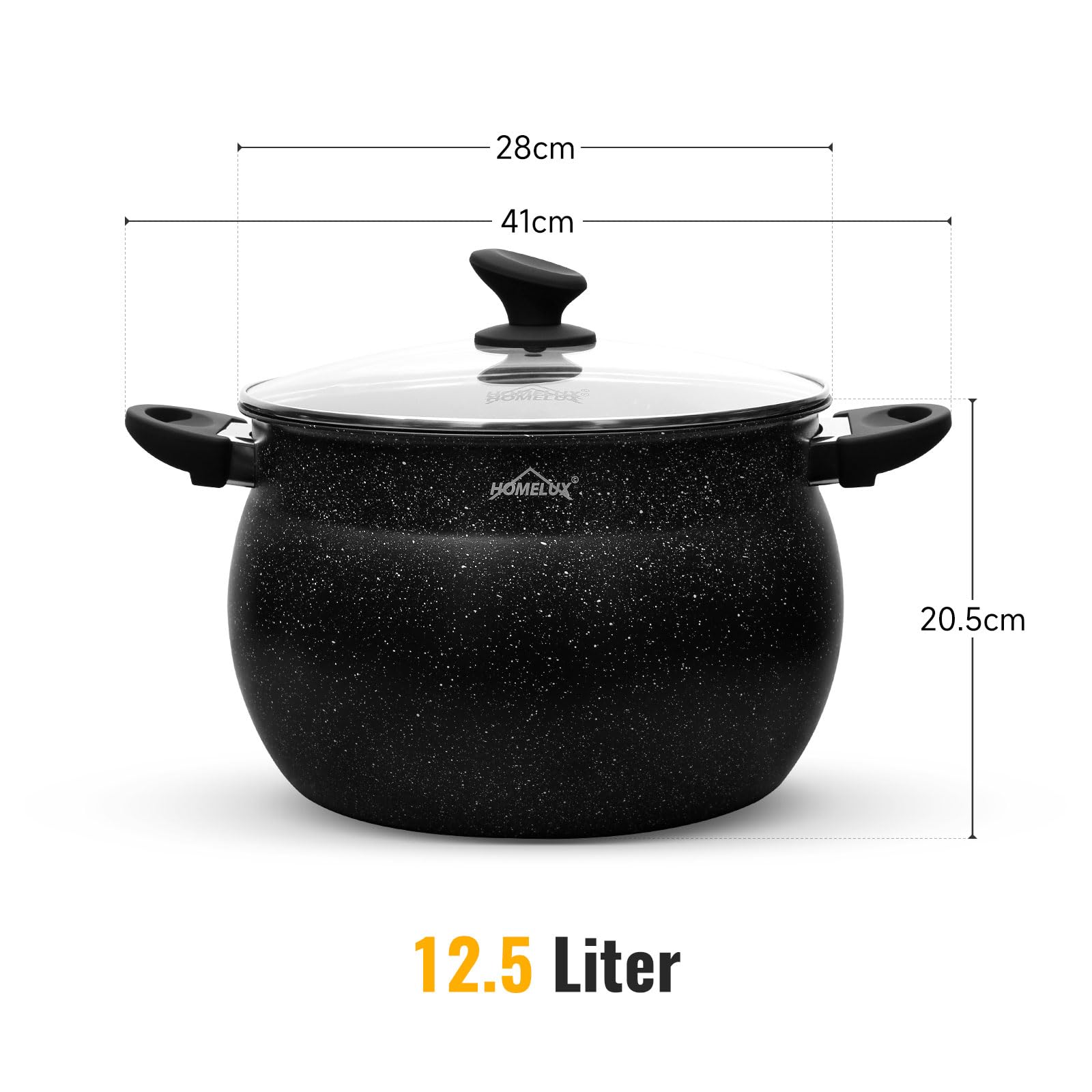 Homelux 28 cm Saucepan Induction Cooking Pot with Glass Lid, Non-Stick Coating, 12.5 L Aluminium Soup Pots for All Types of Cookers (H-C28)