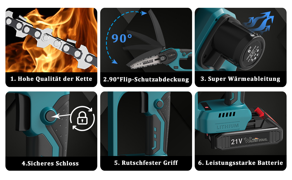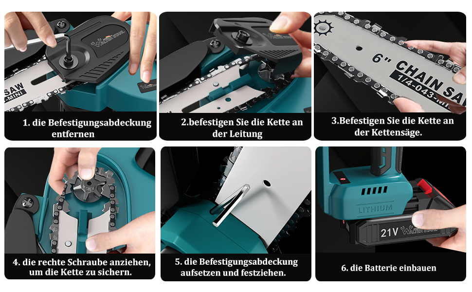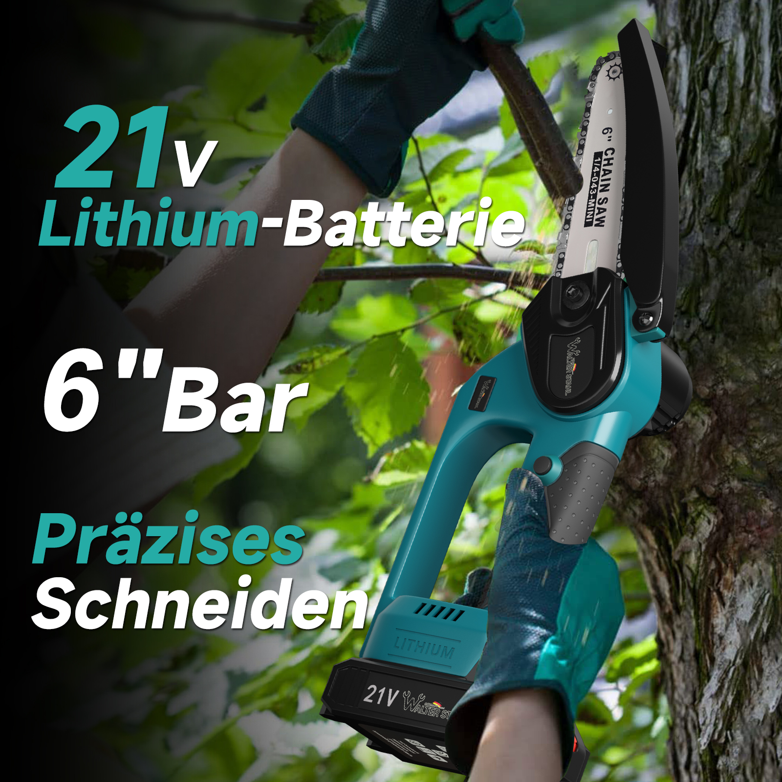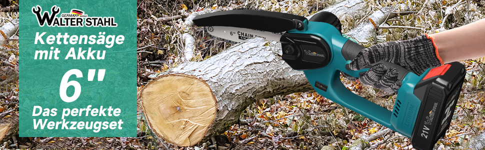 21V cordless chain saw 6",two batteries one charger, BS8017