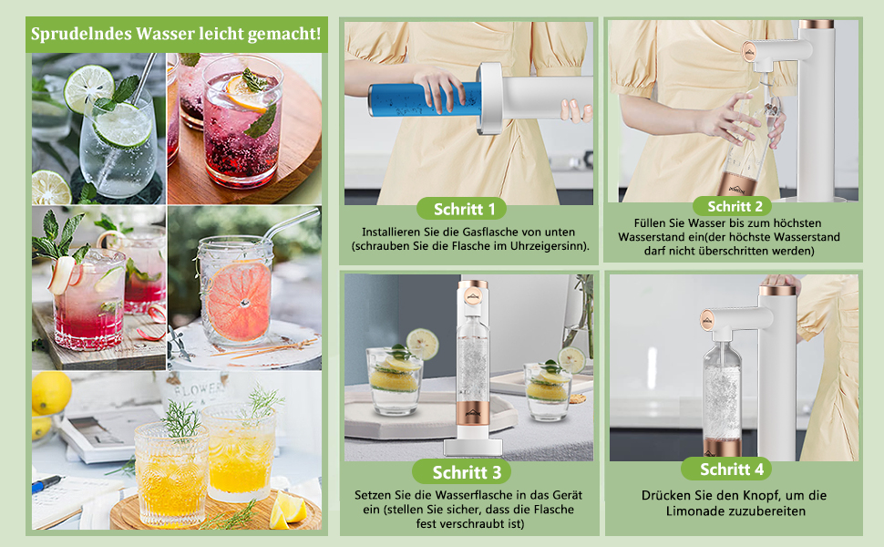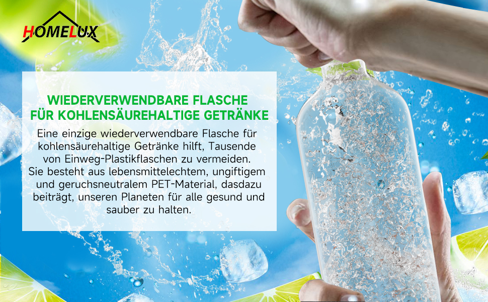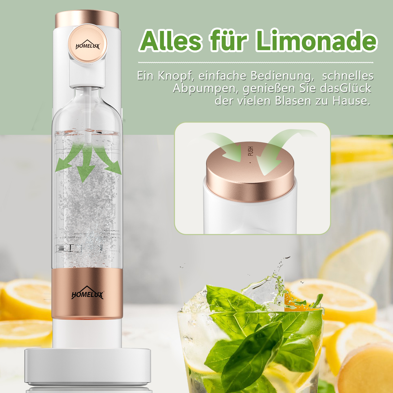 With the HOMELUX carbonated water dispenser, you only need to fill, turn and press in three steps to turn your clear water into delicious sparkling water in seconds. Repeat the process 2-3 times to adjust the carbonation level of your choice. For the best bubbles, we strongly recommend using cold water.