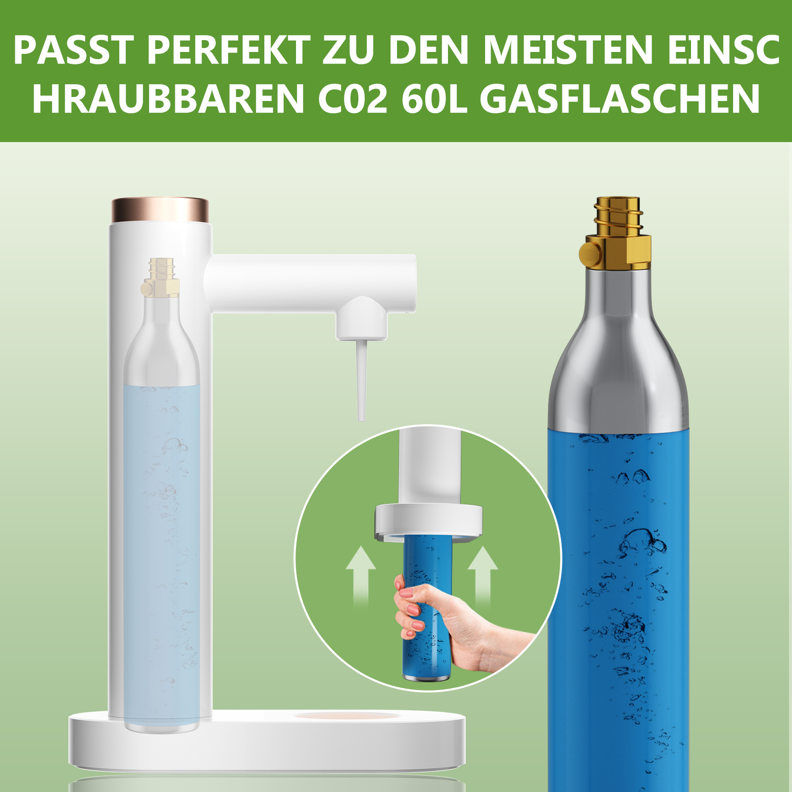 Requires separate purchase of a 60-liter, 14.5-ounce CO2 cartridge. The water bubbler is compatible with any standard 60-liter CO2 replacement screw-in cartridge (not included).