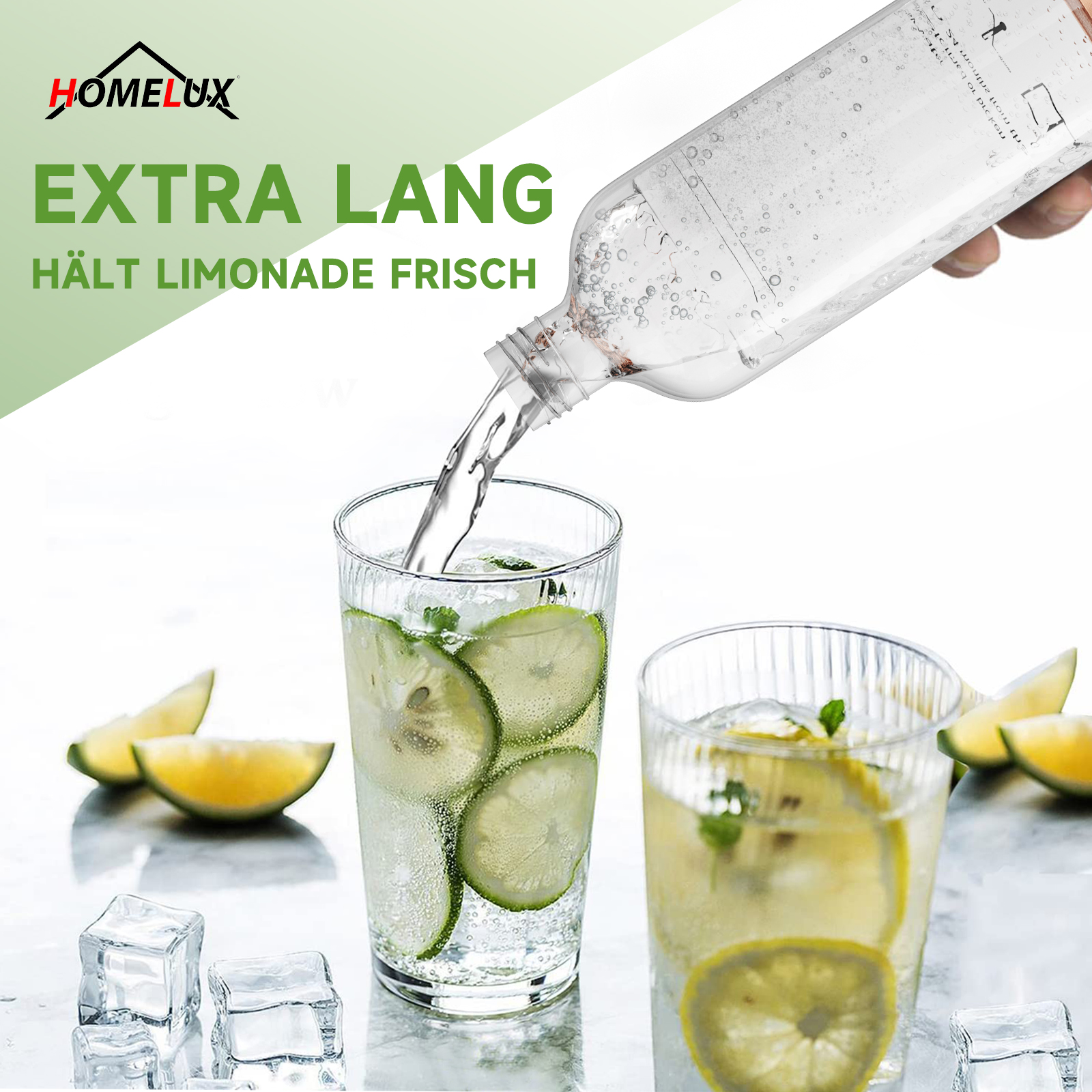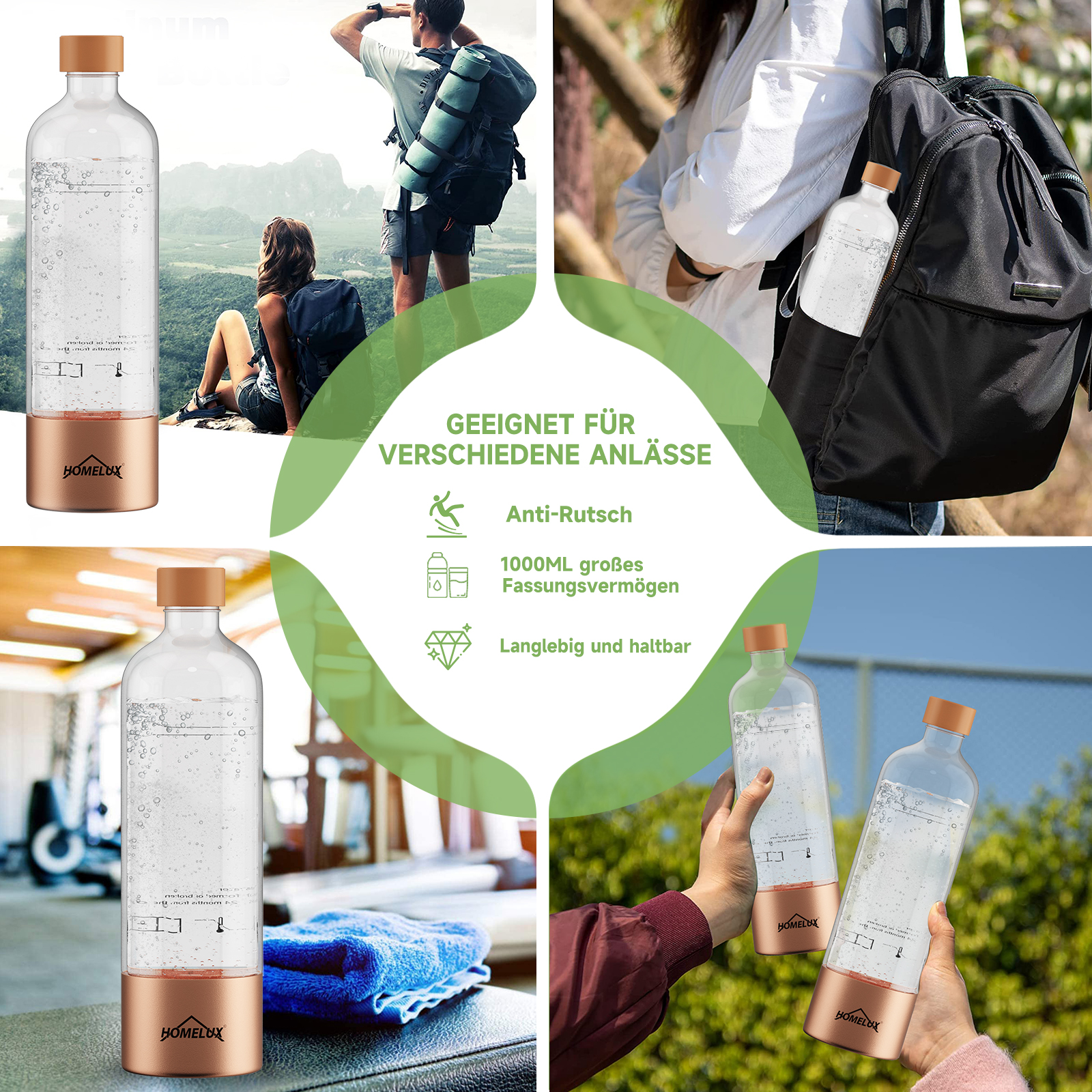 HOMELUX water bubbler bottle 2x 1L, PET bottles for sparkling water machine, plastic bottle replacement bottles - BPA-free, unbreakable, reusable, transparent - ideal for school, sports, leisure time,H-PB012