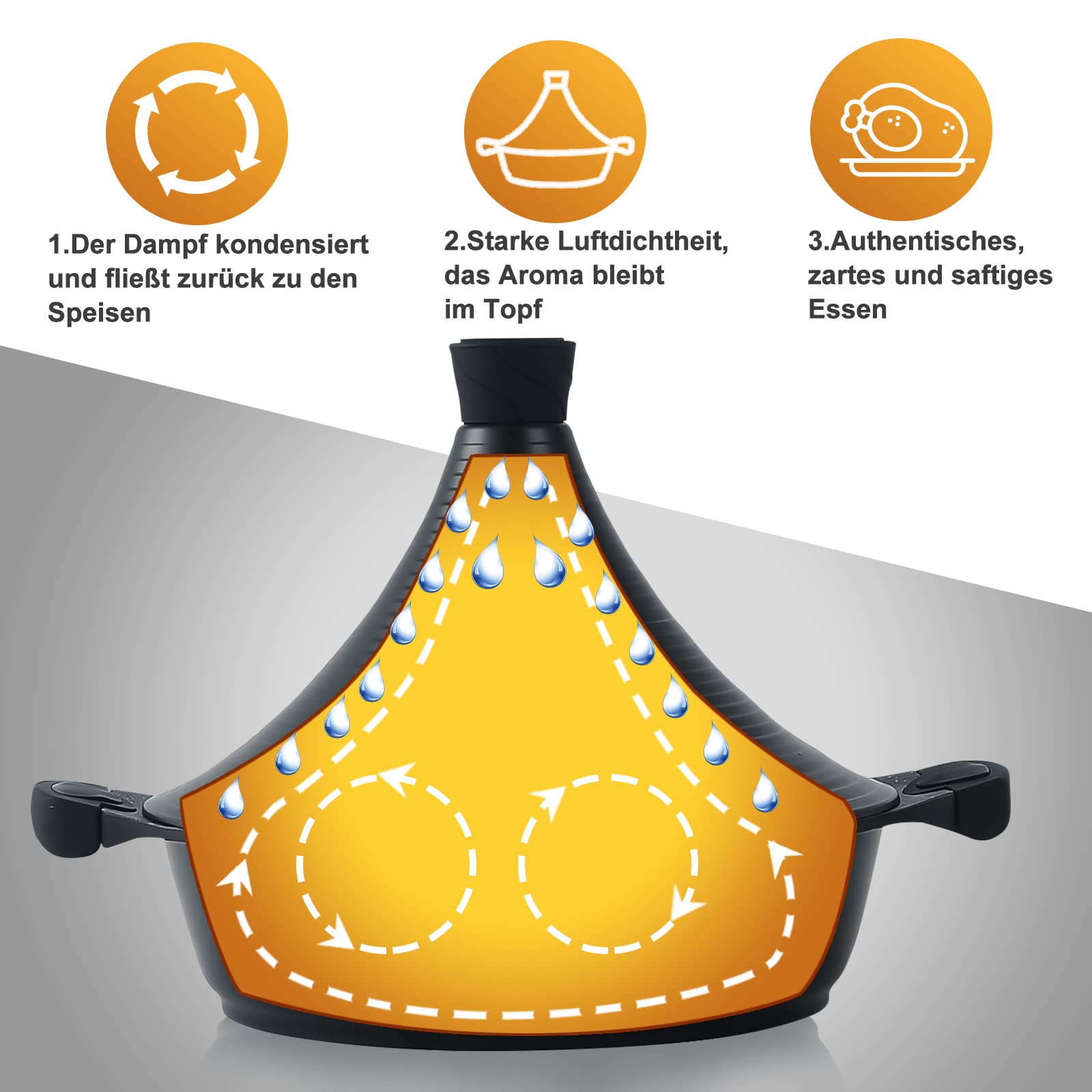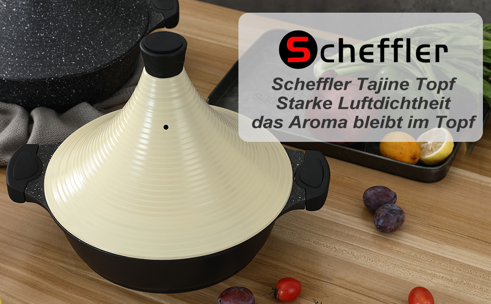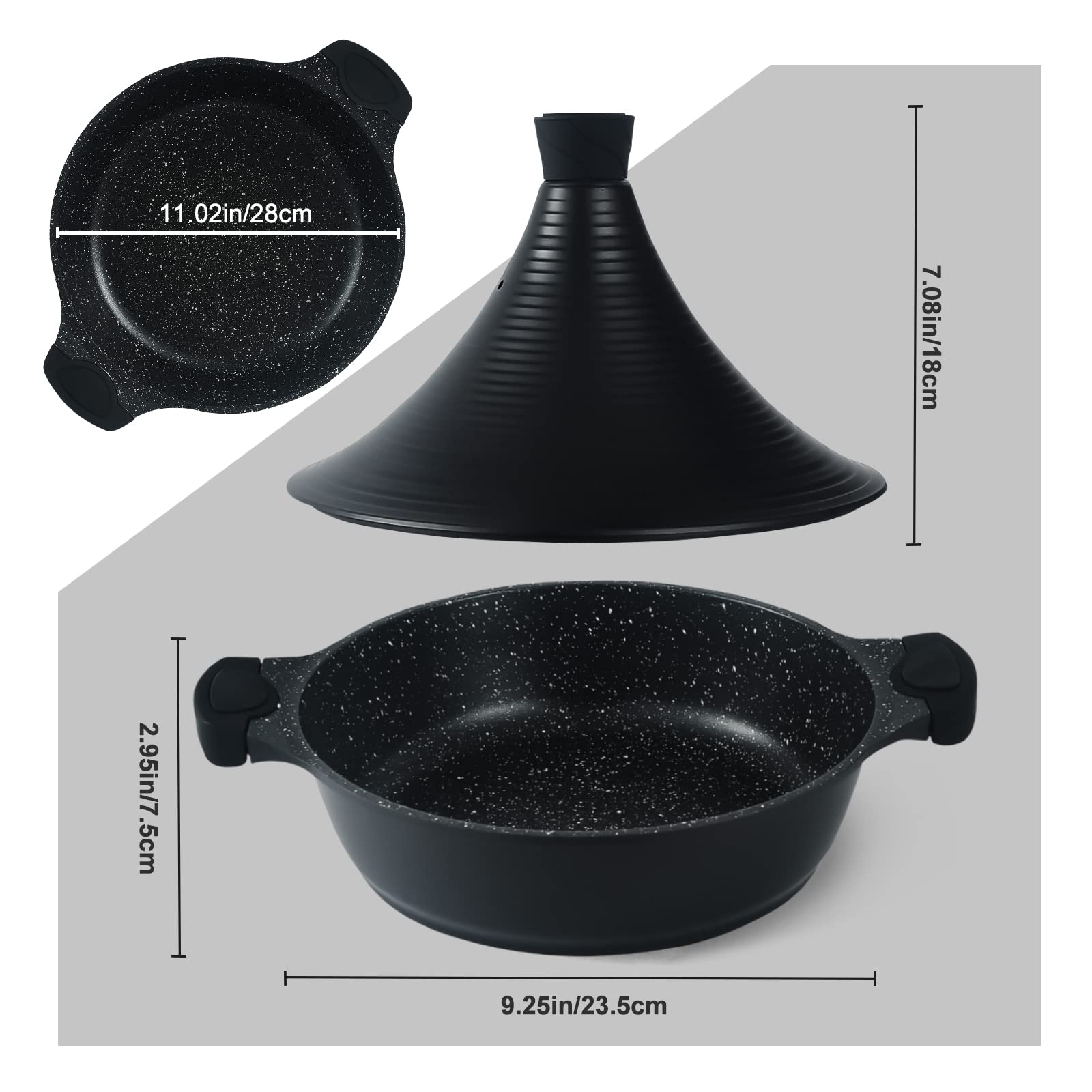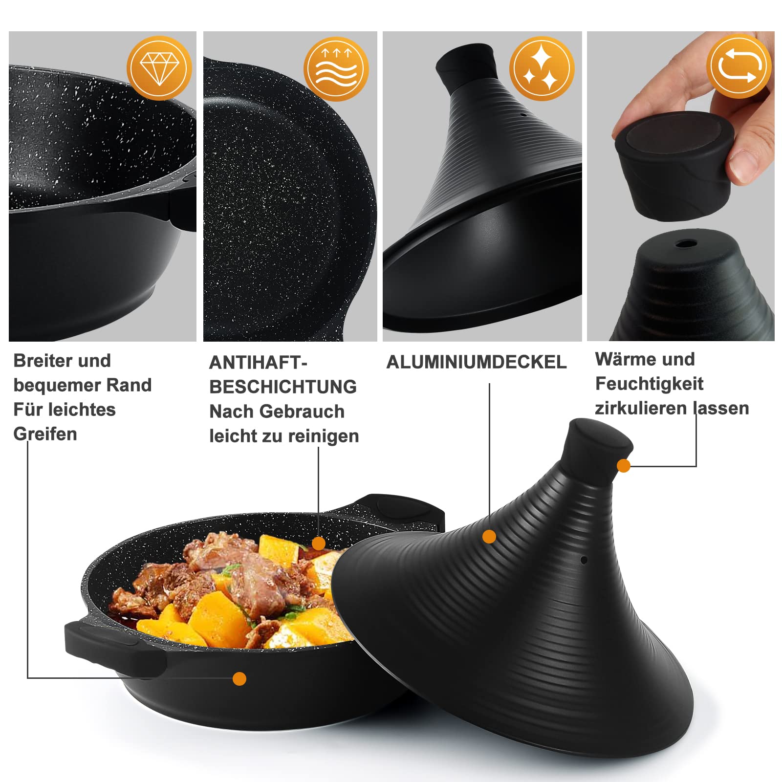 Scheffler Tagine Pot - Moroccan Tagine 28 cm Non-Stick Coating Aluminium with Conical Shape (28 cm Black)