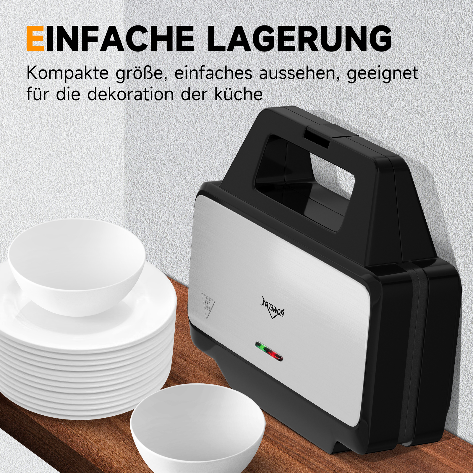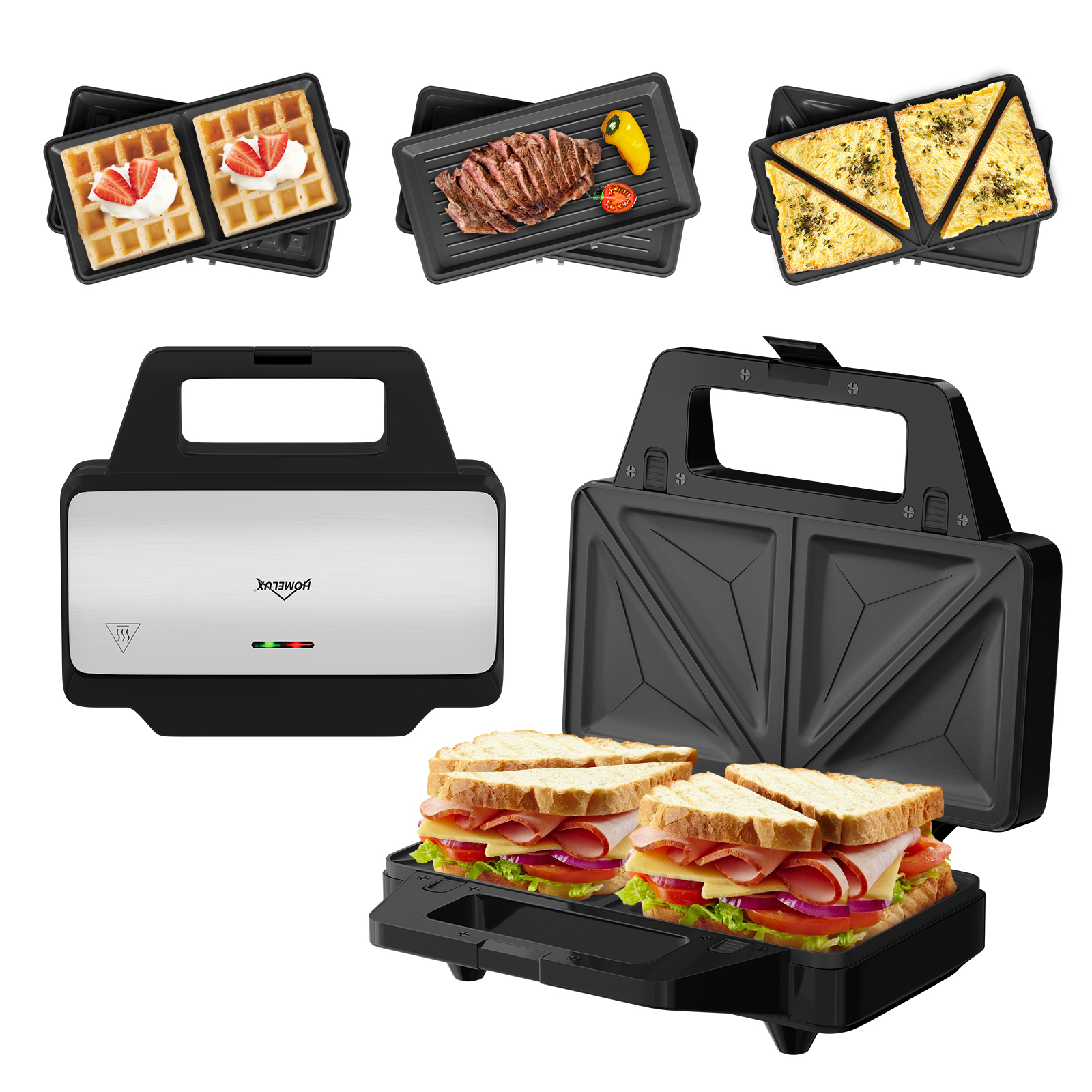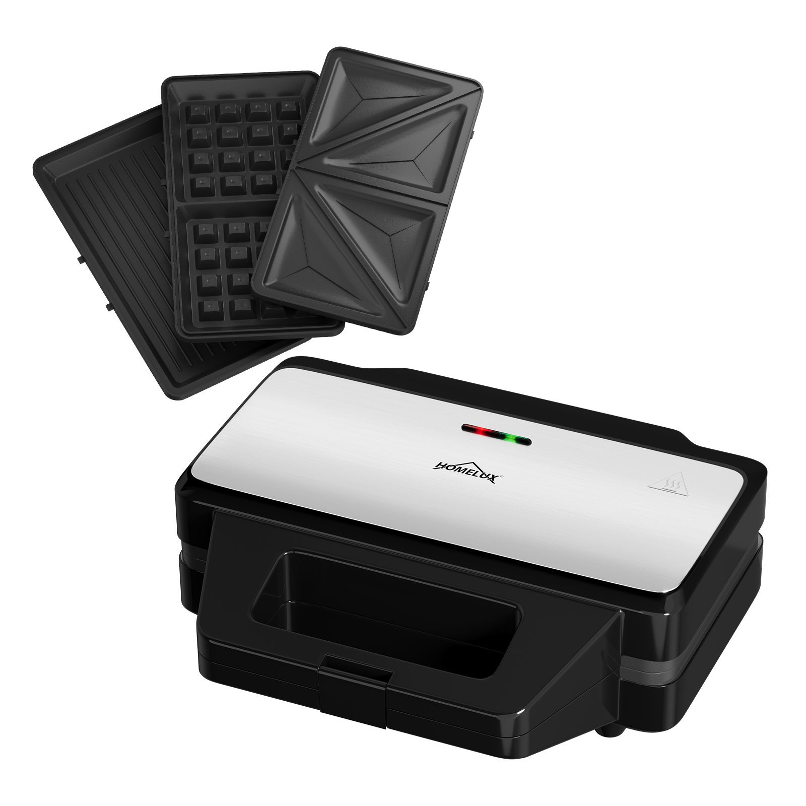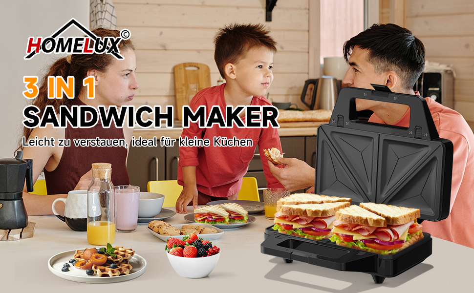 HOMELUX sandwich maker 1000W, sandwich toaster with non-stick coating 3-in-1 waffle iron contact grill quick heating, automatic temperature control, vertical storage, ZM-238B