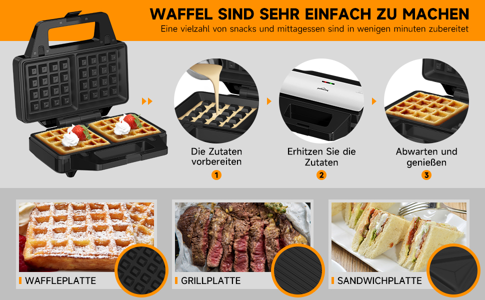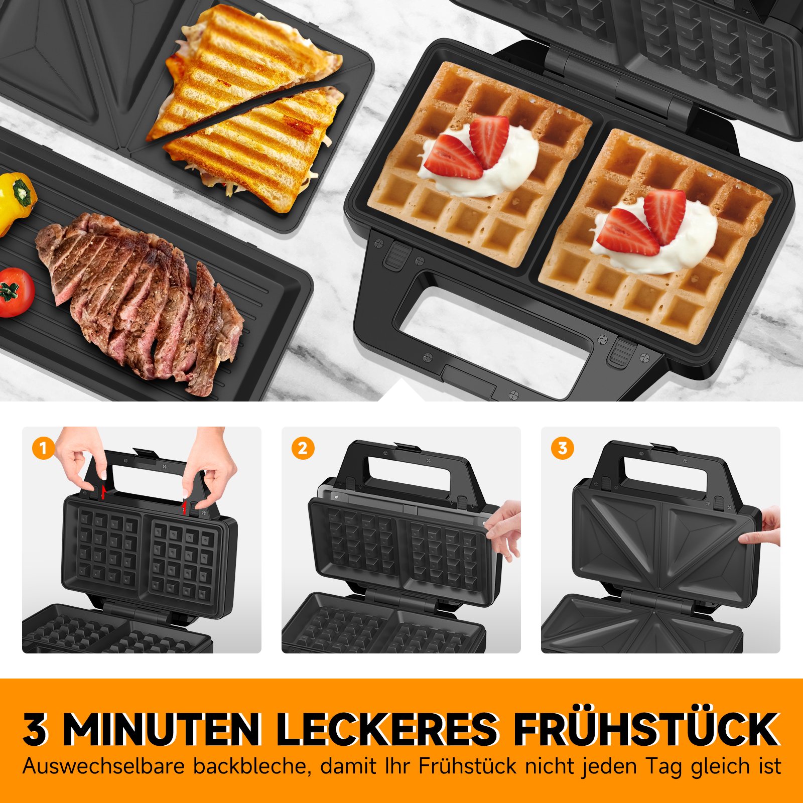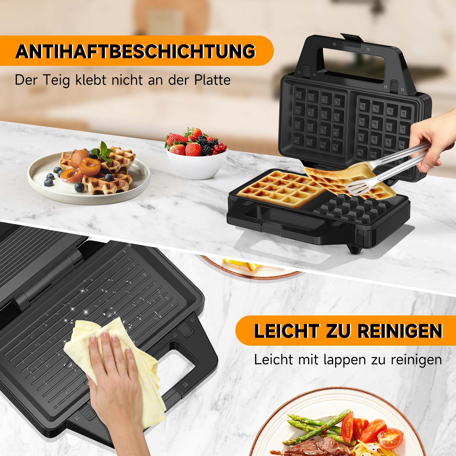A sandwich or a waffle for breakfast? A roast or grilled vegetables? Our compact waffle iron is versatile - it offers you 3 removable replacement grill plates for different purposes. You can easily prepare classic waffles in a variety of flavors or make sandwiches, grilled meat and roasted nuts. You can experience the joy of a fancy breakfast without having to repeat it at home!