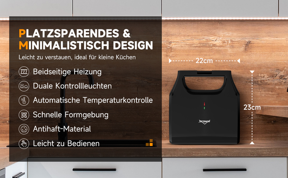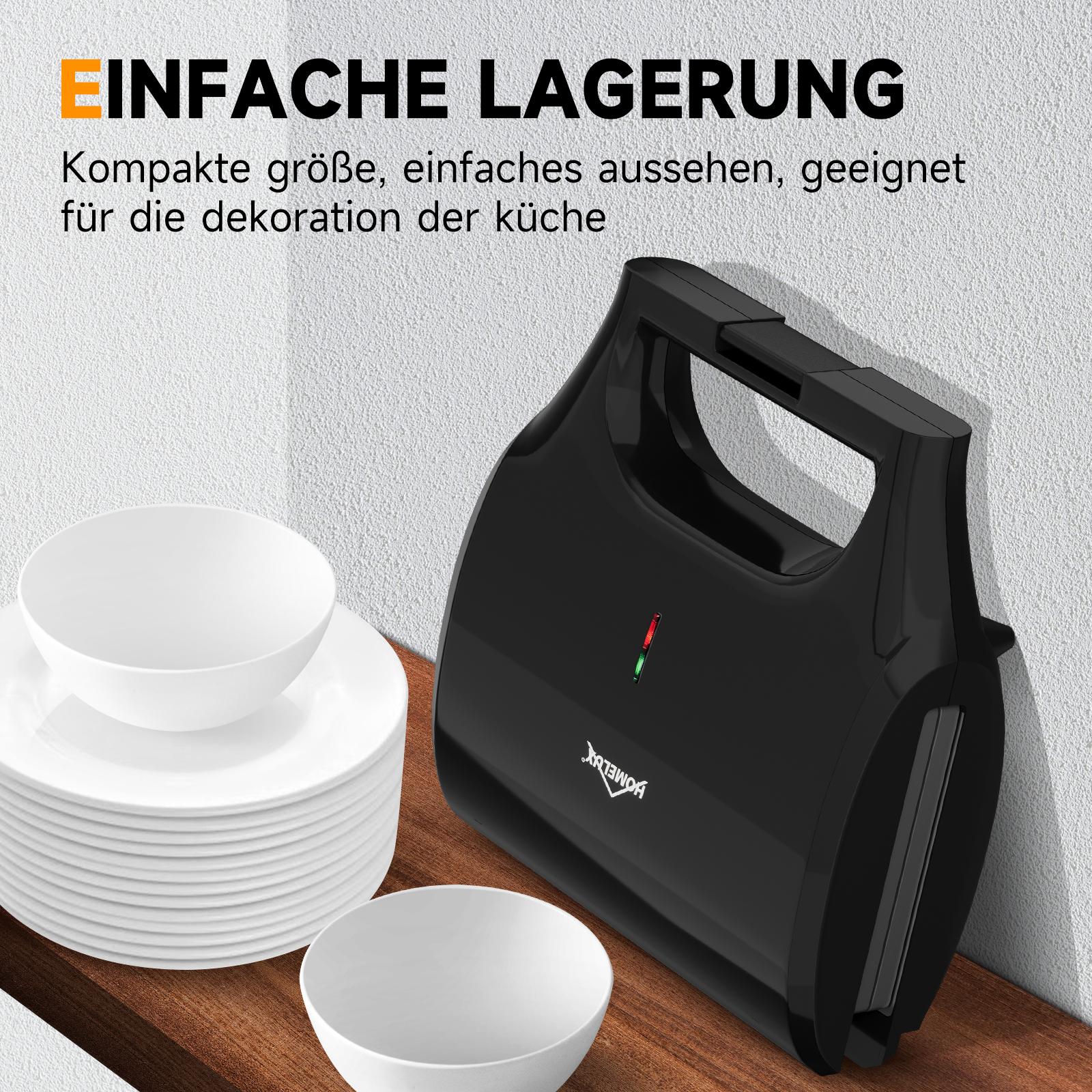 3-A sandwich or a waffle for breakfast? A roast or grilled vegetables? Our compact waffle iron is versatile - it offers you 3 removable replacement grill plates for different purposes. You can easily prepare classic waffles in a variety of flavors or make sandwiches, grilled meat and roasted nuts. You can experience the joy of a fancy breakfast without having to repeat it at home!