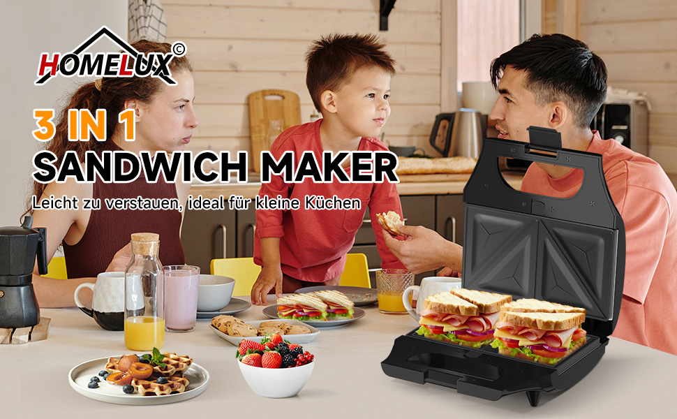 HOMELUX Sandwichmaker 3-in-1 Waffeleisen 800W Kontaktgrill ,ZM-237