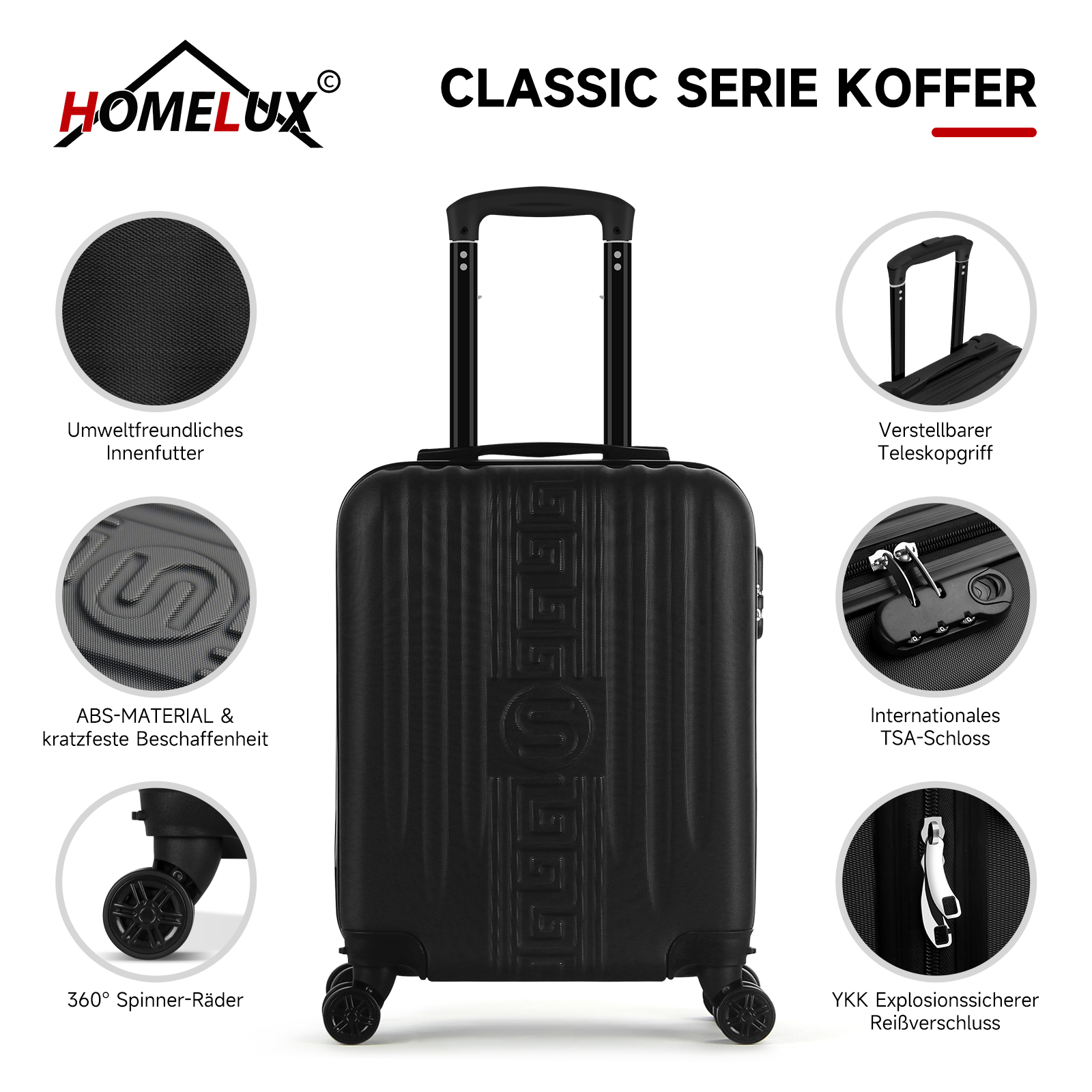 HOMELUX hard-shell trolley hand luggage suitcase trolley hard-shell wheeled suitcase, 4 wheels, black, suitcase, M