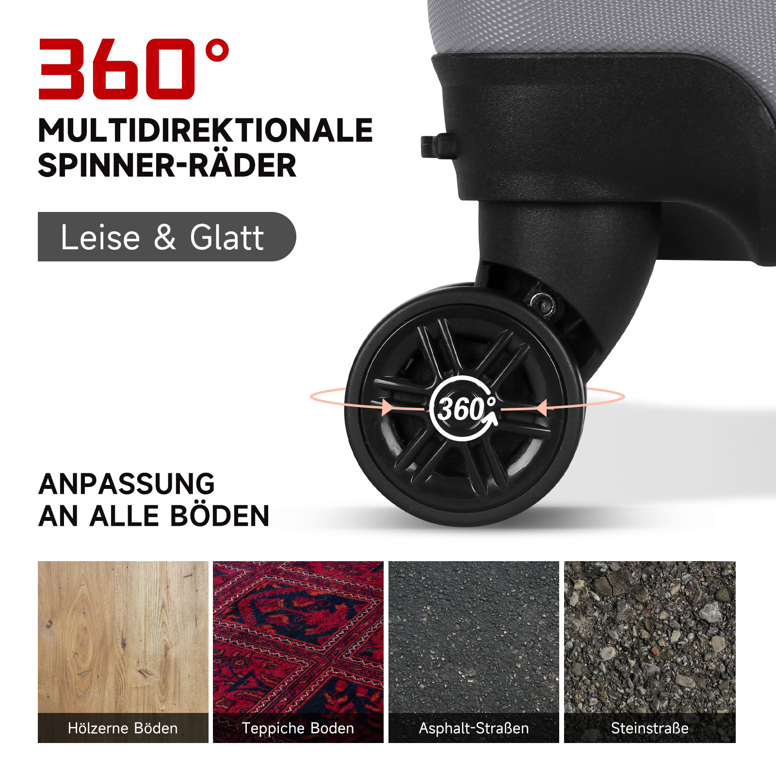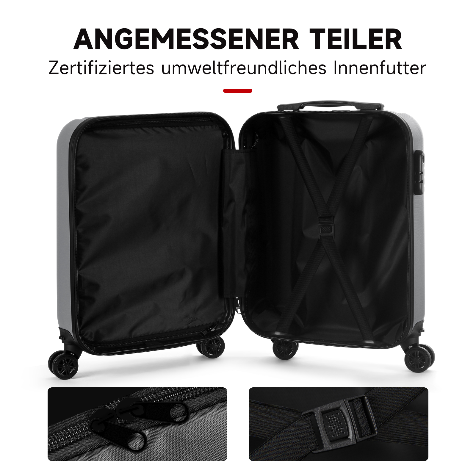 HOMELUX hard shell trolley hand luggage suitcase trolley hard shell wheeled suitcase, 4 wheels, silver, suitcase, M,SCH019-18SV