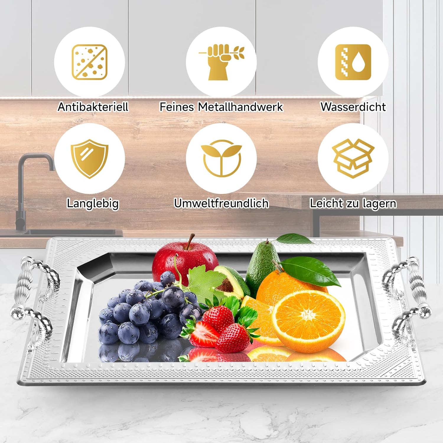 Tray Homelux serving tray set of 2 decorative trays with handle, practical tray for kitchen, living room, bathroom, banquet(HL-TS2316M)