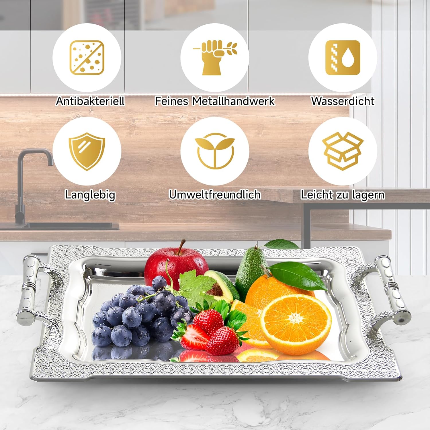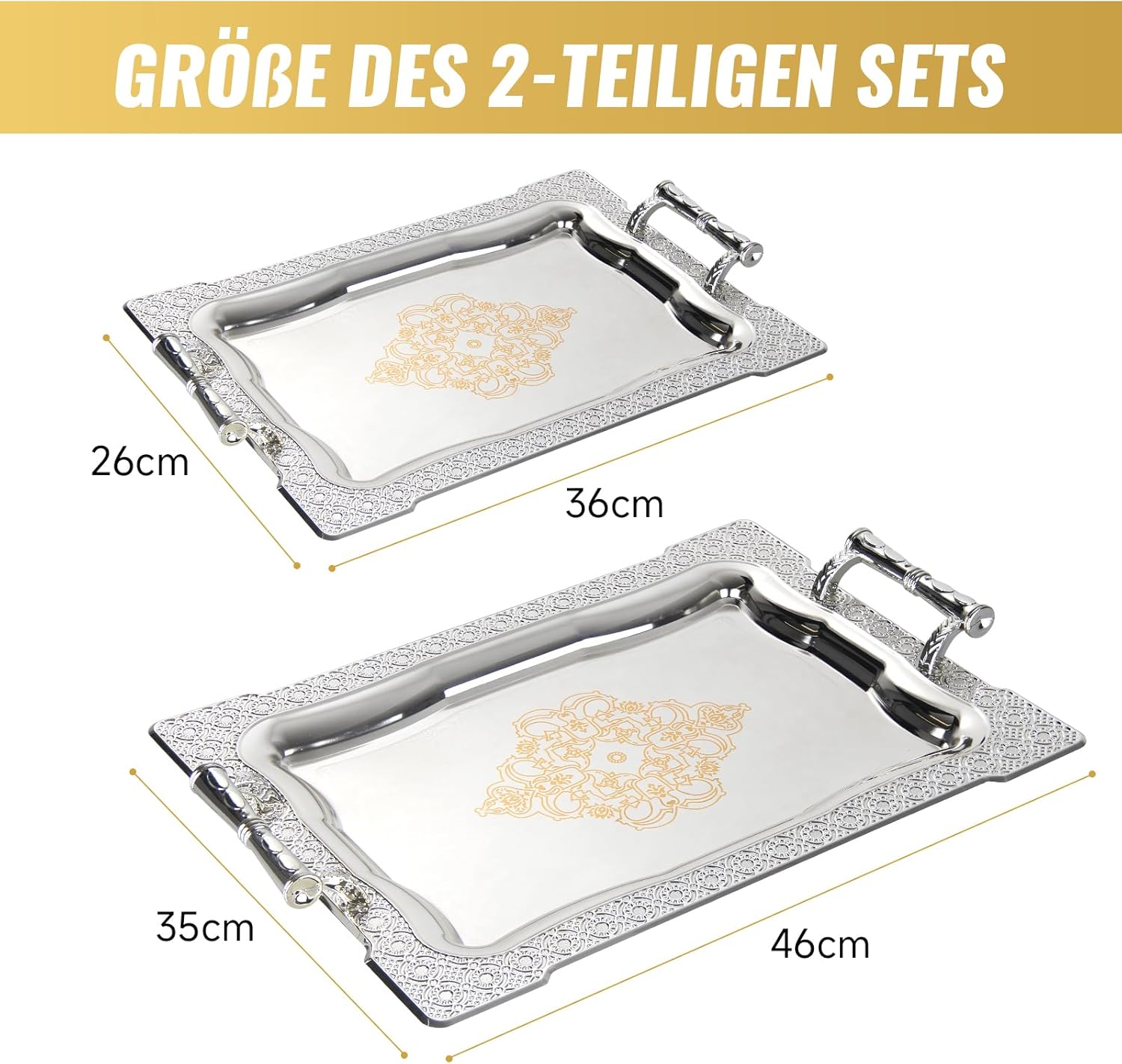 Tray Homelux serving tray set of 2 decorative trays with handle, practical tray for kitchen, living room, bathroom, banquet(HL-TS2319M)