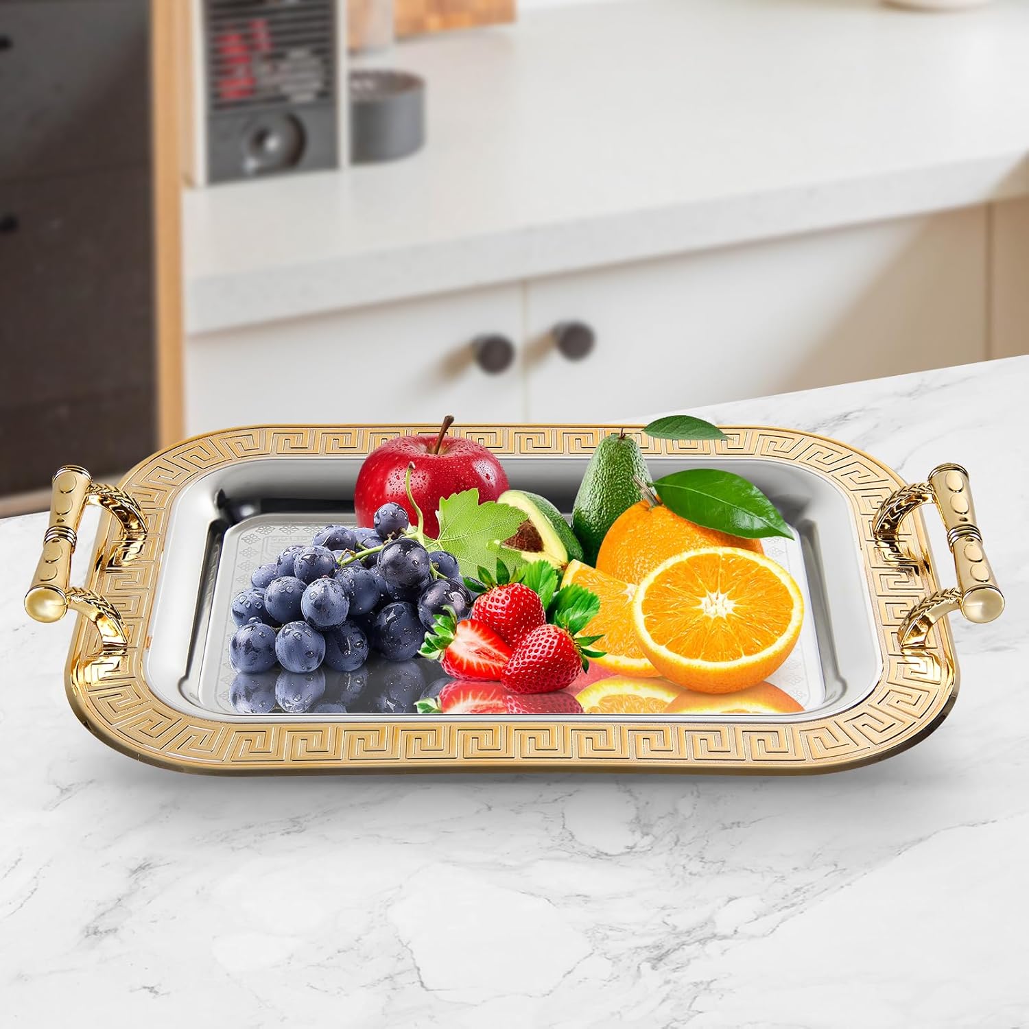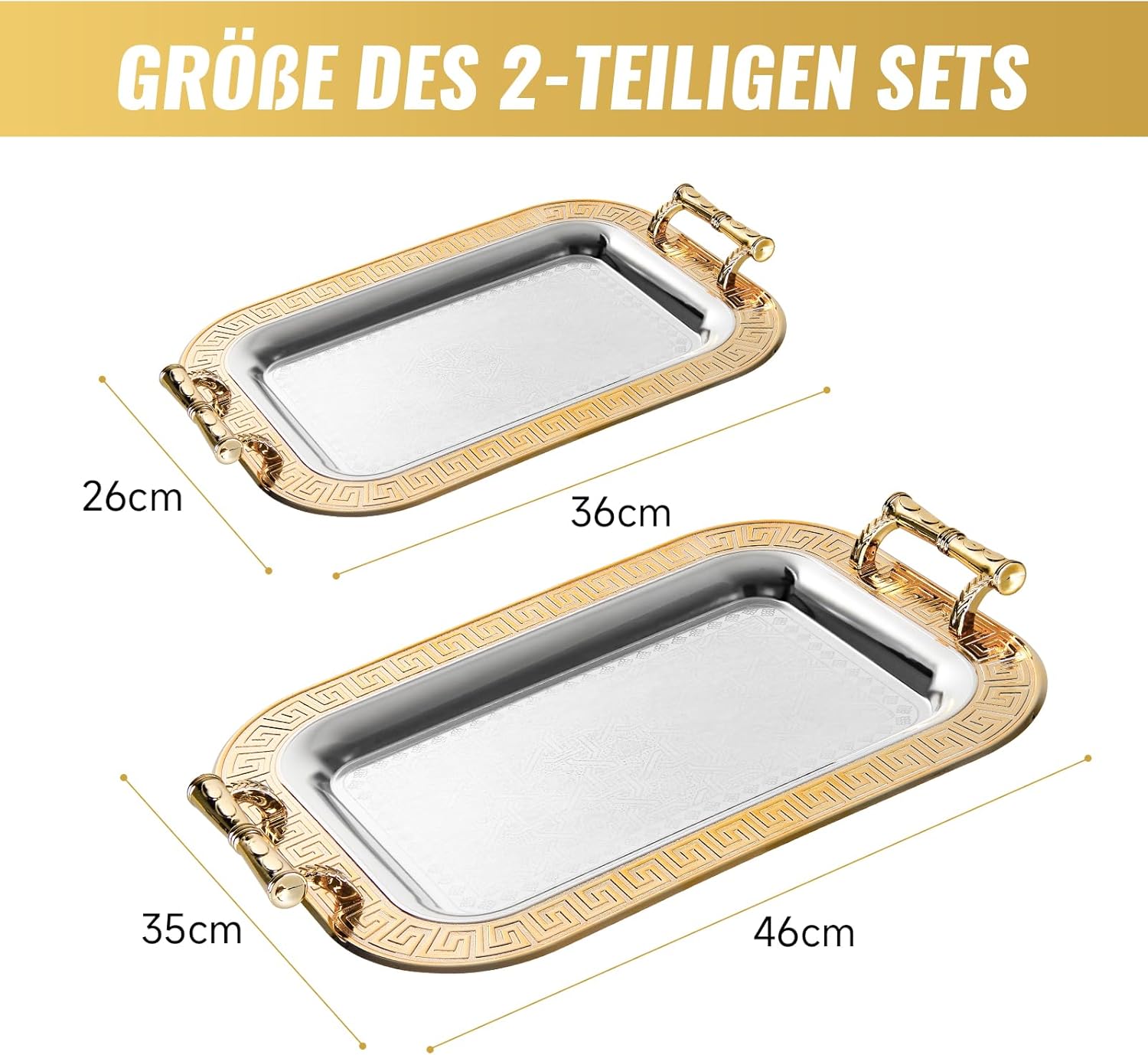 Tray Homelux serving platter set of 2 decorative trays with handle, practical tray for kitchen, living room, bathroom, banquet(HL-TS2320M)