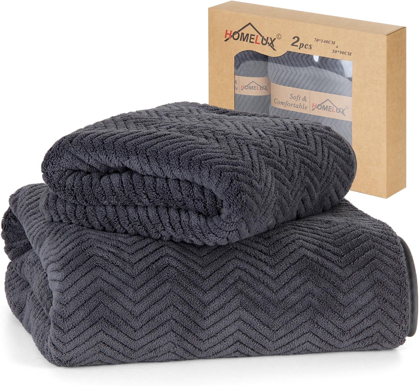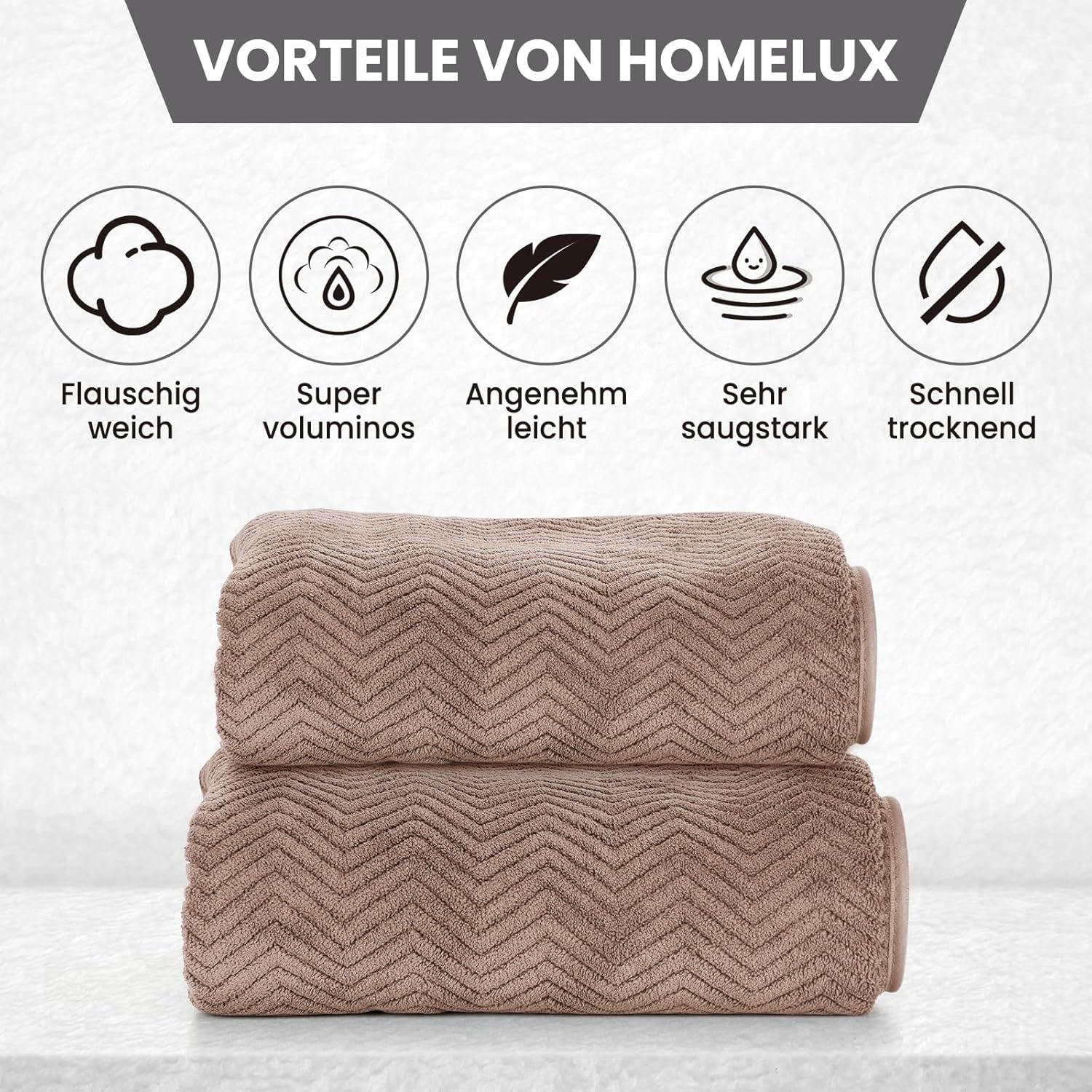 HOMELUX Hand Towel Set 2-Piece Bath Towel x 1 (70 x 140 cm) + Towel x 1 (50 x 90 cm) Absorbent Terry Towel Set - Hand Towels, Brown