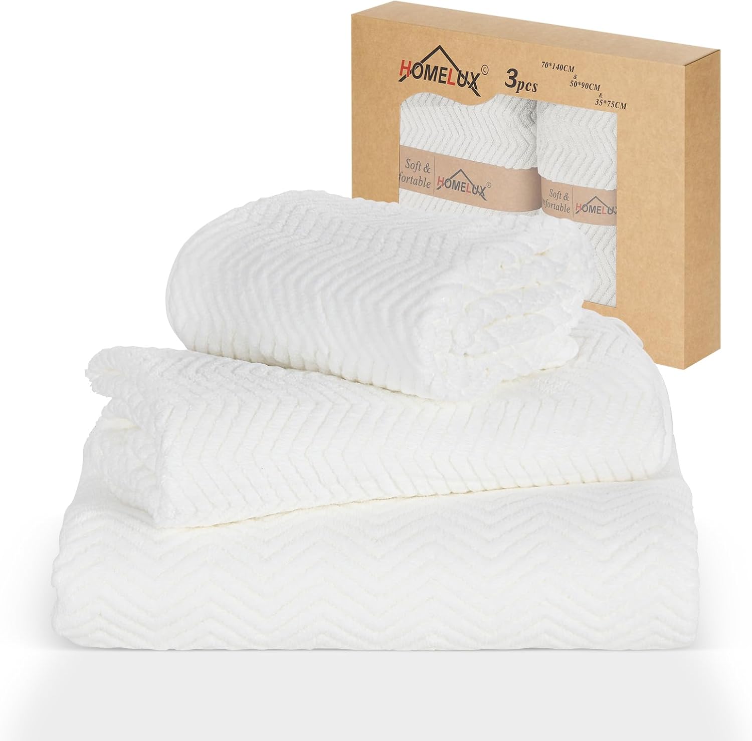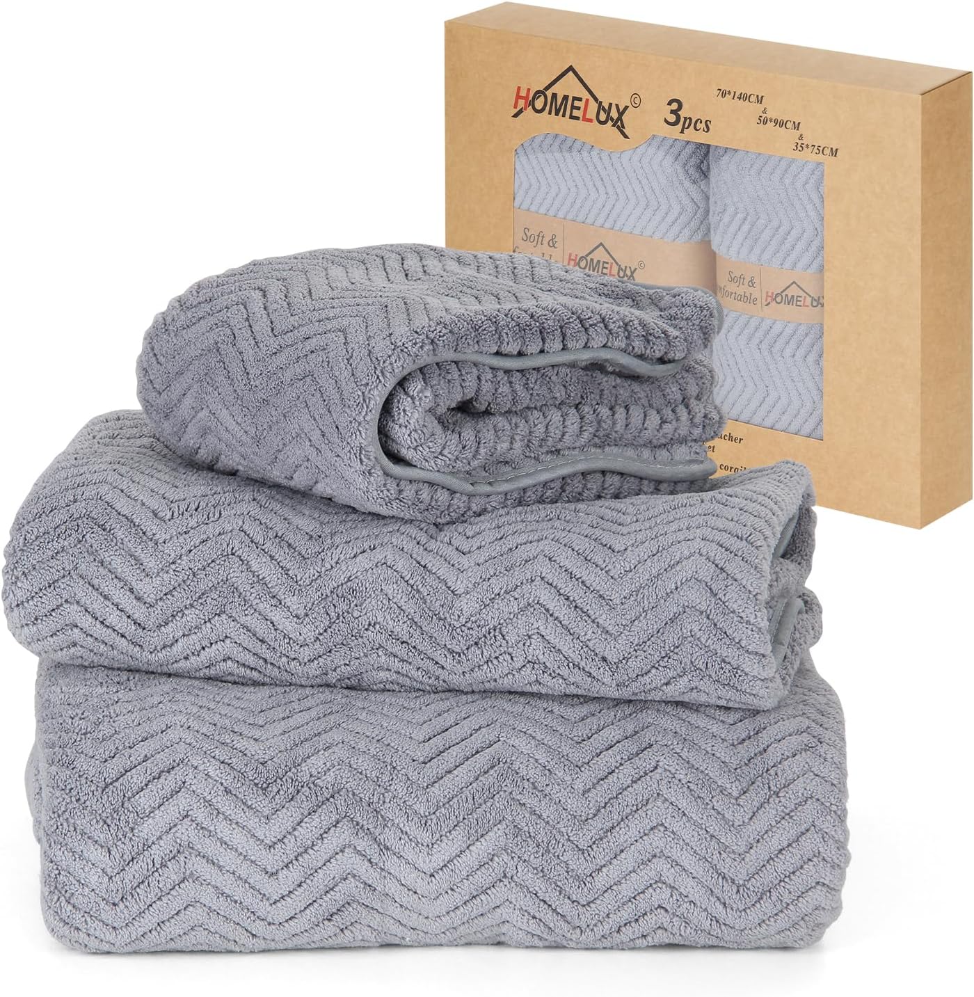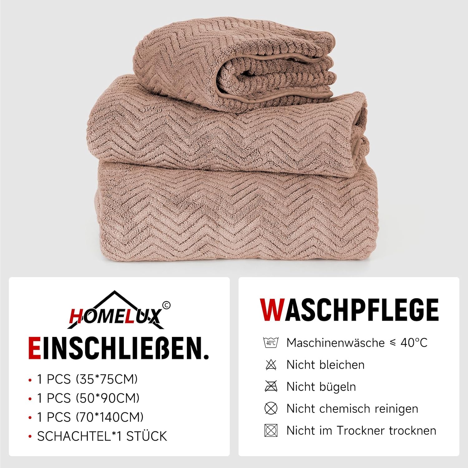 HOMELUX Hand Towel Set 3-Piece Bath Towel x 1 (70 x 140 cm) + Towel x 2 (50 x 90 + 35 x 75 cm) Absorbent Terry Towel Set - Hand Towels, Brown