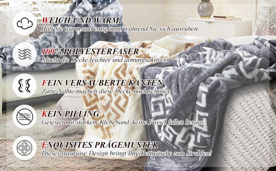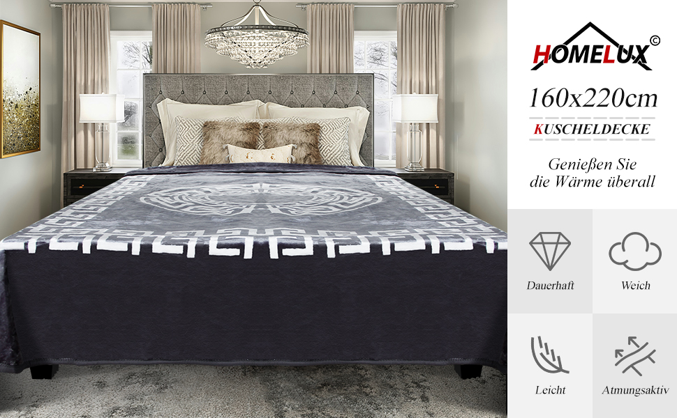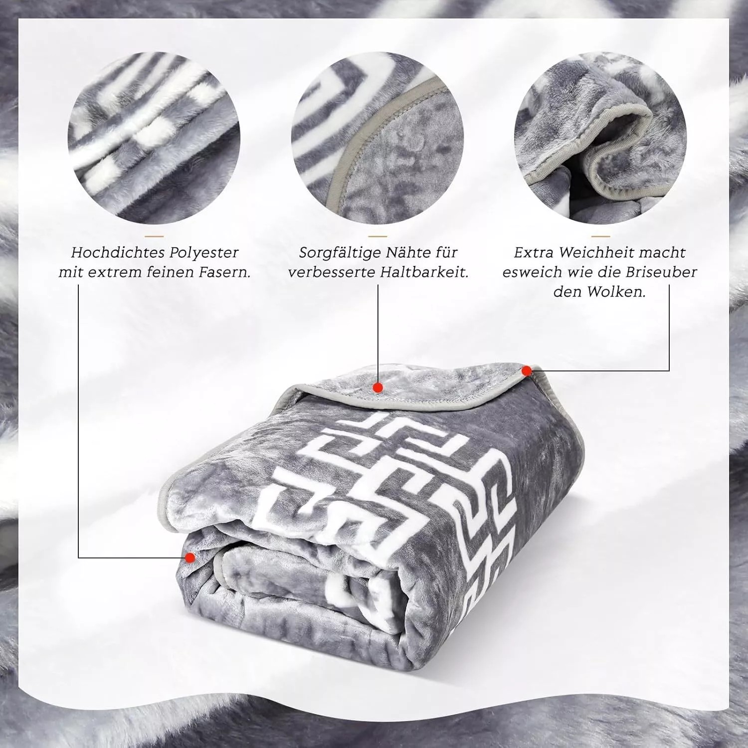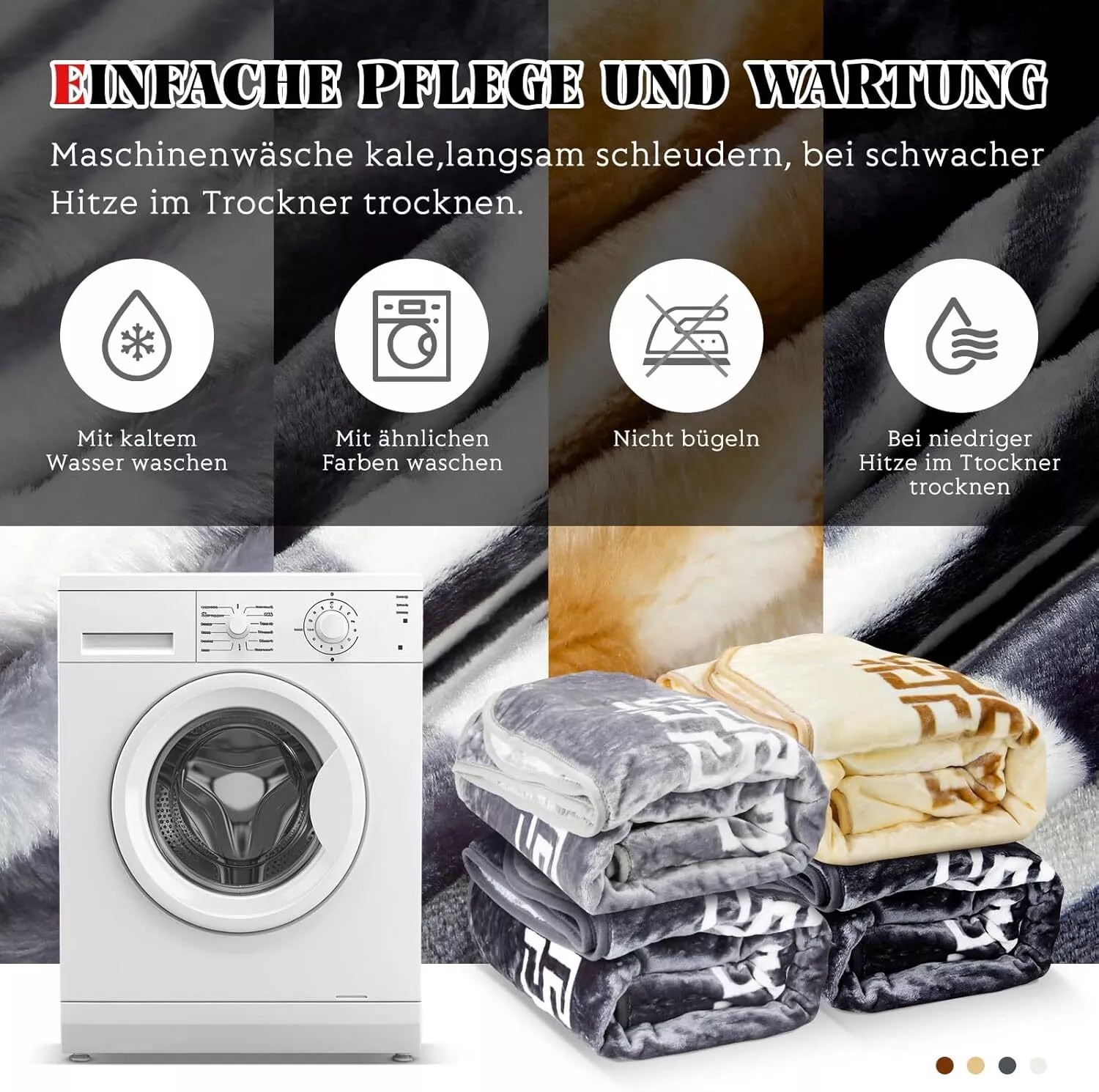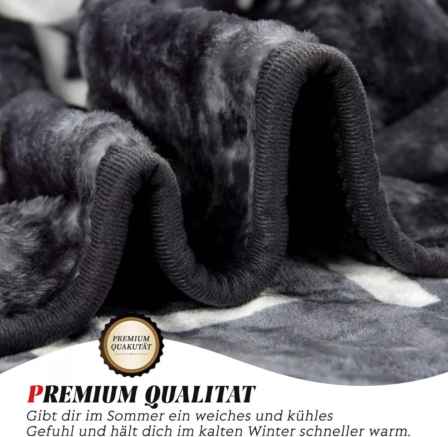 Thicker and softer: Cuddly blanket 160x220cm is made of high-quality material that is not only light and soft, but also breathable and skin-friendly and feels great on both the front and back. Whether you use it on its own or as an extra layer on cold nights, it offers you maximum comfort. The high-quality, embossed blanket will impress you. Durable: The neat stitching of this fluffy blanket ensures a stronger bond at the seams and is less prone to unraveling, increasing durability. Excellent insulation with just the right weight provides excellent heat retention and keeps you cozy and warm even in cooler temperatures. Versatile use: Whether camping or at home, the living blanket is an ideal companion for indoor and outdoor use all year round. It can be used as a decorative element in the home or as an addition to a room and is the perfect accessory for your family and pets. The large size is not only suitable for personal use, but also for sharing with your family. Perfect for reading, watching TV, private activities and menstrual protection. Easy care: Ultra-soft blanket for bed is wrinkle-free, easy-care and machine washable. To prolong the life of the blanket, please wash it at 30°C and dry it at a low temperature so that the blanket can be washed after