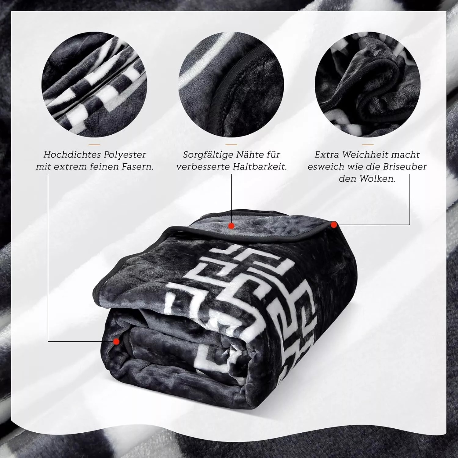 Cuddly blanket 160x220cm Fluffy living blanket Flannel fleece blanket Sofa blanket Soft Black/Gray/Dark Gray/Cream