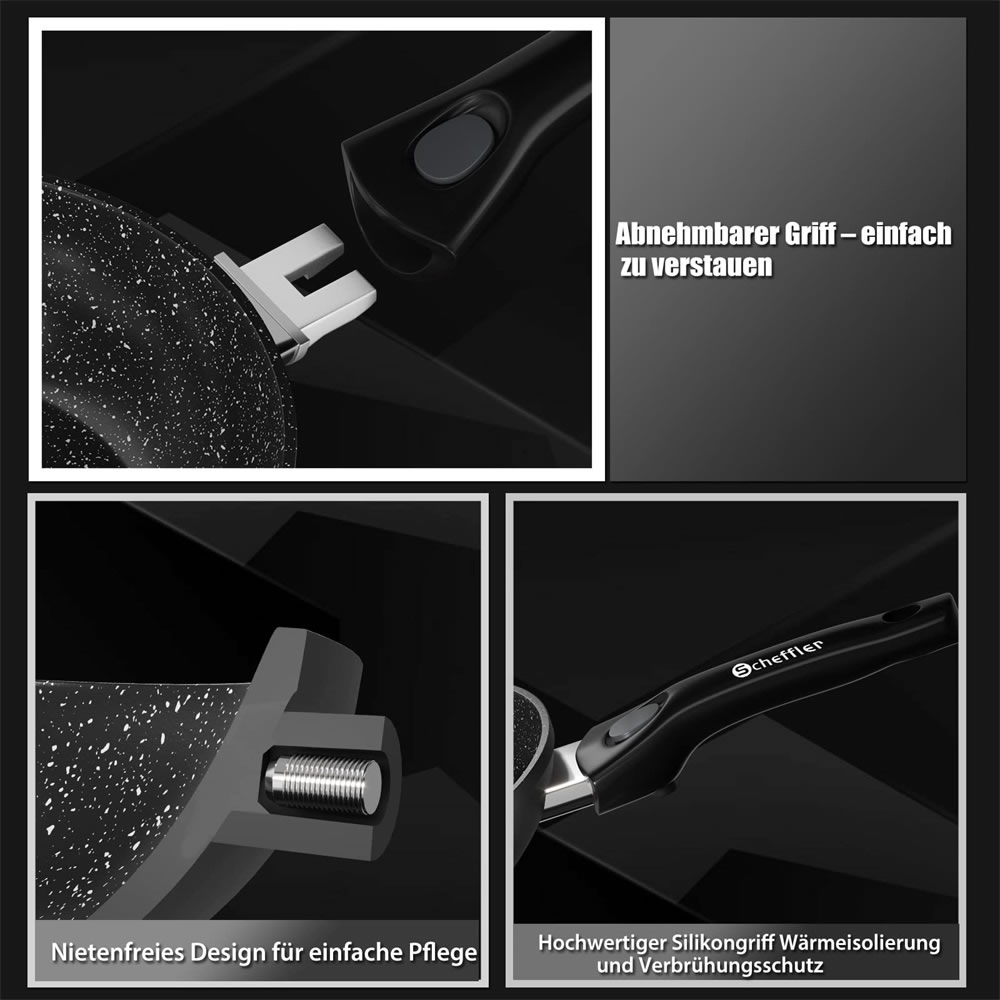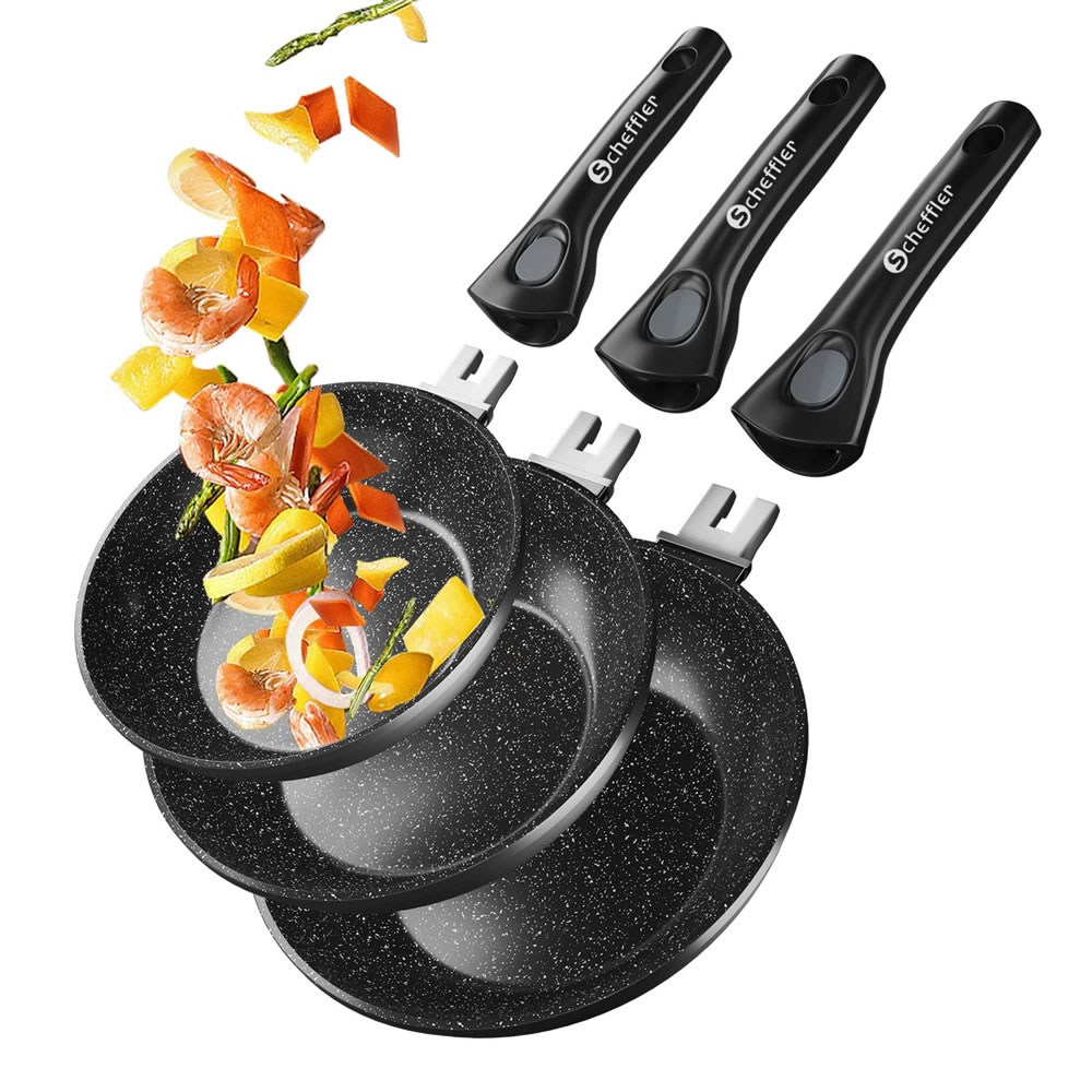 Scheffler HL21PS31 Frying Pan Set 20/24/28 Removable Handle Frying Pan, Induction Pan Set with Non-Stick Coating, Frying Pan for All Cookers