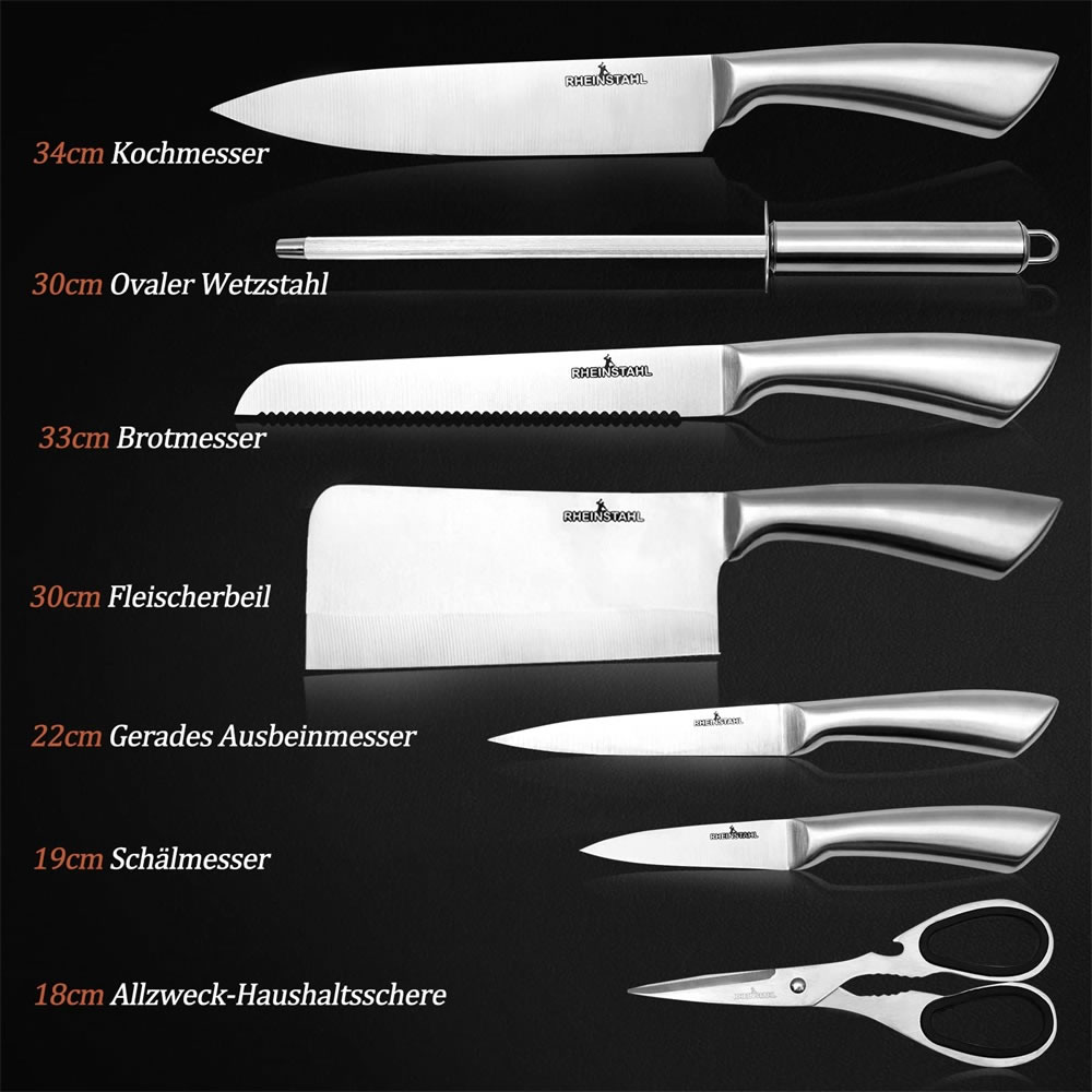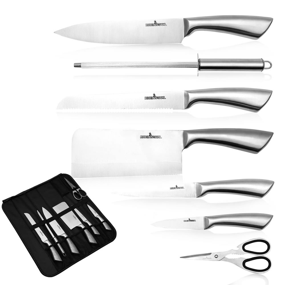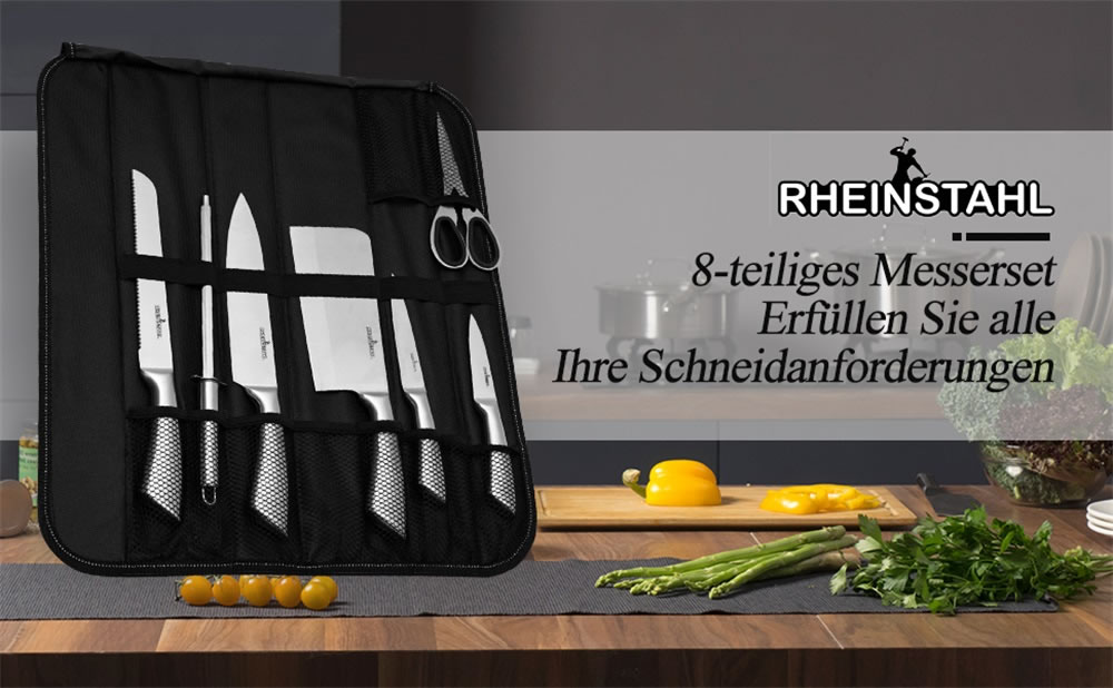 RHEINSTAHL Professional knife set, with 8 pieces, chef's knife with stainless steel, including kitchen scissors, kitchen knife and fruit cutter, bread knife,RS-009S