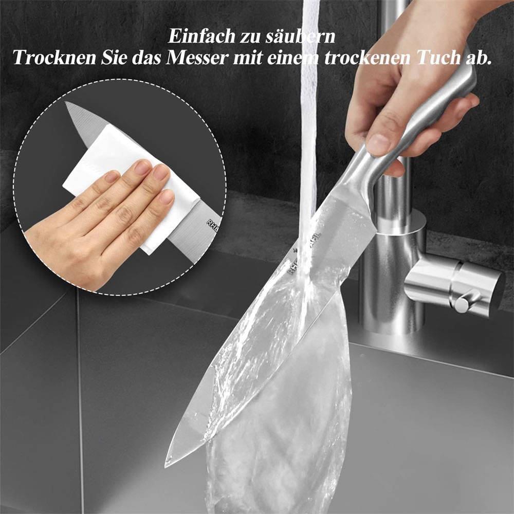 The chef's knife set is not only practical, but also easy to carry, an ideal gift for any gourmet, hobby chef, professional chef, full-time chef and cooking lover. We specialise in providing buyers with high-quality products and best user experience. Please do not hesitate to contact us at any time if you have any questions during use.