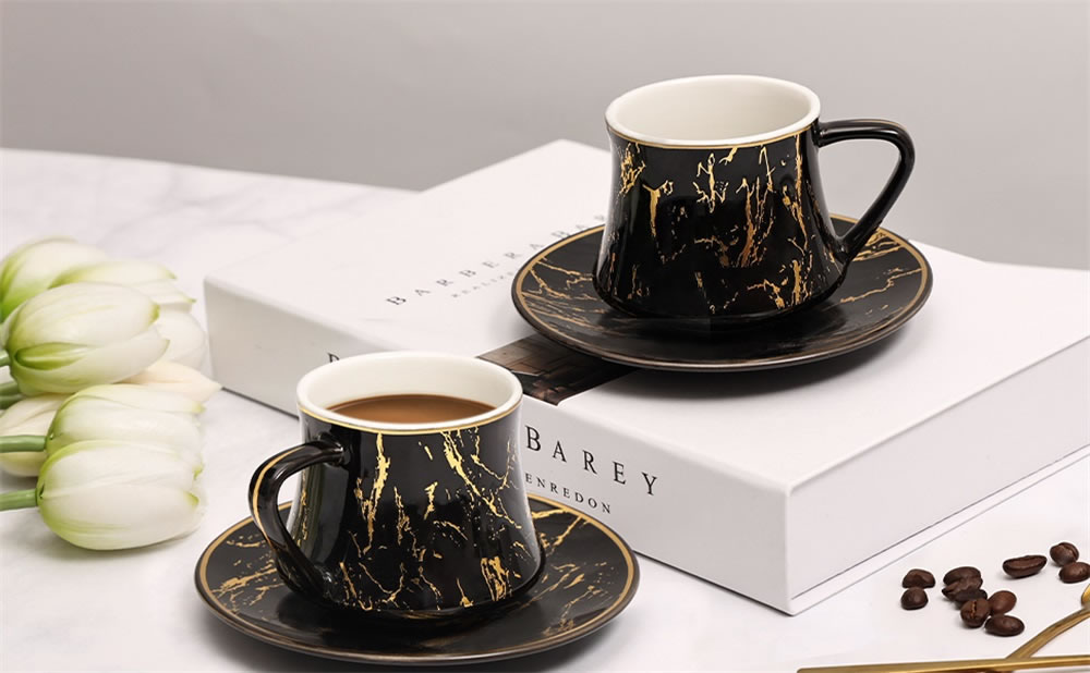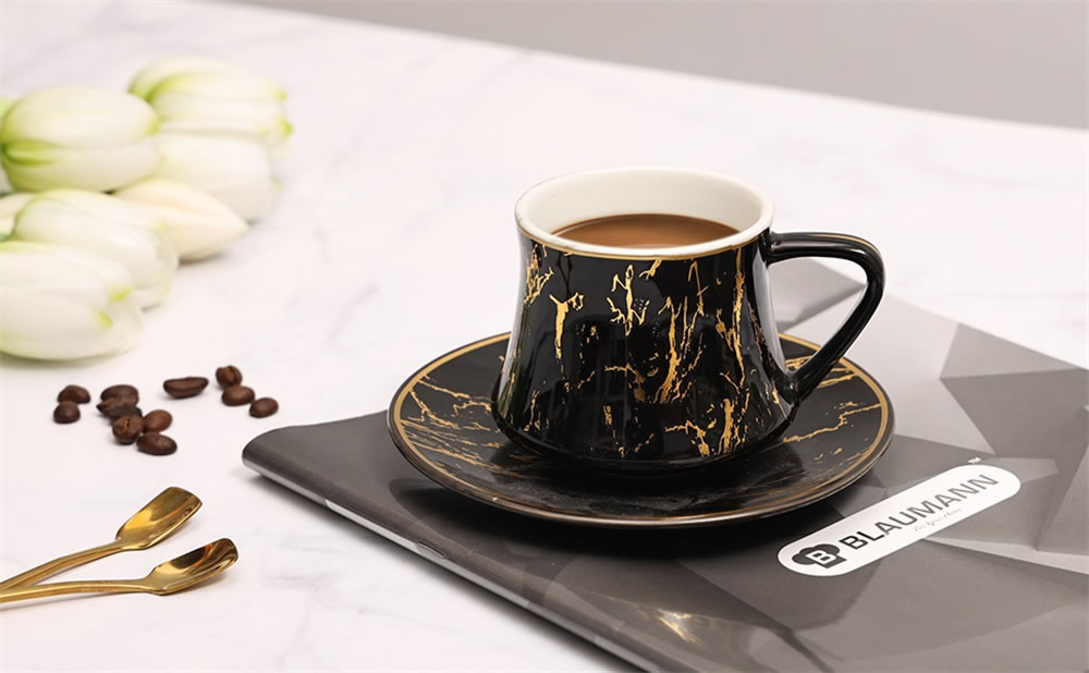 brighten up your day with a strong espresso cup with this attractive marble coffee set. LB porcelain mugs have industry popular traditional contours ideal for different dining environments, from casual to white tablecloth. The elegant mugs are sure to create a culinary experience that your guests will not forget quickly.