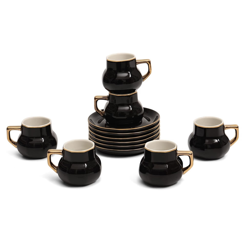 LB Espresso Cups Set with Saucers, Coffee Cups for 6 People, 12-Piece Thick-Walled Cups, 100 ml, Black