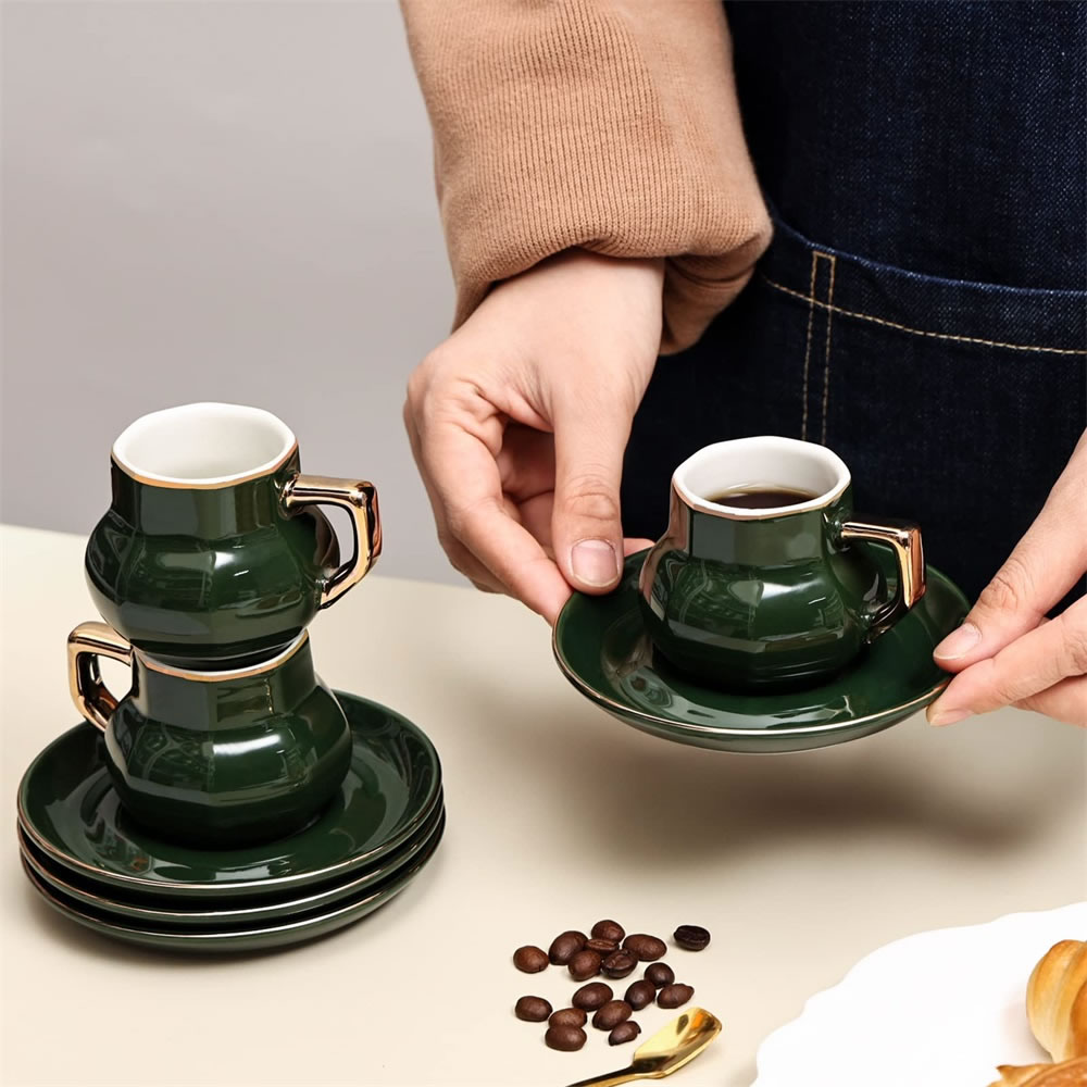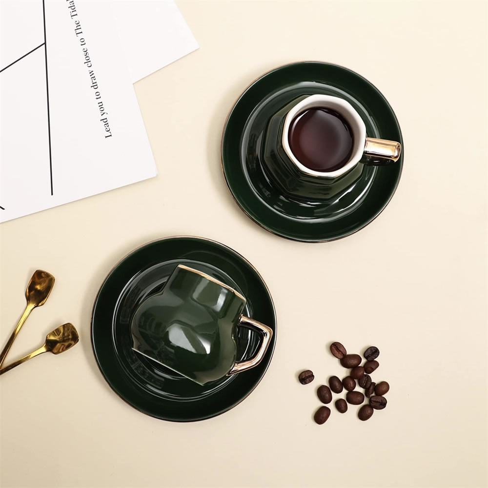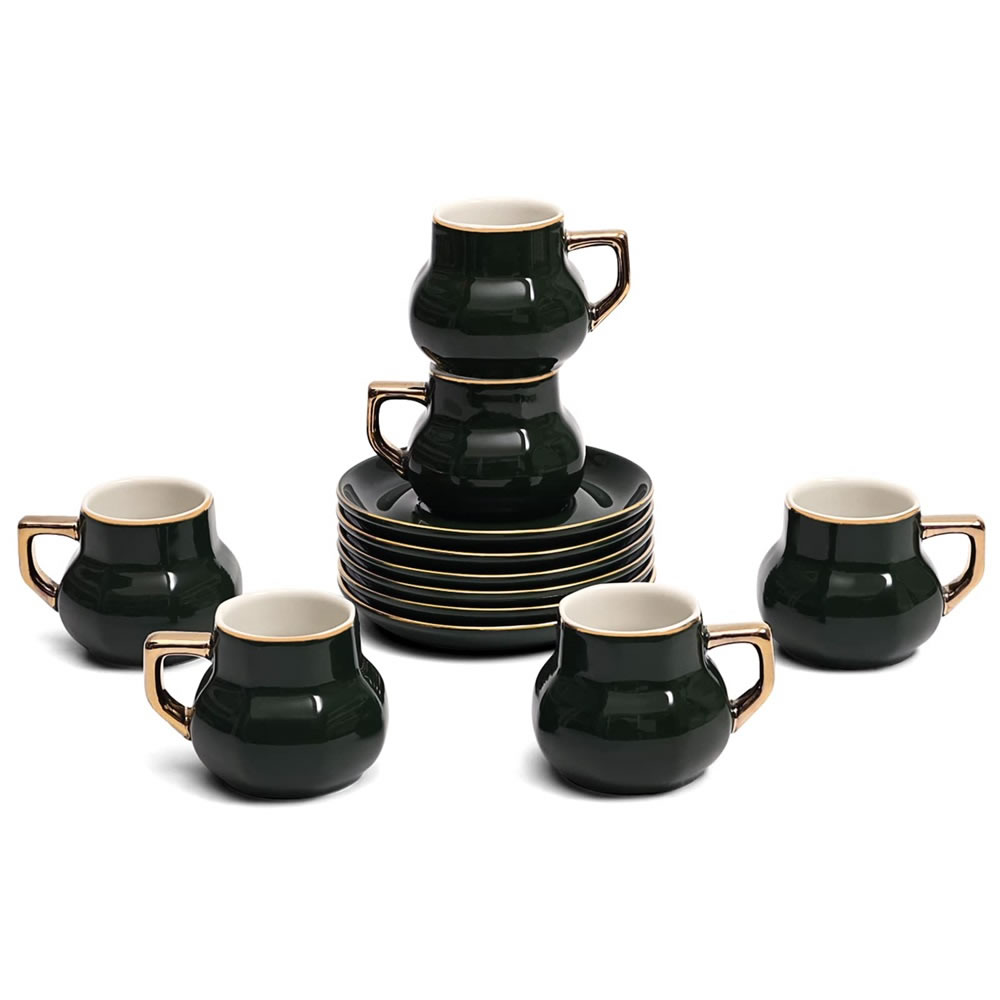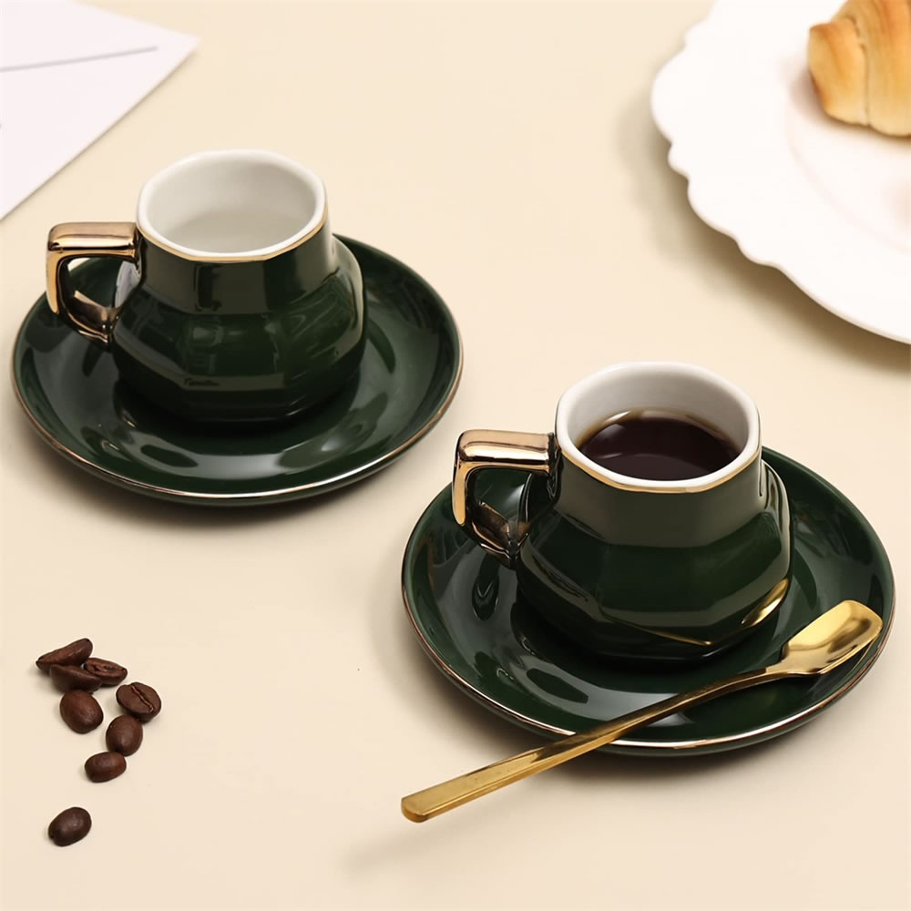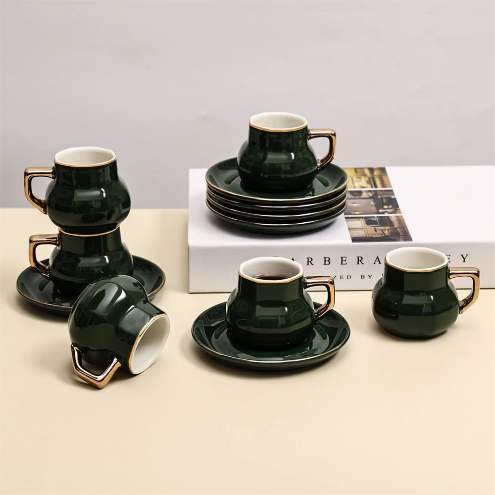 LB Espresso Cups Set with Saucers, Coffee Cups for 6 People, 12-Piece Thick-Walled Cups, Green