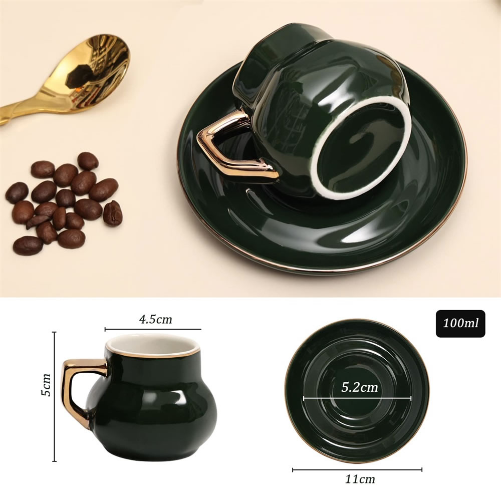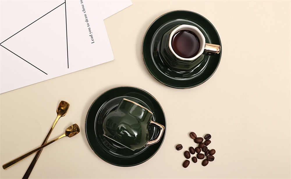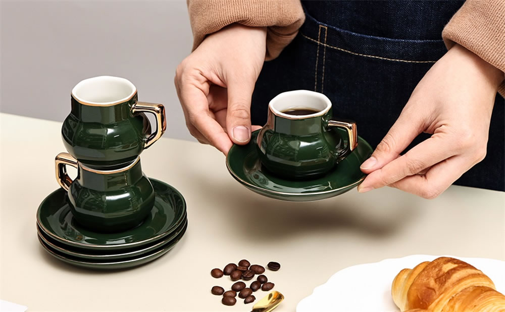 The coffee cup and saucer set is beautiful and generous, and it looks very textured. The espresso cups and saucers are made from strong and durable materials made from professional lead-free ceramic. The glaze is free from harmful substances such as lead and cadmium. Safe in microwave and freezer as well as dishwasher safe.