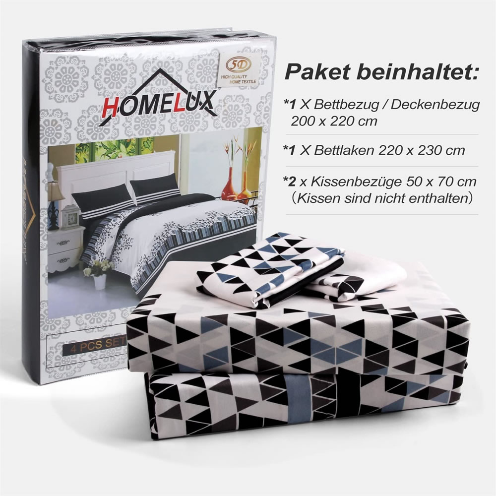 Homelux 4-Piece Duvet Cover, Bedding and Bed Linen, Bed Linen, 200 x 230, Duvet Cover 200 x 200 cm with Zip, 2 Pillowcases 50 x 70 cm, Bed Linen Set