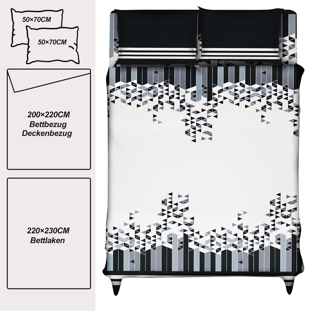 Homelux bedding set (1 x 200 x 220 cm duvet cover & 1 x 220 x 230 cm flat sheet & 2 x 50 x 70 cm pillowcases). Due to the light when shooting and the different brightness of the display, there may be a small colour difference when you receive the 4-piece set.Please do not hesitate to us. contact if you have any questions. to use or have quality problems.