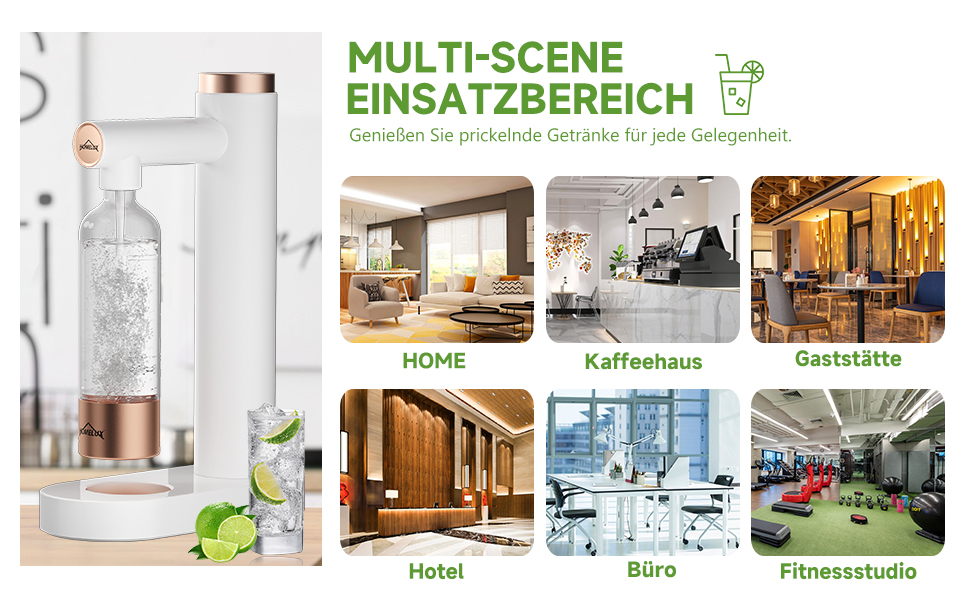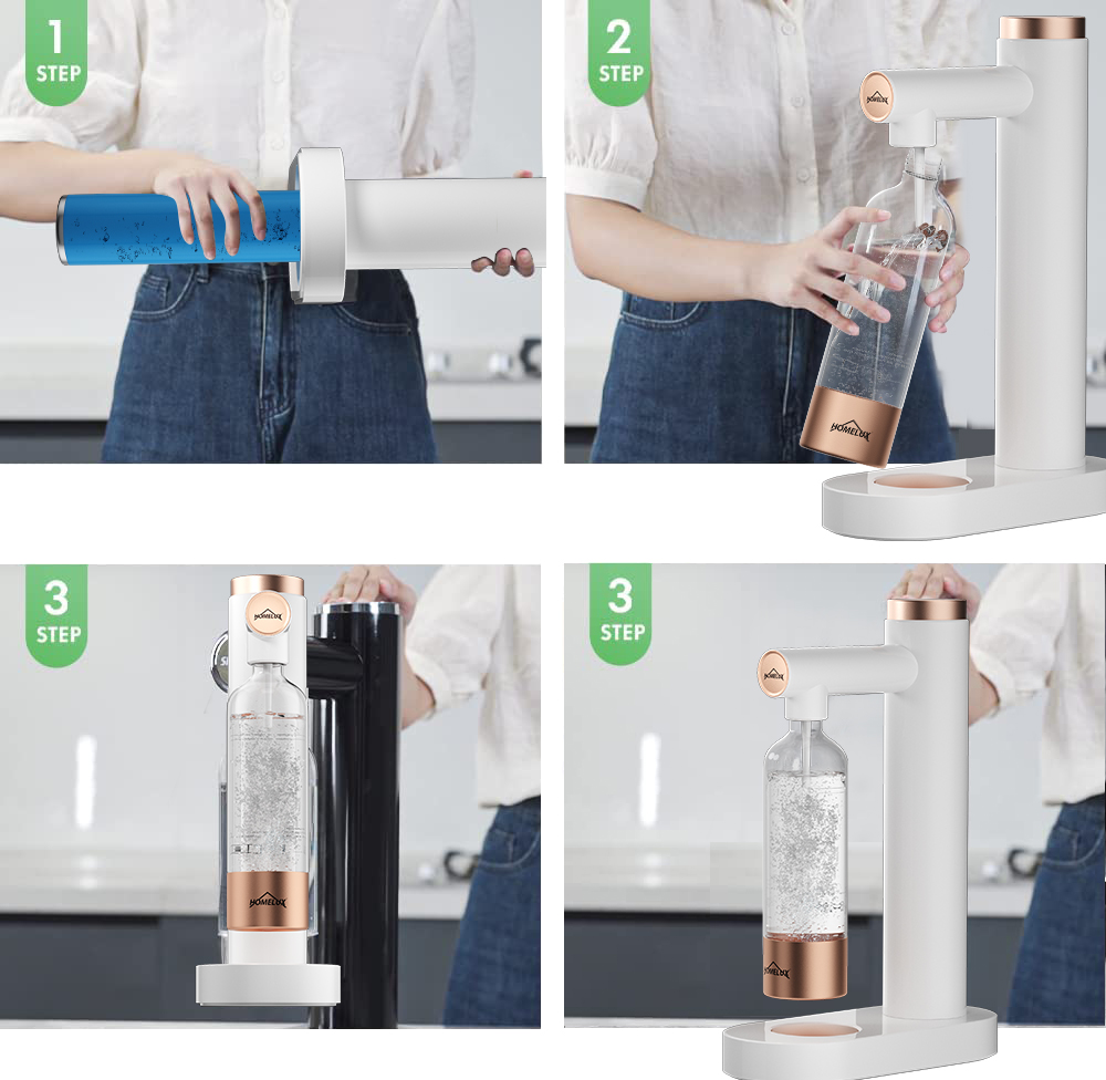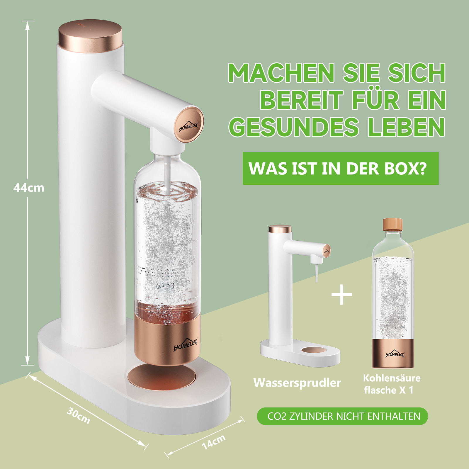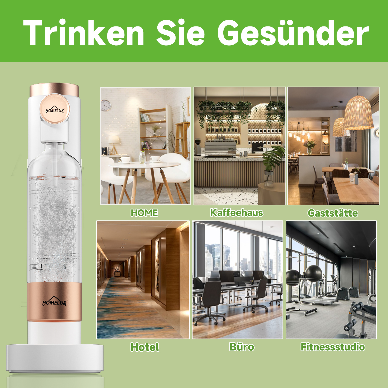 Mit der HOMELUX wasserspender mit kohlensäure müssen Sie nur drei Schritte füllen, drehen und drücken, um Ihr klares Wasser in Sekundenschnelle in köstliches Sprudelwasser zu verwandeln. Wiederholen Sie den Vorgang 2-3 Mal, um den Kohlensäuregehalt Ihrer Wahl anzupassen. Für die besten Blasen empfehlen wir dringend die Verwendung von kaltem Wasser.