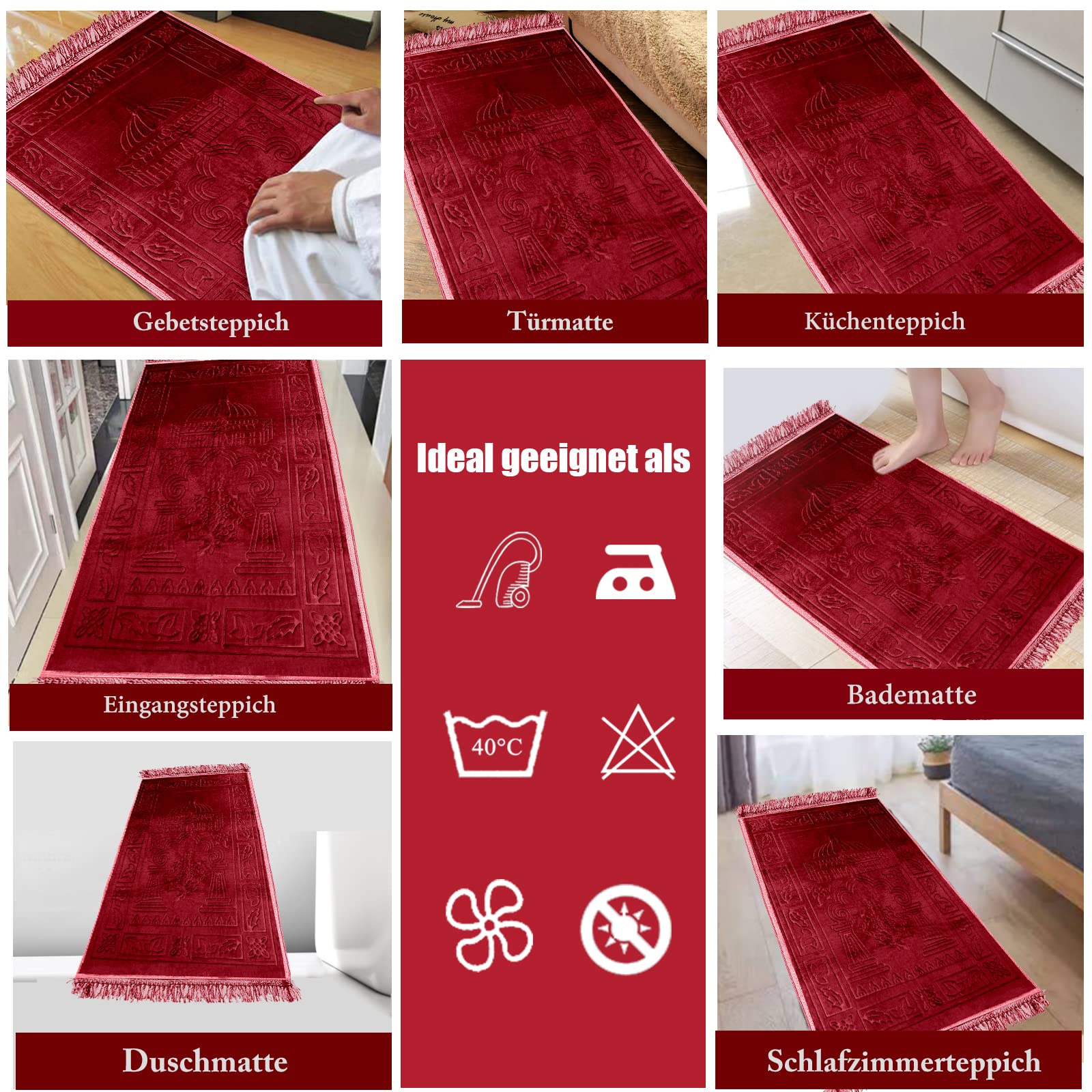 HOMELUX Gebetsteppich, Teppiche, Gebetsteppich Islam,80x120cm Prayer Mat, Teppich orientalisch, türkische Teppiche, orientalischer Teppich,Islamic Prayer mat Rug(PrayMat-C-Red)