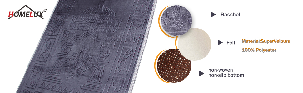 Aus hochwertigem Stoff, superweicher und bequemer Plüsch samt. 100 % Polypropylen (eines der langlebigsten Materialien) sorgt für jahrelange Haltbarkeit. HOMELUX Gebetsteppich ist dicker und weicher als herkömmliche Gebetsteppiche. Beten Sie auf Holzböden mit weniger Belastung für Ihre Gelenke.