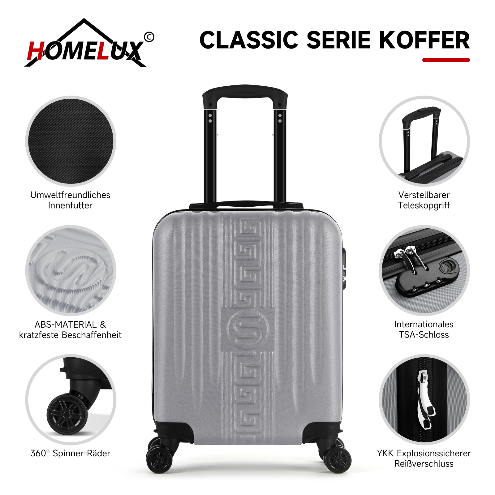 HOMELUX Hartschalen-Trolley Handgepäck Koffer Trolley Hartschalen Rollkoffer, 4 Rollen, Silber, Reisekoffer, M,SCH019-18SV