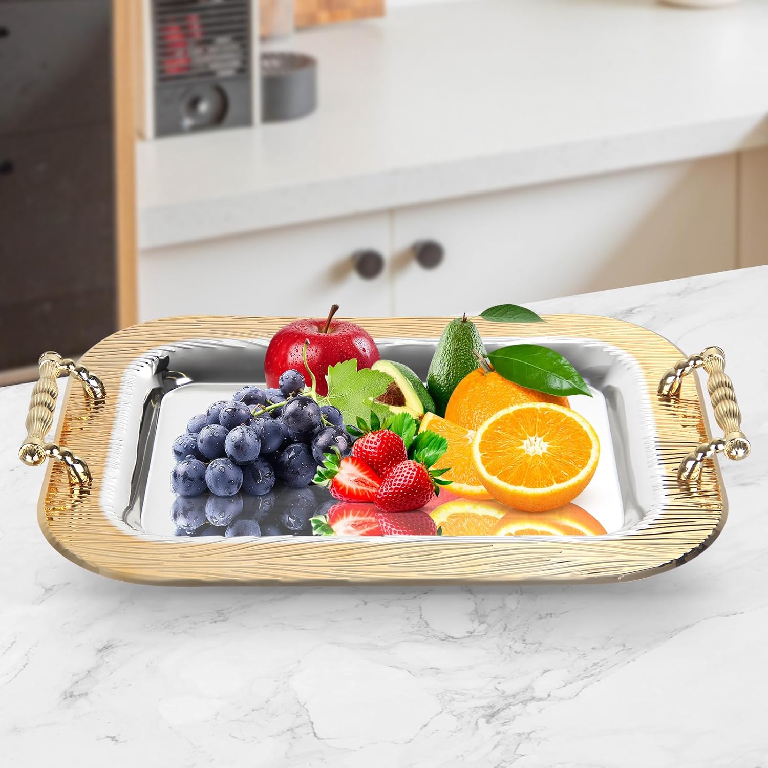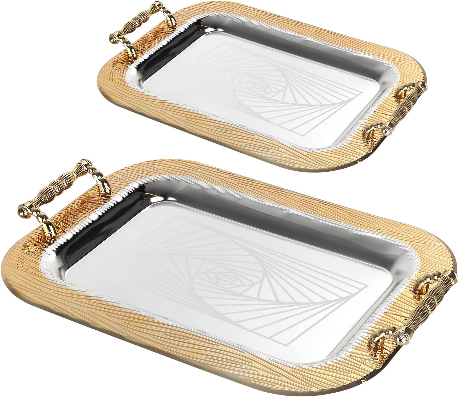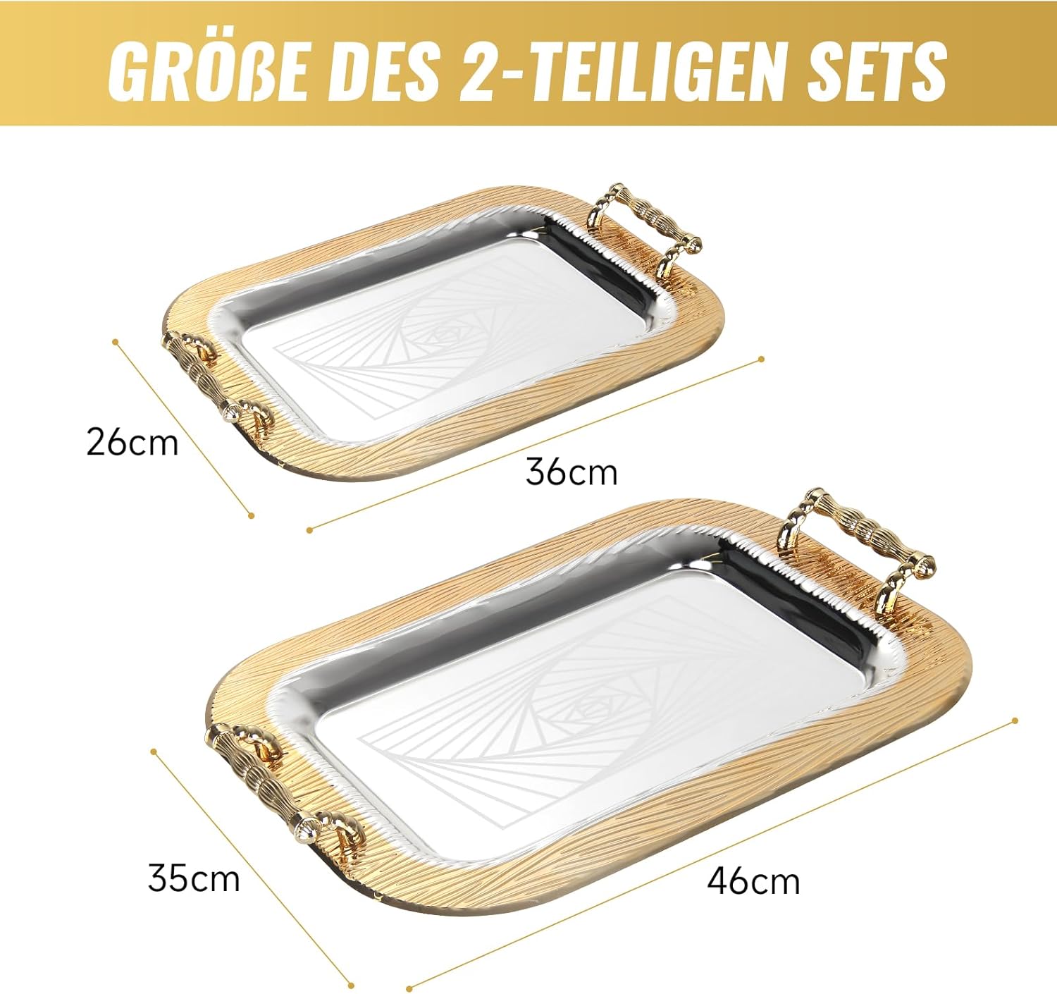 Tablett Homelux Servierplatte Set 2 Stück Deko Tablett mit Grif, Praktisches Tablett für Küche, Wohnzimmer, Bad, Bankett(HL-TS2318M)