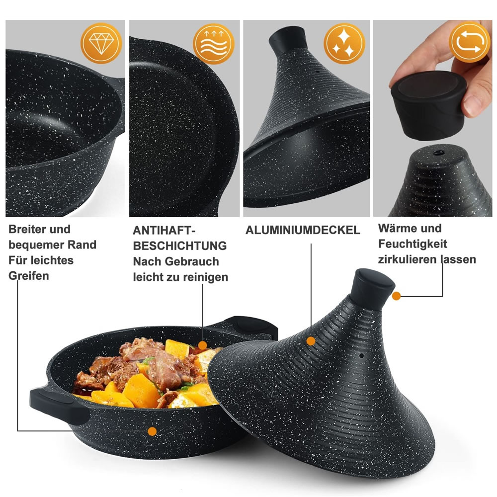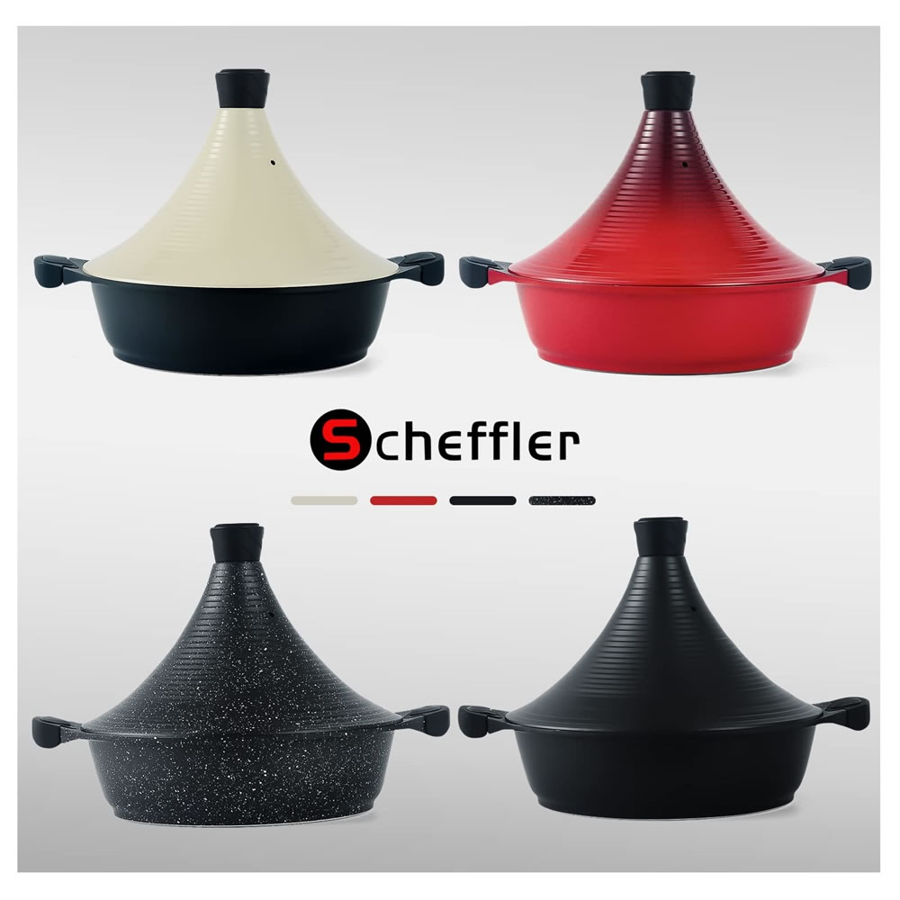 Scheffler Tajine Topf - Marokkanische Tagine 28cm/32cm Antihaftbeschichtung aus Aluminium mit kegelförmigem