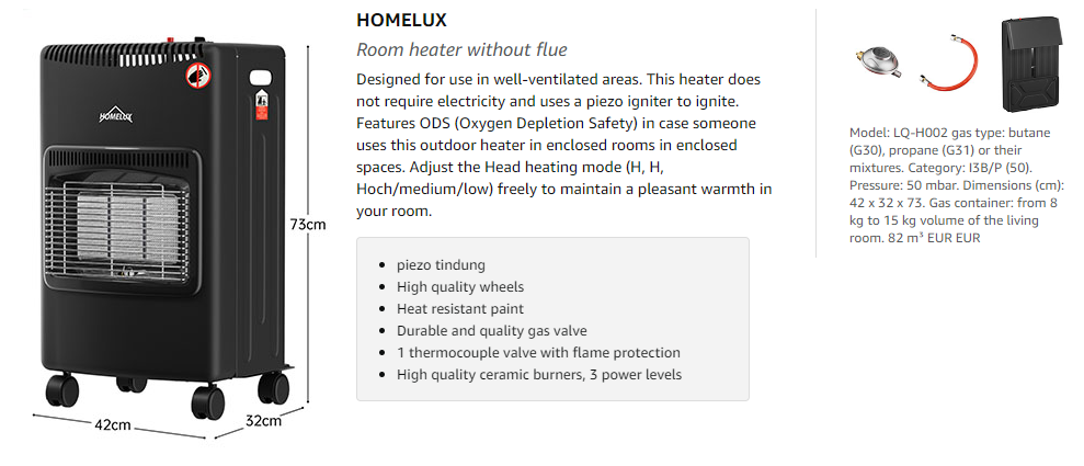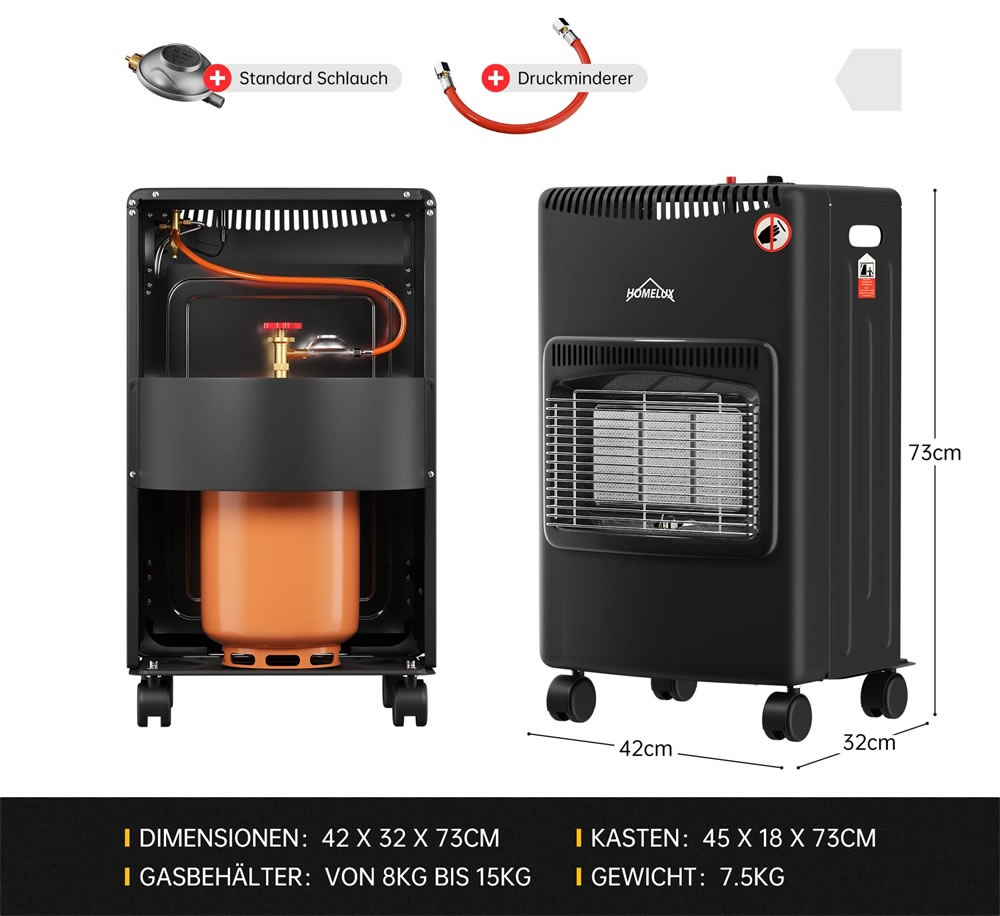 Gasheizung für Innenräume,HOMELUX Gasheizung 4200 Watt gasofen für innenräume inkl. Schlauch und Druckminderer,Infrarot Keramikbrenner,Heizstrahler,Butan- oder Propangasflaschen bis 15kg,LQ-H002