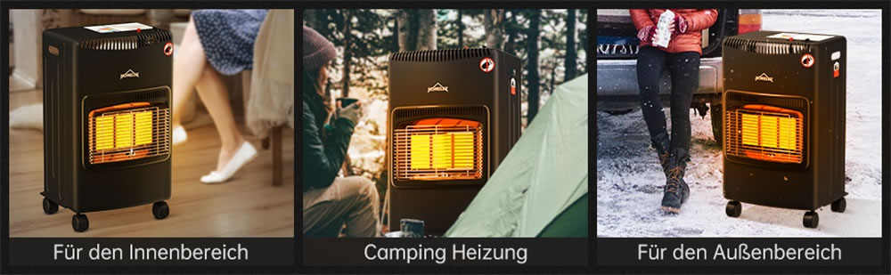 Kippschalter zum Umschalten zwischen den 3 Modi für eine einfache Bedienung. 3 Betriebsmodi - hohe Wärme (4200 W Gasverbrauch:306G/H), niedrige Wärme (2800 W Gasverbrauch:200G/H) und natürliche Umluft (1500 W Gasverbrauch:110G/H). 4200 W für schnelles Aufheizen und Heizen für Räume bis zu 82 m³. Die Keramikheizung sorgt dafür, dass die Luft warm ist und nicht austrocknet.Die Heizung sorgt für einen konstanten Warmluftstrom und ist während des Betriebs so leise. Lang anhaltende Wärme und Komfort im Winter.