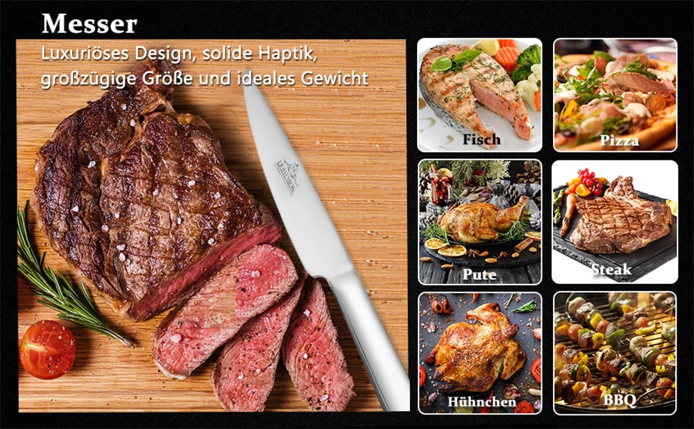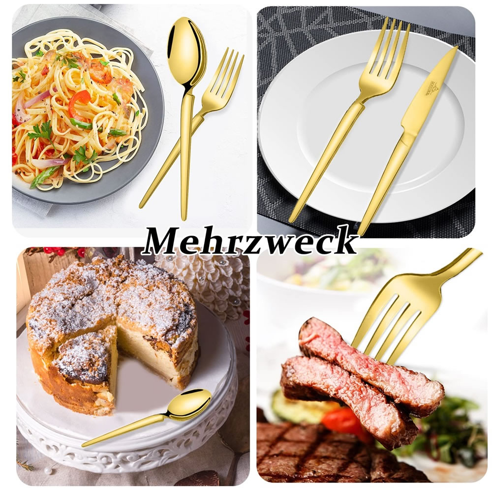 Steakmesser-Set angebracht, gezackte Kanten sind scharf genug, um sauber durch das gesamte Fleisch zu schneiden. Die Wahl eines guten Bestecksatzes ist nicht nur für den täglichen Gebrauch, sondern auch für bevorstehende Urlaubspartys, Versammlungen, Hochzeiten, Camping und Unterhaltung geeignet. oder für Buffets und Bankette in Restaurants oder Hotels. Es ist auch eine wunderbare Wahl als Geschenk.