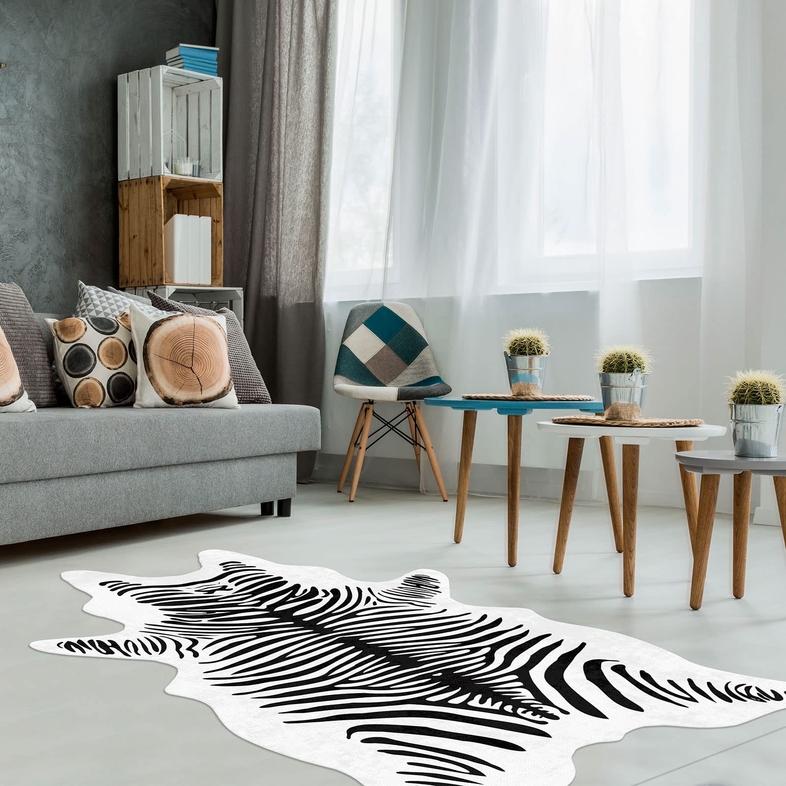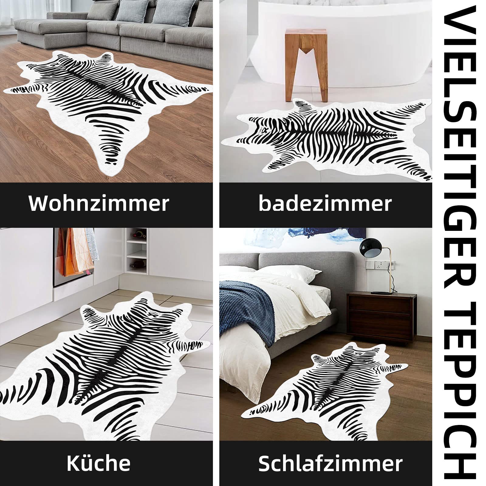 Homelux Teppich, Zebramuster,Waschbar rutschfest Soft Teppiche für Wohnzimmer, Esszimmer, Badezimmer,Schlafzimmer Deko