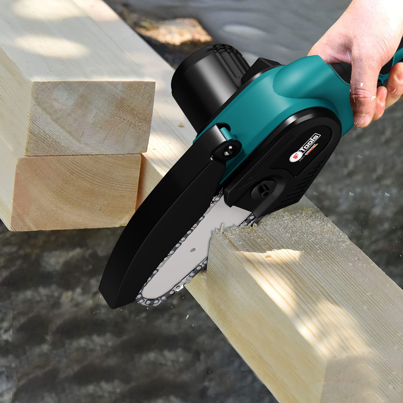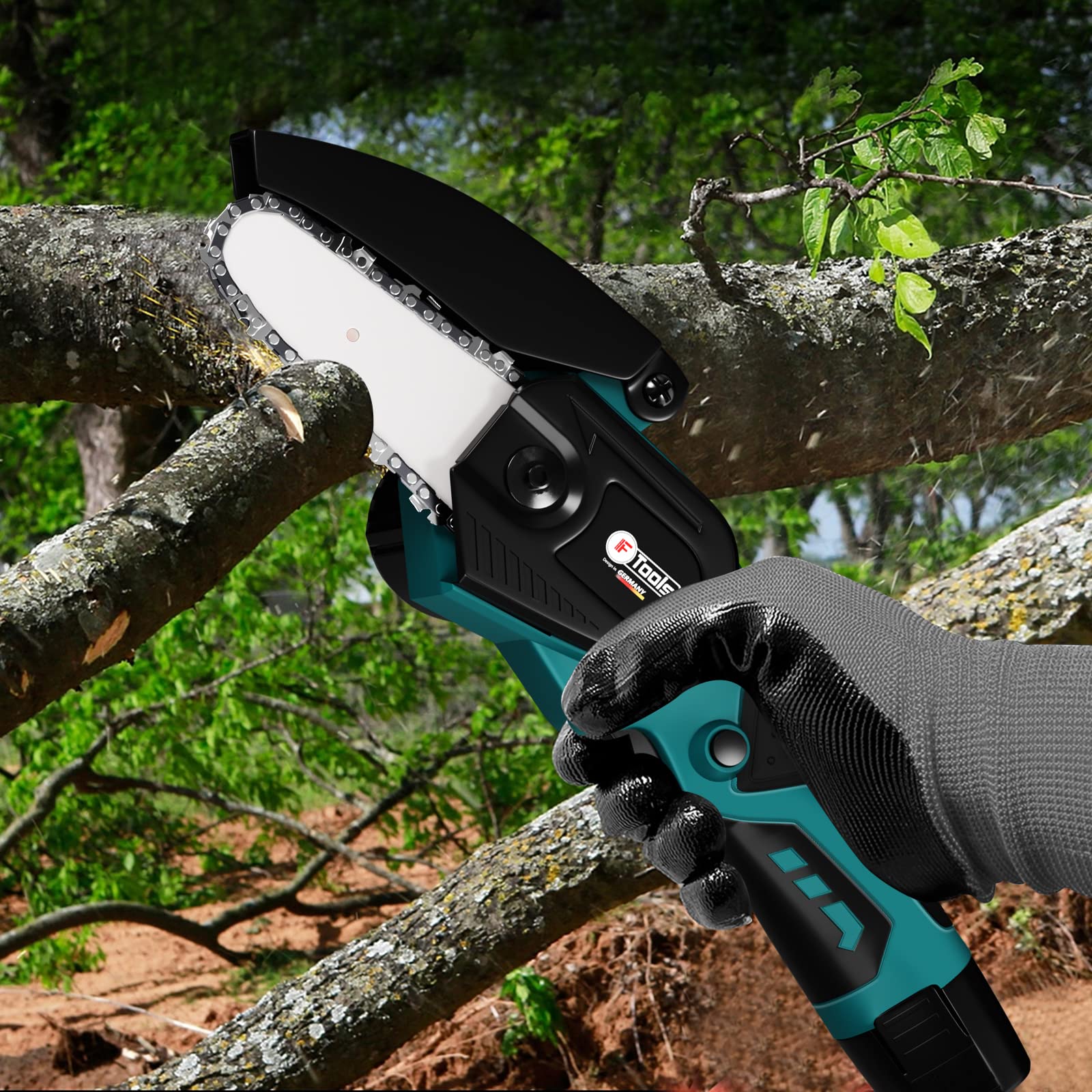 Diese 4-Zoll-Mini-Kettensäge ist ungefähr 34 cm groß und ergonomisch gestaltet für eine einfache Steuerung und einen bequemen Griff. Es ist für Frauen und ältere Menschen einfach zu verwenden und fühlt sich nach längerer Verwendung nicht müde an.