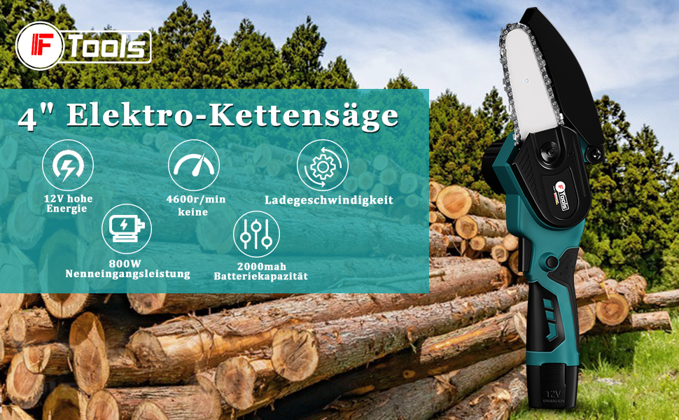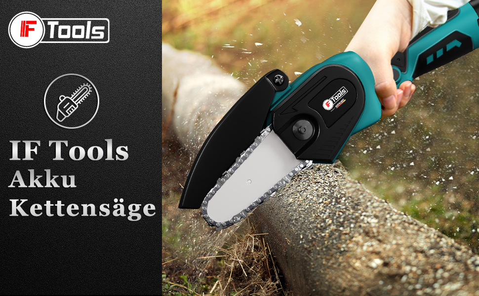 Mini Kettensäge mit Akku, IF TOOLS Akku Kettensäge, 4-Zoll Tragbar Kettensäge Elektrisch Mit Zwei Stück Akku & Schnell Ladegerät, Akku Handkettensäge für Bäume, Astwälde, BS8020