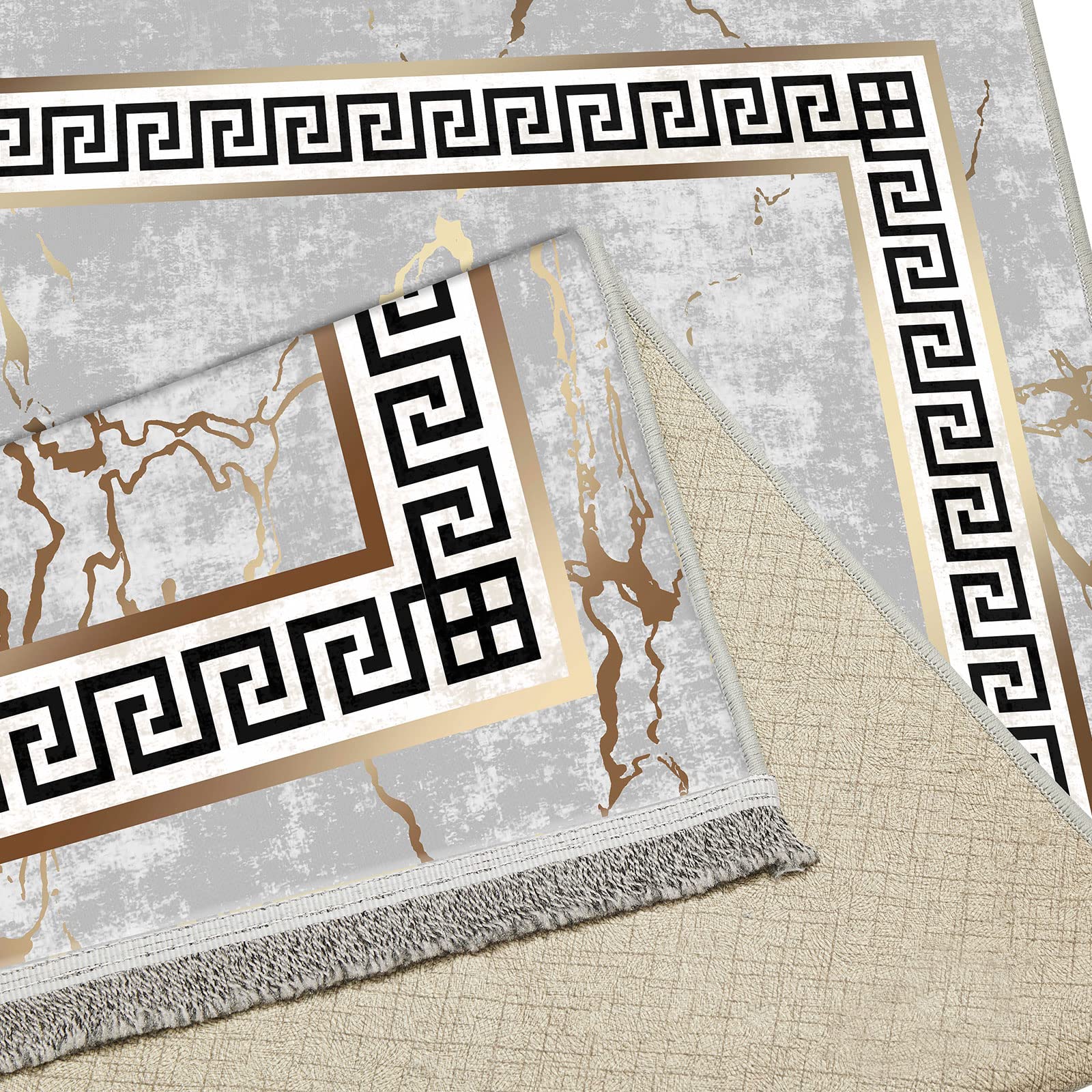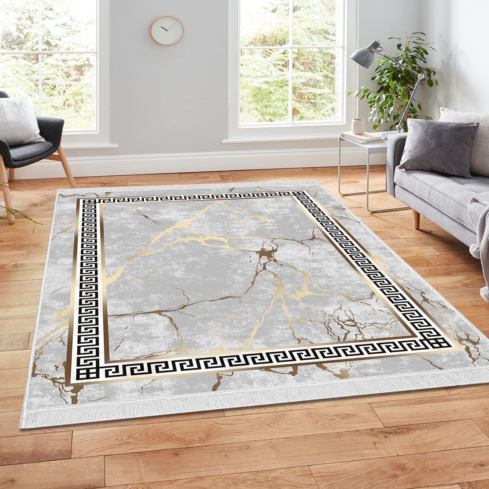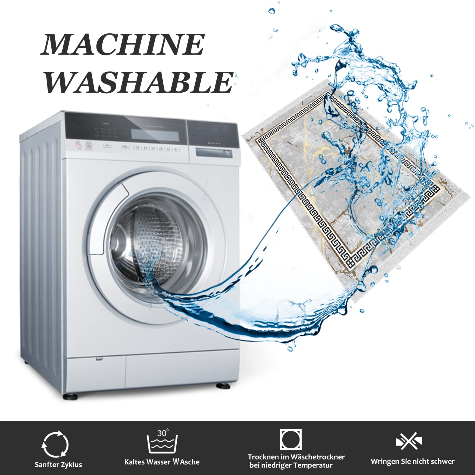 Homelux Teppiche Carpet Wohnzimmer Modern Teppiche, Waschbar Teppich Schlafzimmer Teppich Grau Teppich Beige, rutschfest und Waschbar, Marmor Muster Bordüre Antik