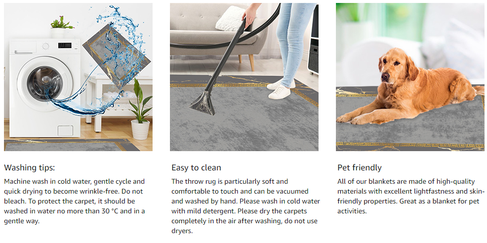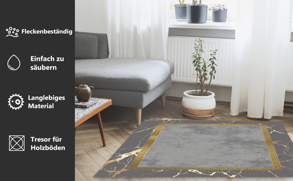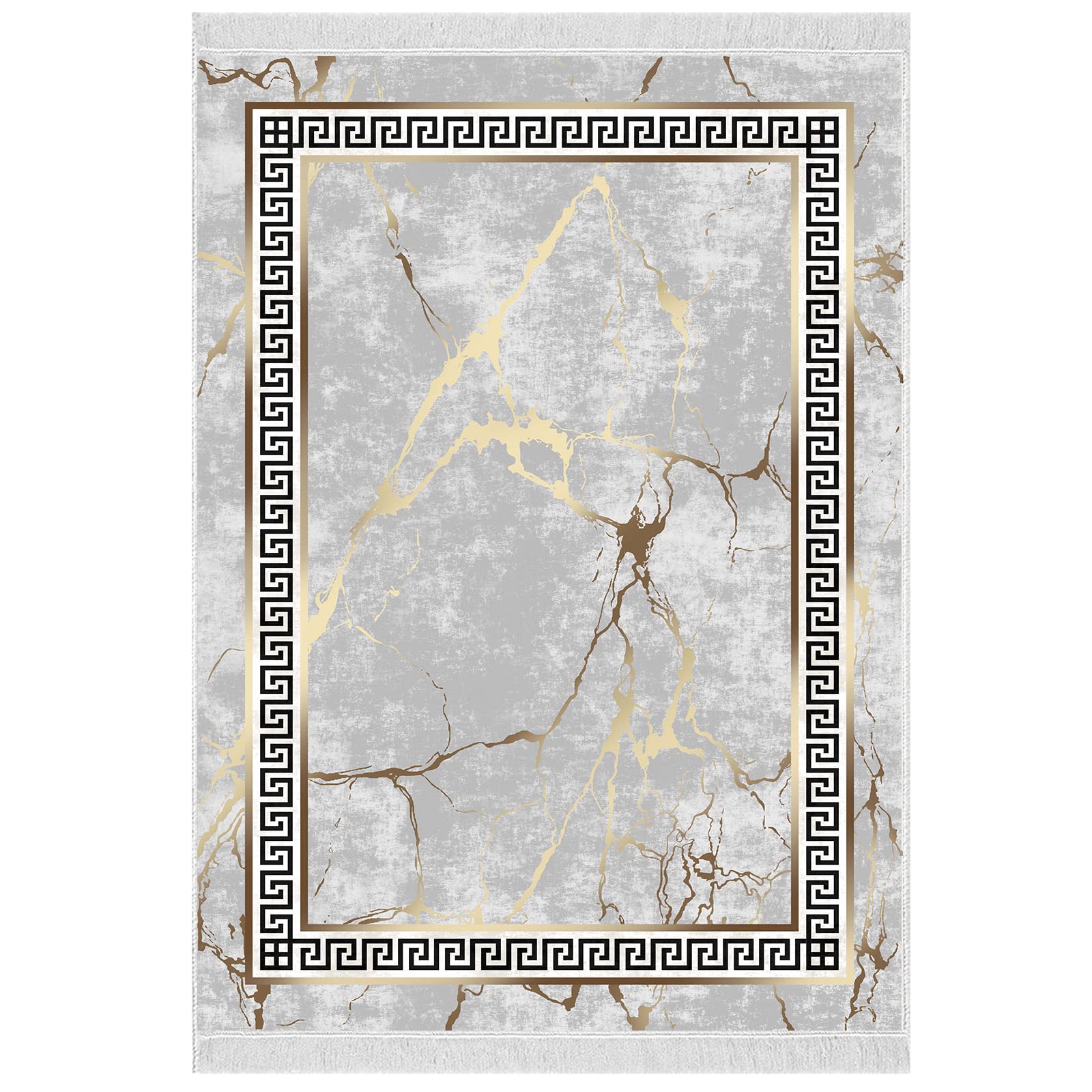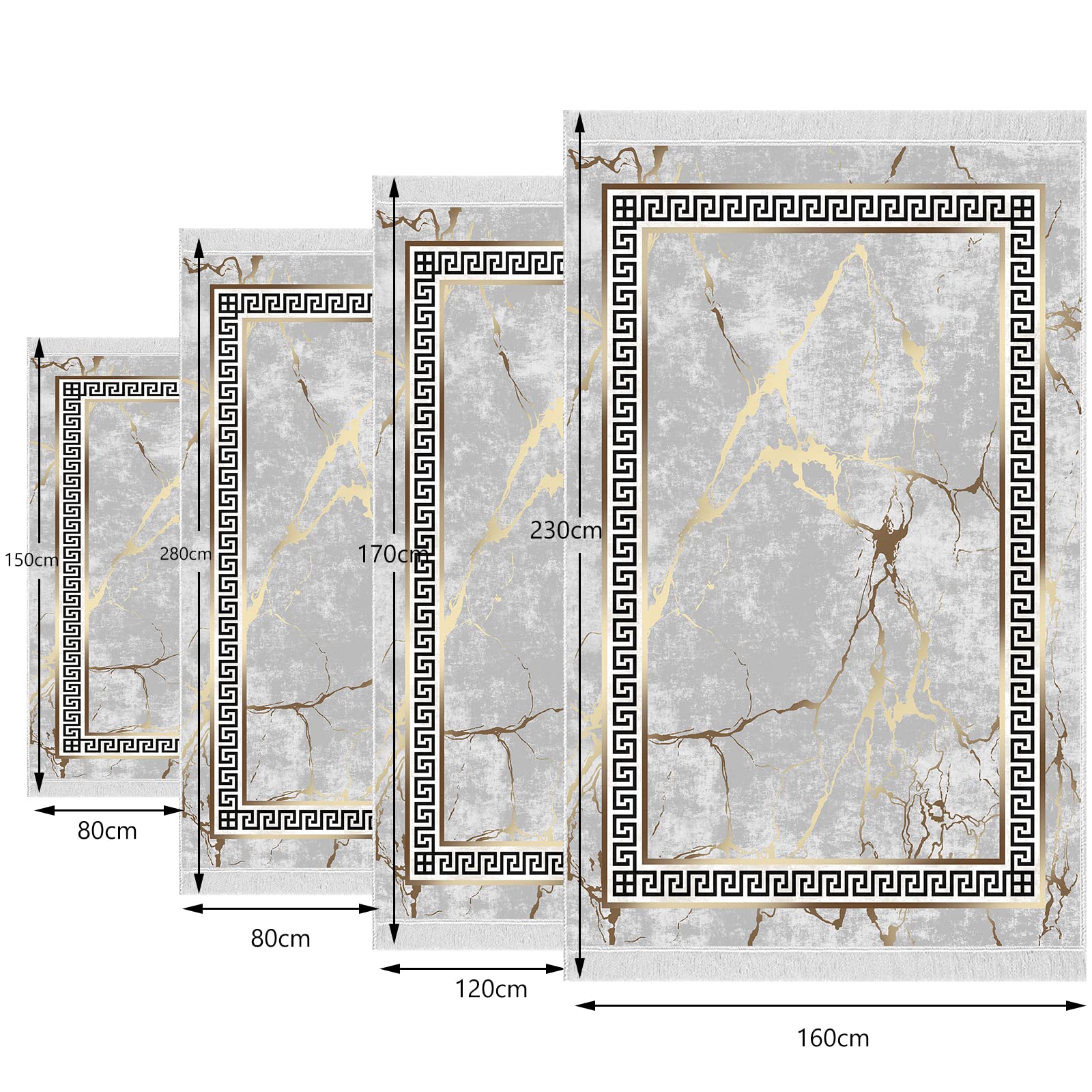 Homelux Teppiche Carpet Wohnzimmer Modern Teppiche, Waschbar Teppich Schlafzimmer Teppich Grau Teppich Beige, rutschfest und Waschbar, Marmor Muster Bordüre Antik