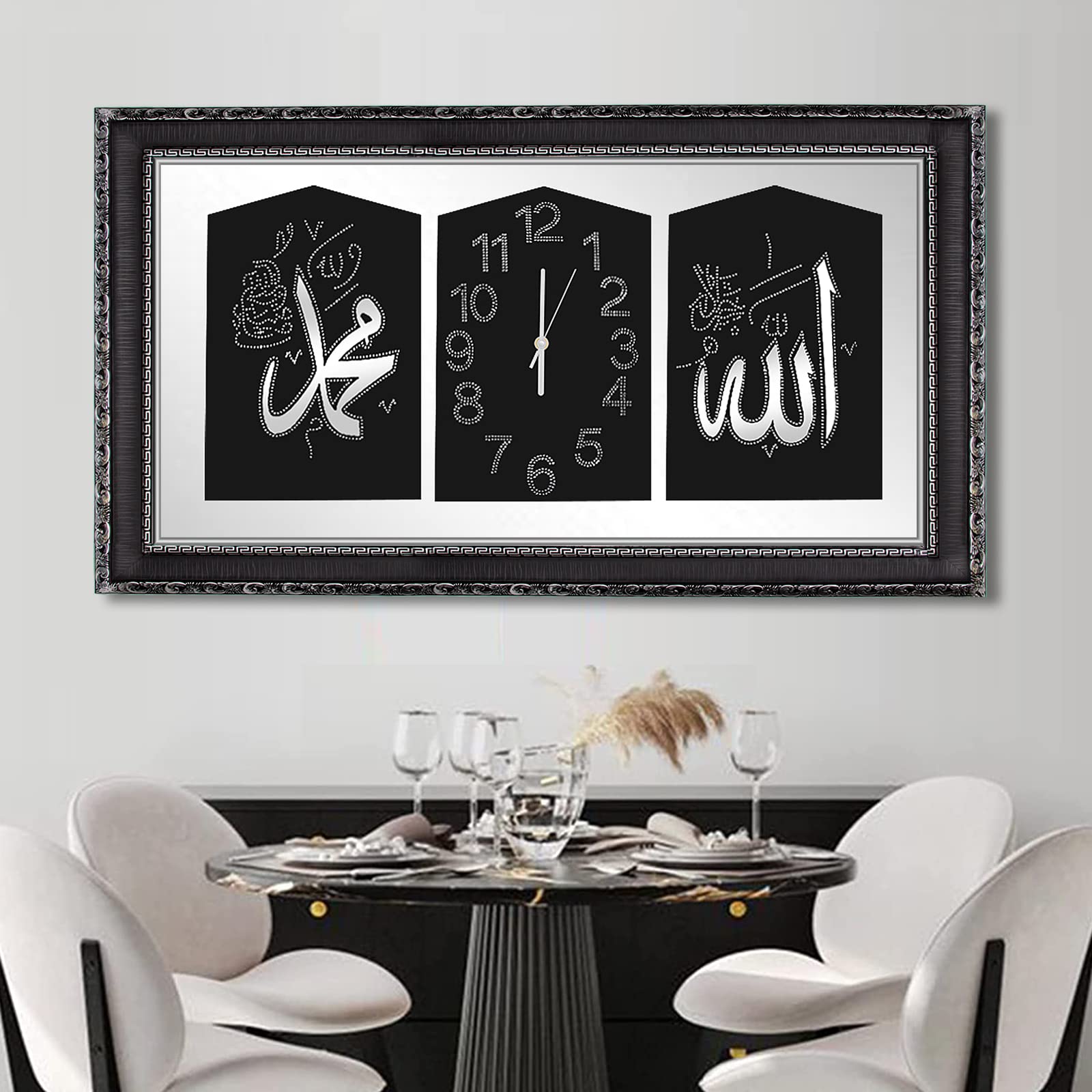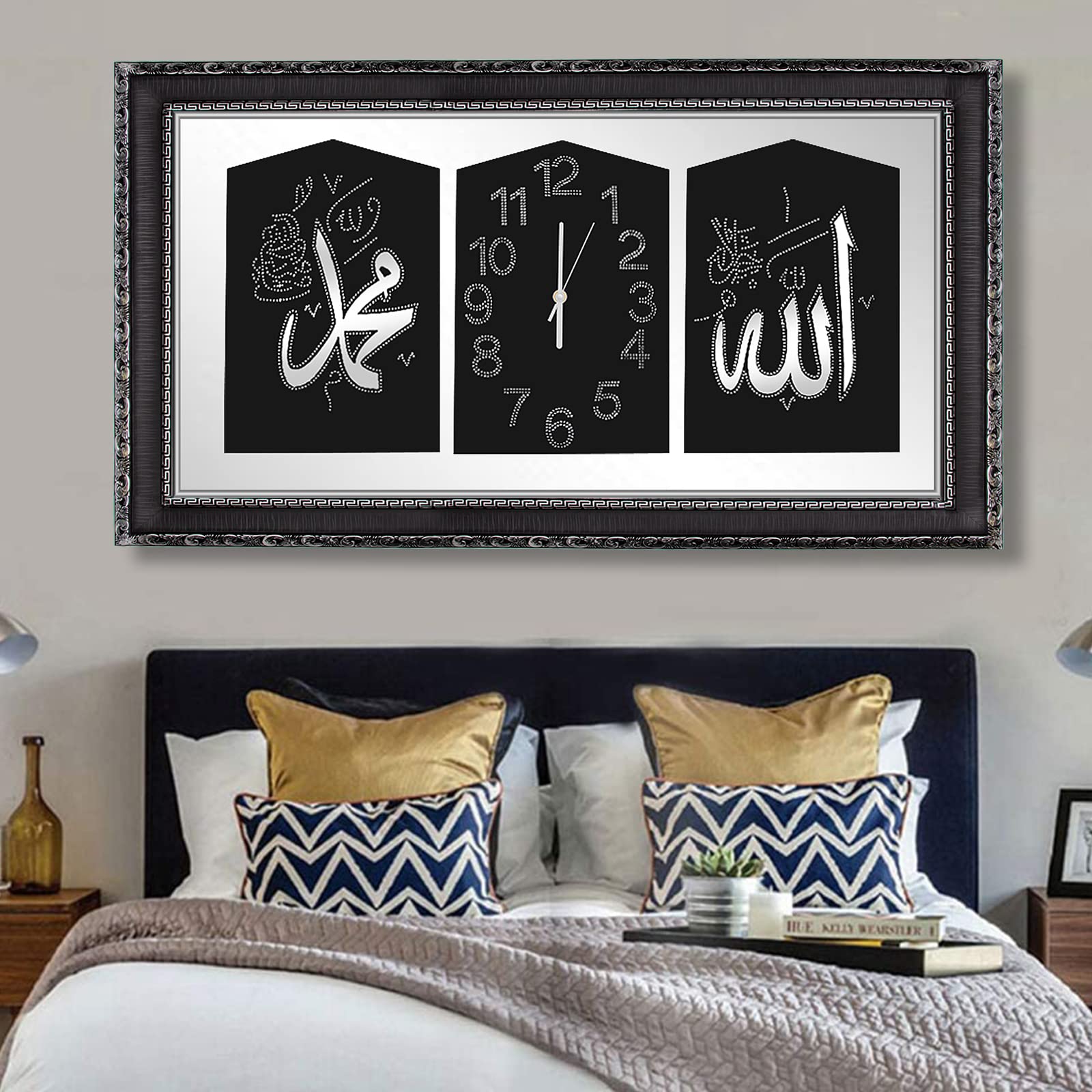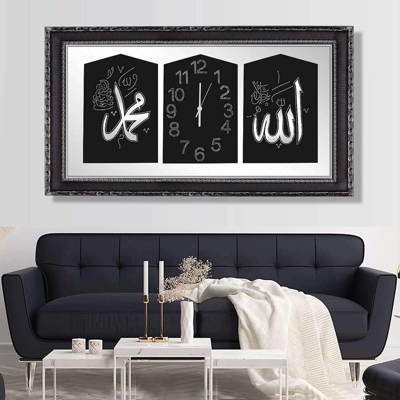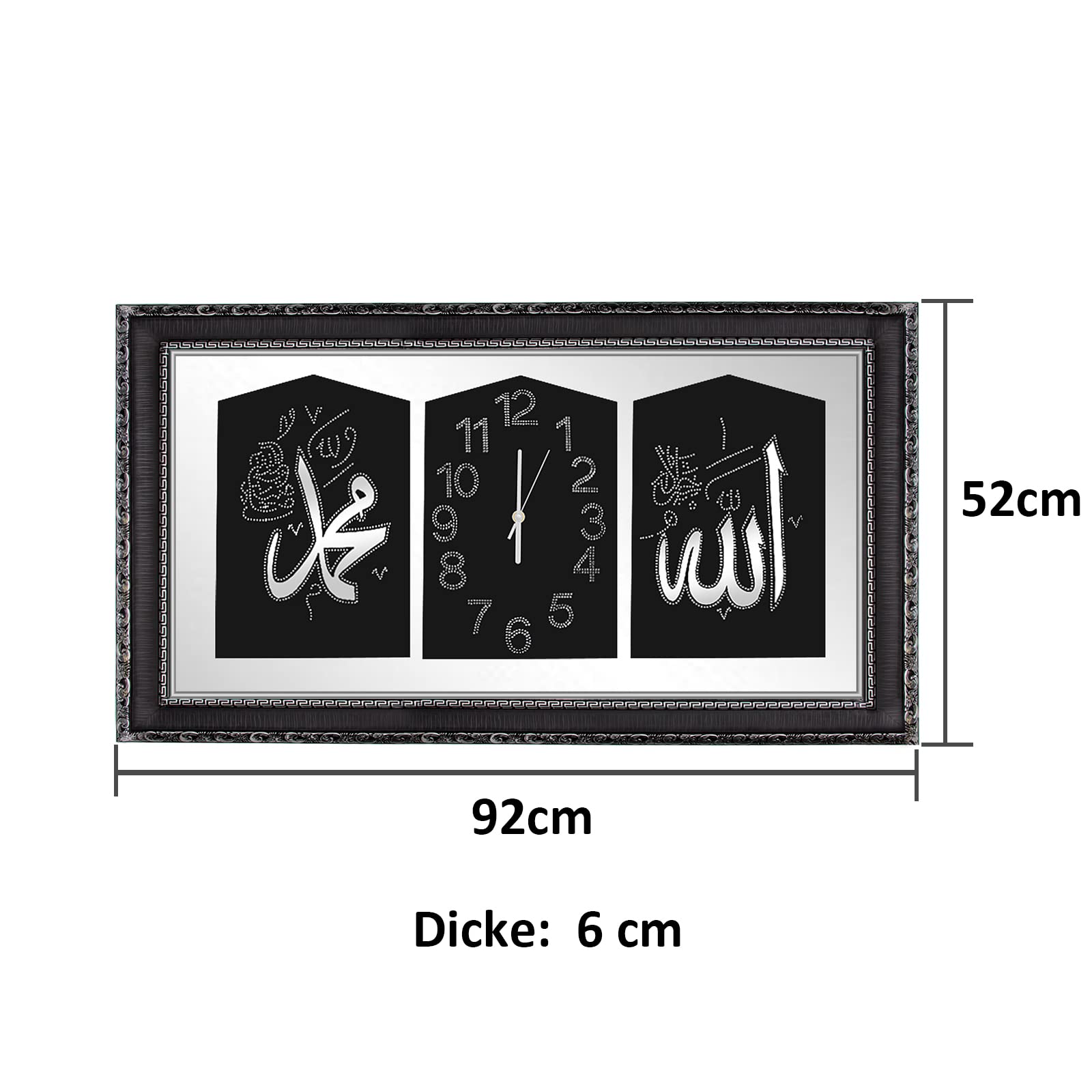 HOMELUX 2 in 1 Ramadan Islam Wand Deko, Islamische Bilder und Islamische Uhr mit Rahmen, Arabische Kalligraphie Wanduhr, Islamische Ramadan Dekoration Wohnzimmer, 52x92cm